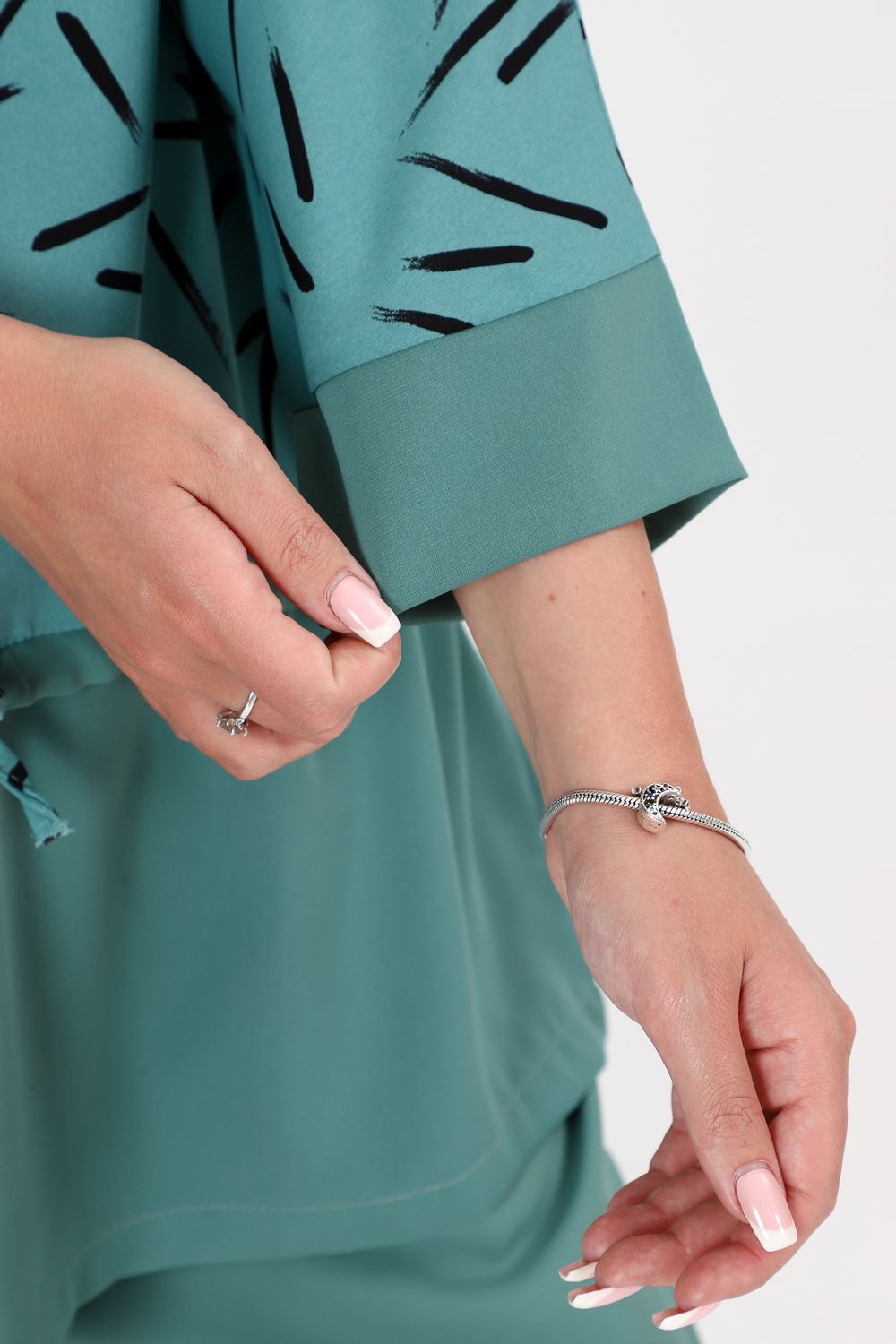 Костюм — незаменимая вещь в современном женском гардеробе. Туника с брюками – это классическое сочетание вещей, не вызывающее сомнений и одинаково приемлемое в самом разном возрасте. Представляем вам костюм двойку: брюки+туника из мягкого, легкого материала прадо. Комбинация двух цветов прекрасно сочетаются между собой.