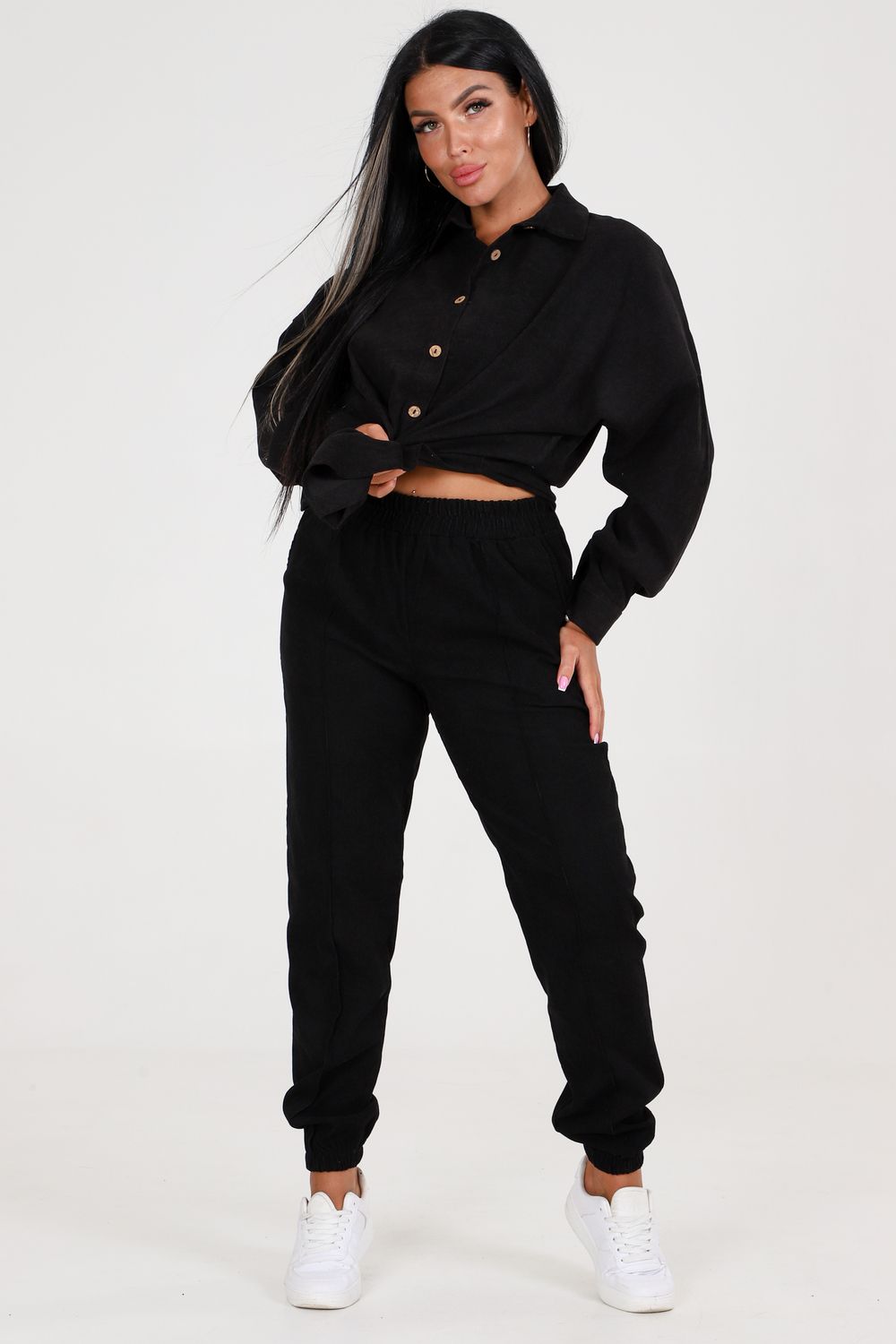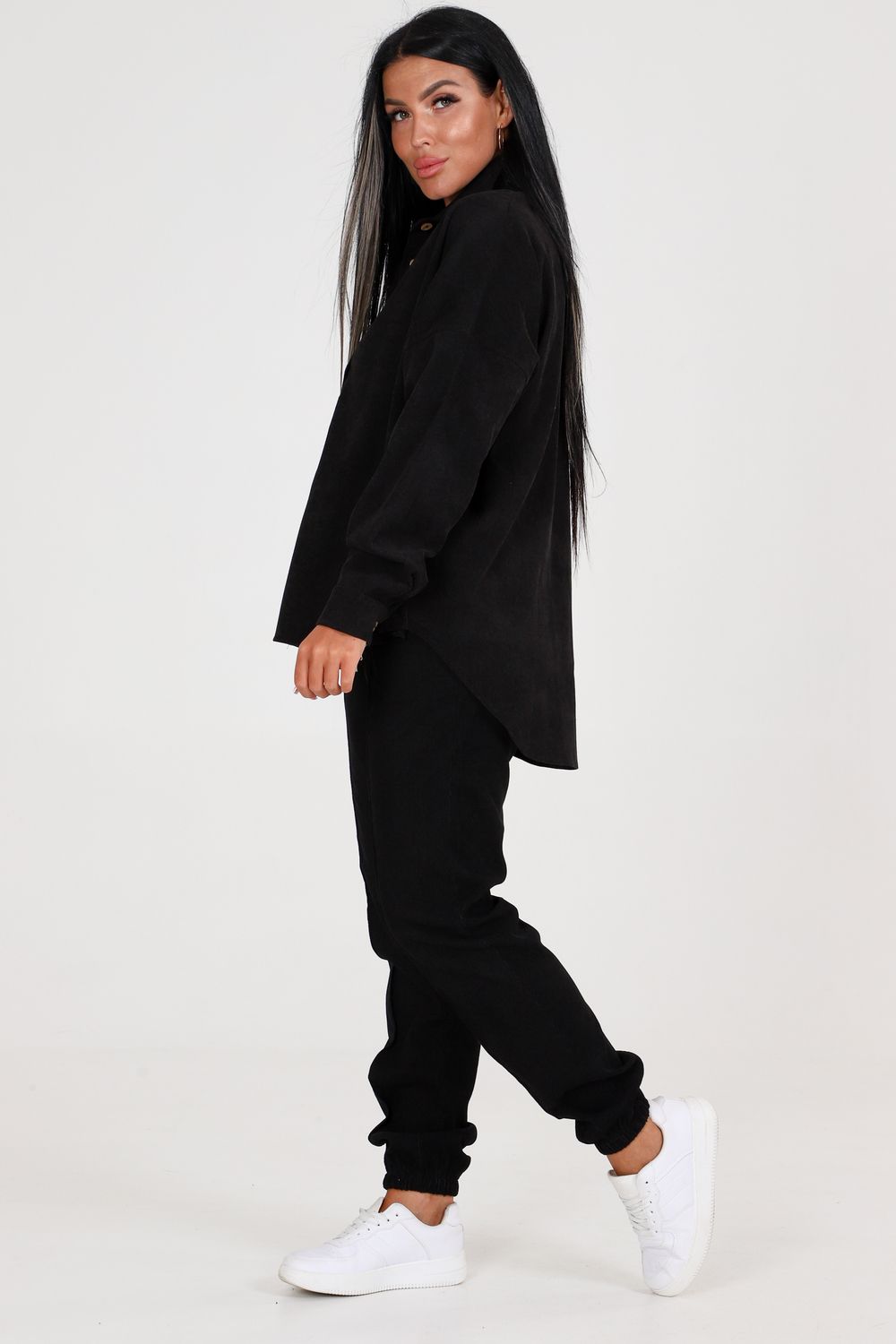 Женский костюм двойка - идеальный выбор для стильных и уверенных в себе женщин. Костюм состоит из брюк и туники рубашечного типа, которая застегивается на пуговицы. Туника украшена накладным карманом и имеет рукава на манжетах. Классический отложной воротник добавляет элегантности и выразительности к этой модели.