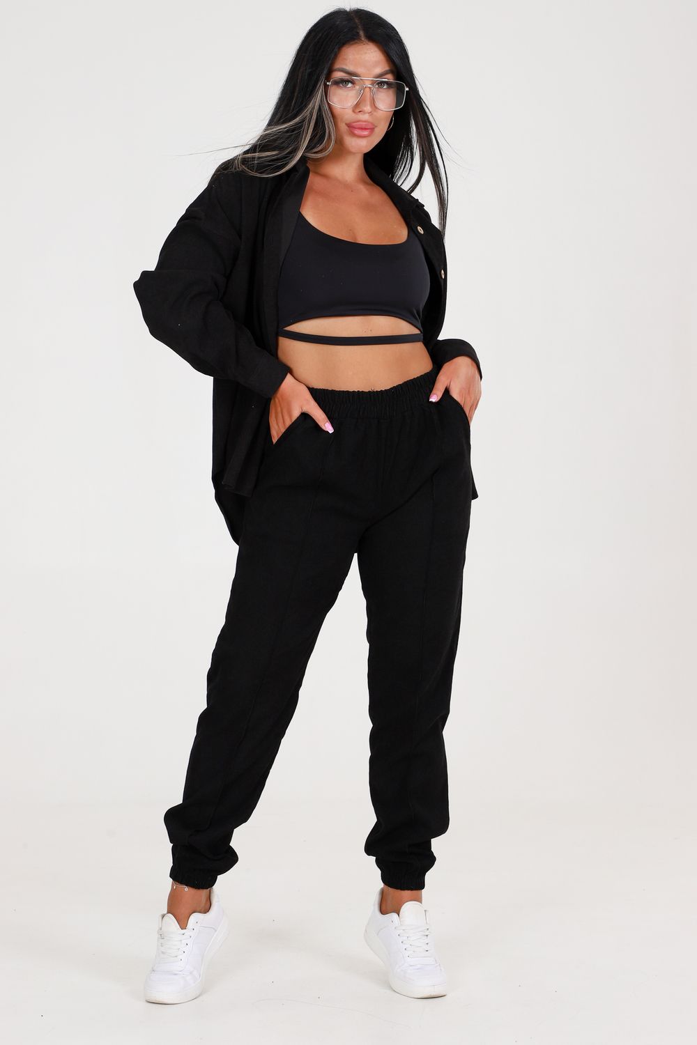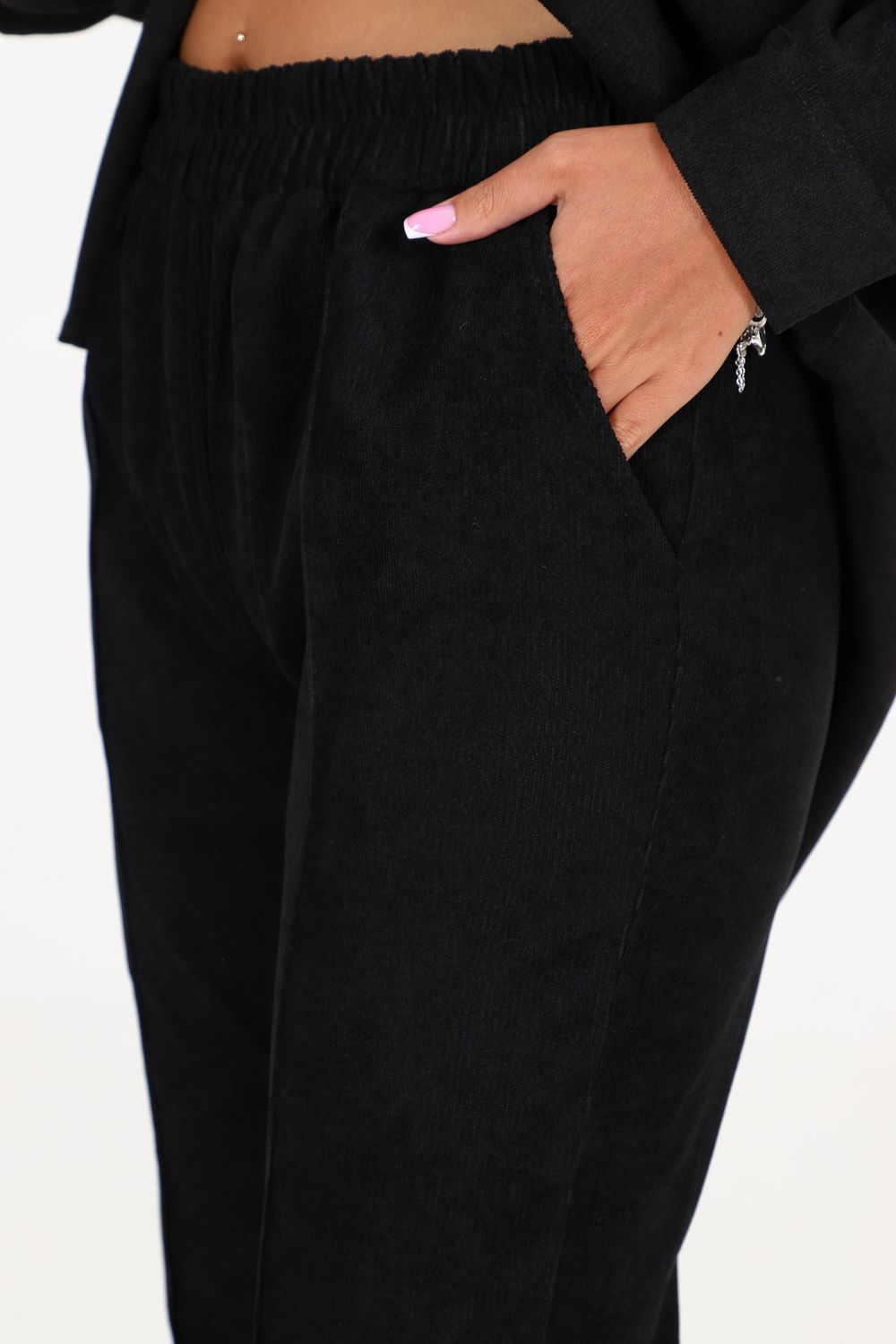 Брюки в данном костюме оснащены эластичной резинкой, что обеспечивает комфорт и идеальную посадку на любую фигуру. Изготовлены они из высококачественного велюра, который приятен на ощупь и обеспечивает долговечность изделия.