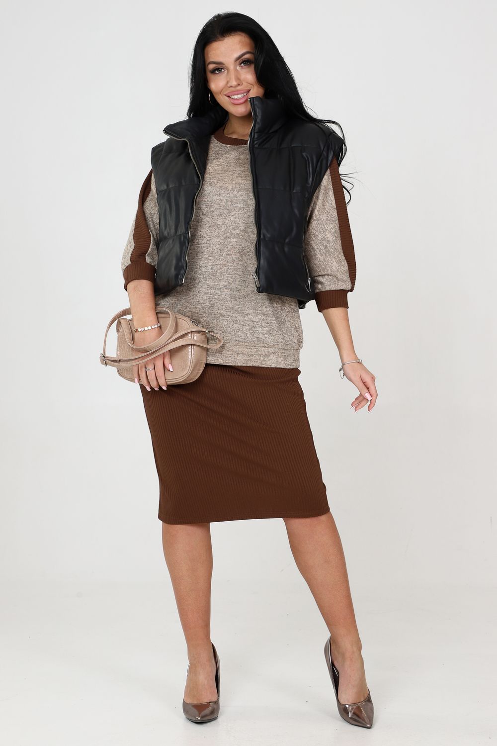 Отдельно следует отметить юбку этого костюма. Она выполнена в прямом силуэте, что обеспечивает удобство и свободу движений. Резинка на поясе гарантирует идеальную посадку, а ткань лапша придает ей особую текучесть и изысканность. Качество и комфорт – главные критерии, которыми отличается данный женский костюм. Используемая ткань ангора обеспечивает мягкость и тепло, делая его идеальным для прохладных дней. Ткань лапша, в свою очередь, приятна к телу и не сковывает движения.