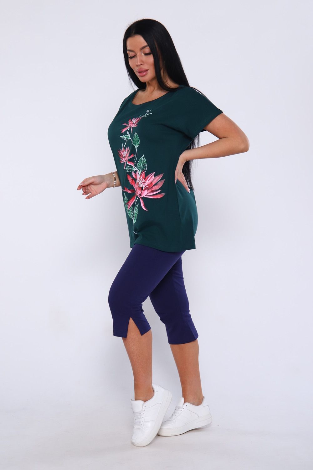 Костюм двойка для домашнего отдыха и сна из 100% хлопка. Футболка свободного кроя, удлиненная, с круглым вырезом горловины и коротким рукавом. Бриджи классической длины, прямого кроя. Мягкий и приятный к телу материал, обладающий высоким качеством, подарит вам настоящий уют на каждый день. Модный спортивный, лаконичный, мягкий, домашний костюм со штанами можно носить дома, на даче или в роддоме, а также использовать комплект как пижамный. Наш трикотажный костюм подойдет любой моднице. Такую домашнюю одежду для женщин можно использовать для йоги, активного отдыха, походов и прогулок весной и летом. Домашний костюм женский с бриджами с интересным рисунком соответствует моде и отлично подходит для повседневной носки.