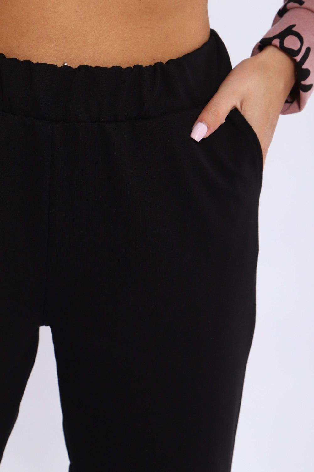 Костюм женский состоит из кофты свободного кроя и брюк с карманами. Плечо спущенное, спинка удлиненная.
