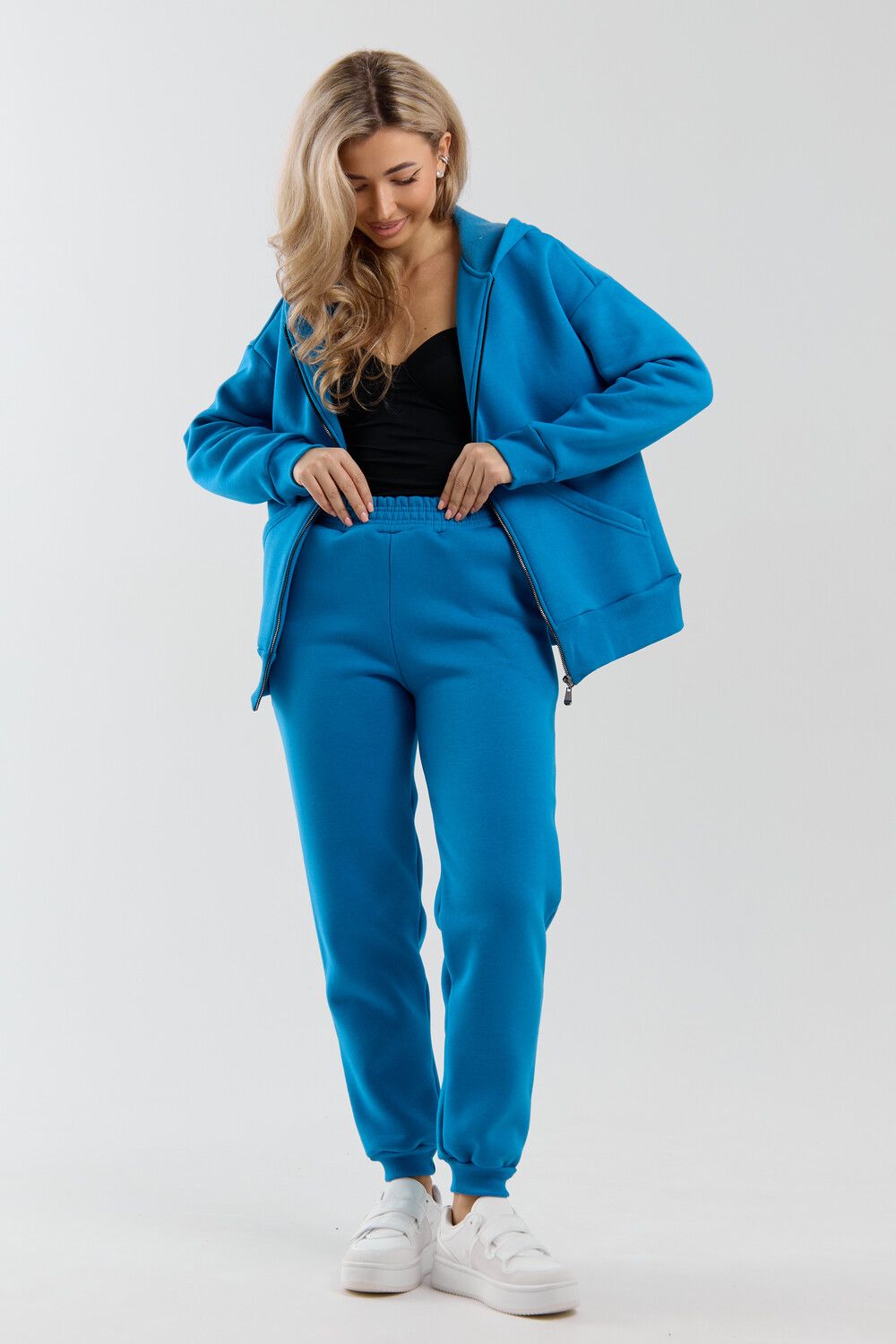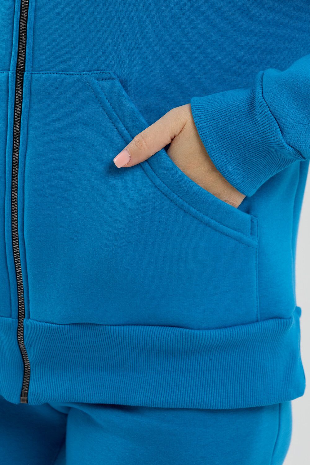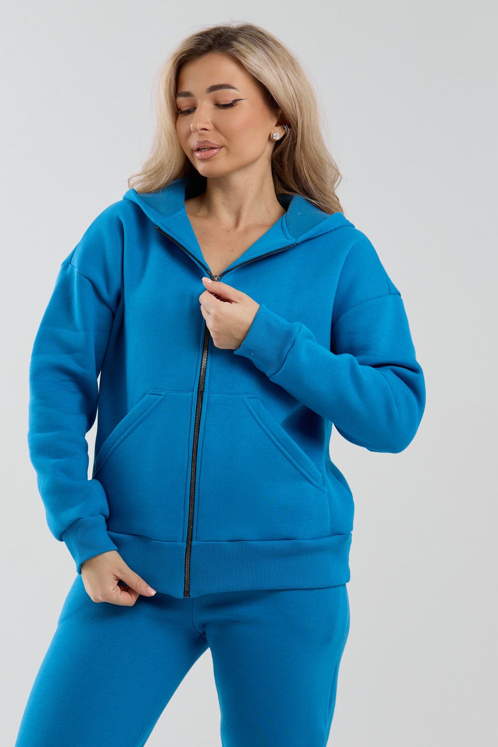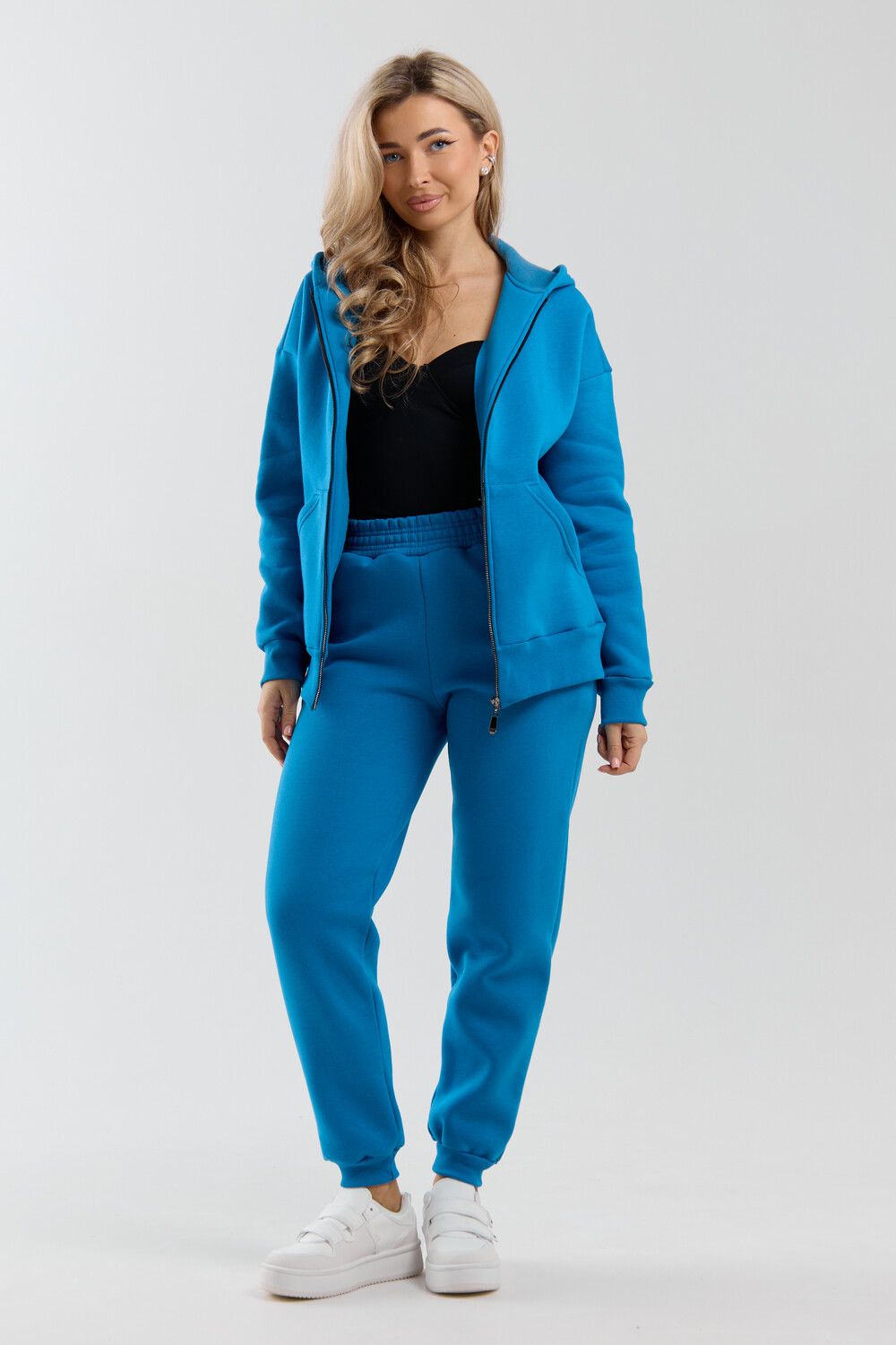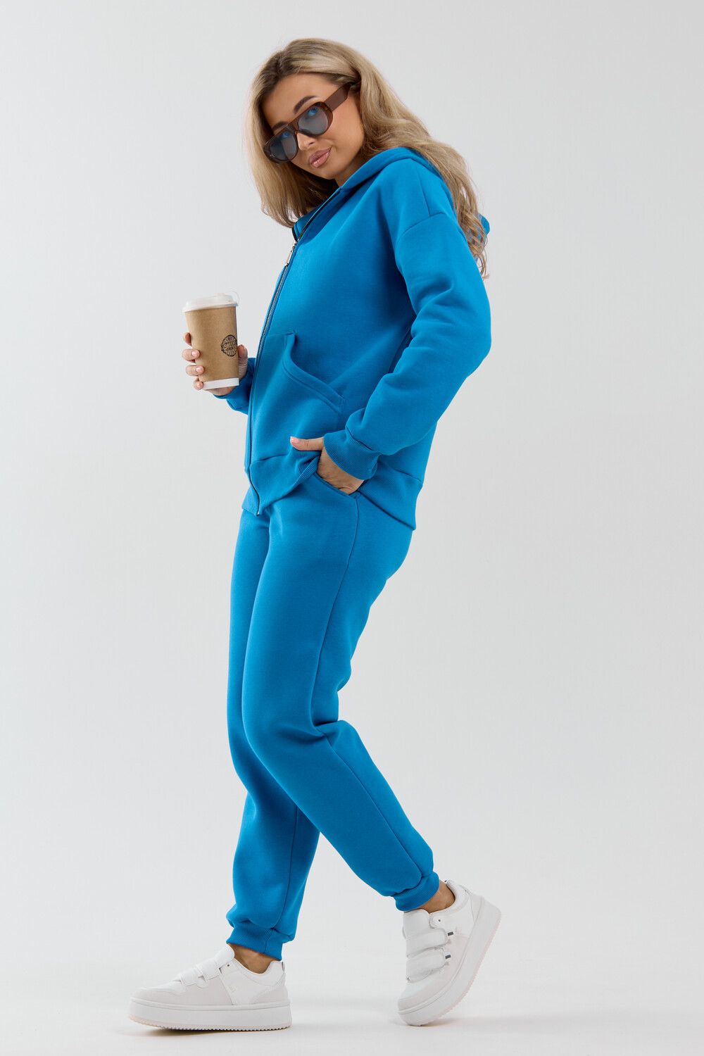 Модный женский костюм выполнен из качественного футера 3-нитки с начёсом, который обладает необыкновенной мягкостью, натуральностью, гипоаллергенностью и формоустойчивостью (при правильном уходе и стирке 30-40 °С), и обеспечивает максимальное удобство и комфорт при носке. Костюм состоит из современной "zip hoodi" свободного силуэта, которую дополняет: рукав с актуальной сейчас спущенной линией плеча, удобные карманы кенгуру и манжеты. Молния выполнена из качественных пластиковых зубьев закрепленных на прочной тесьме со стойким металлическим напылением, что обеспечивает плавное скольжение бегунка. А также удобные брюки, которые дополнены вместительными боковыми карманами, поясом выполненным на специализированной поясной машине и манжетами выполненными из качественного кашкорсе. Длина рукава указана от точки основания шеи.