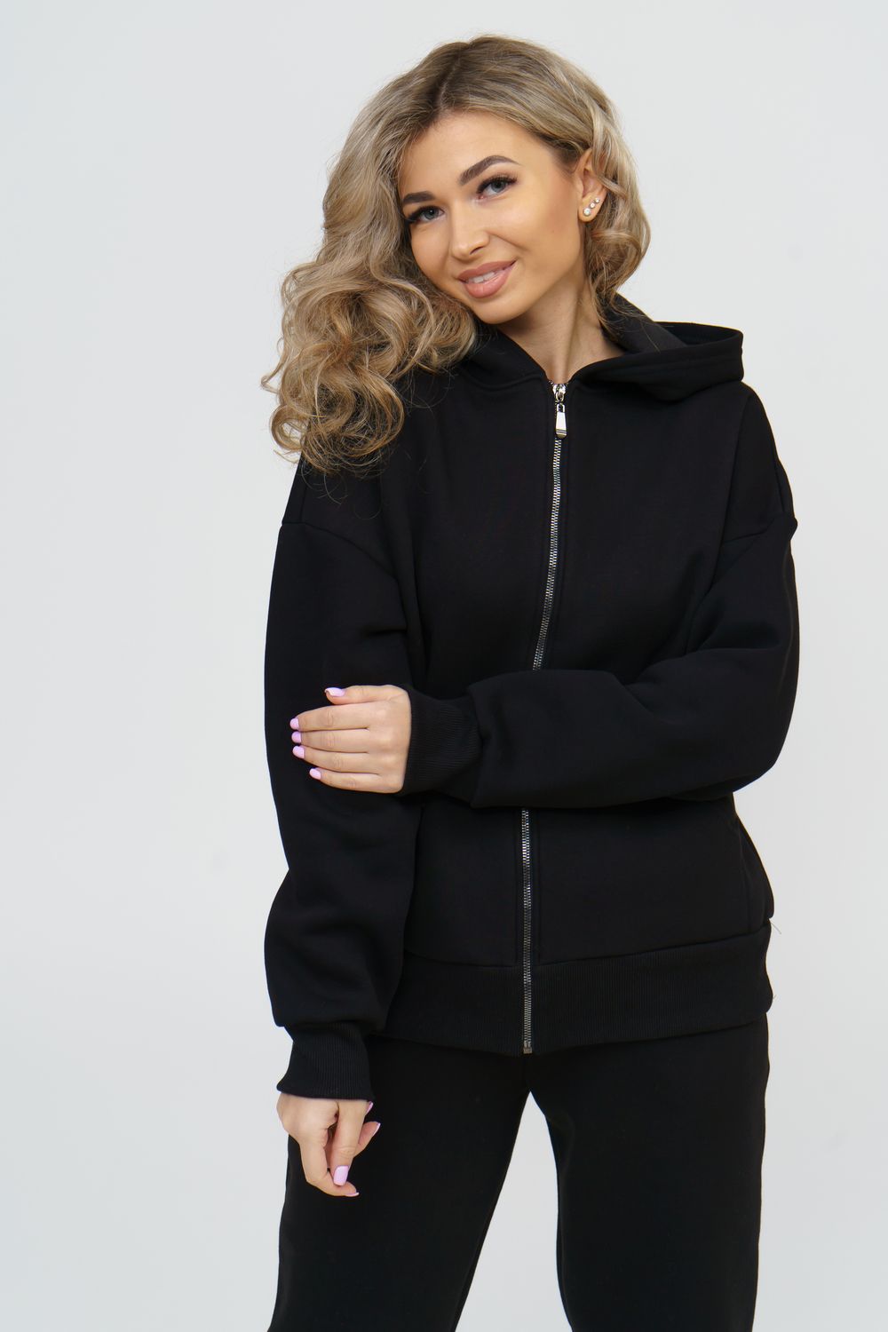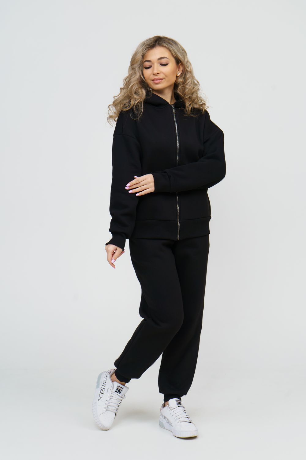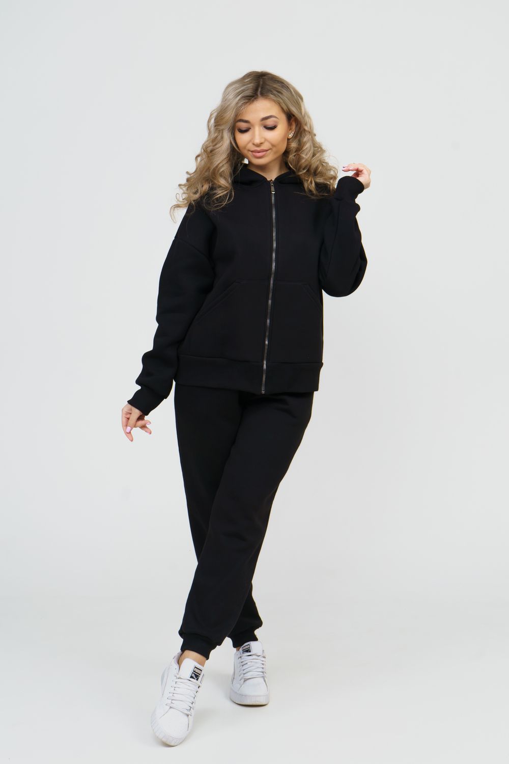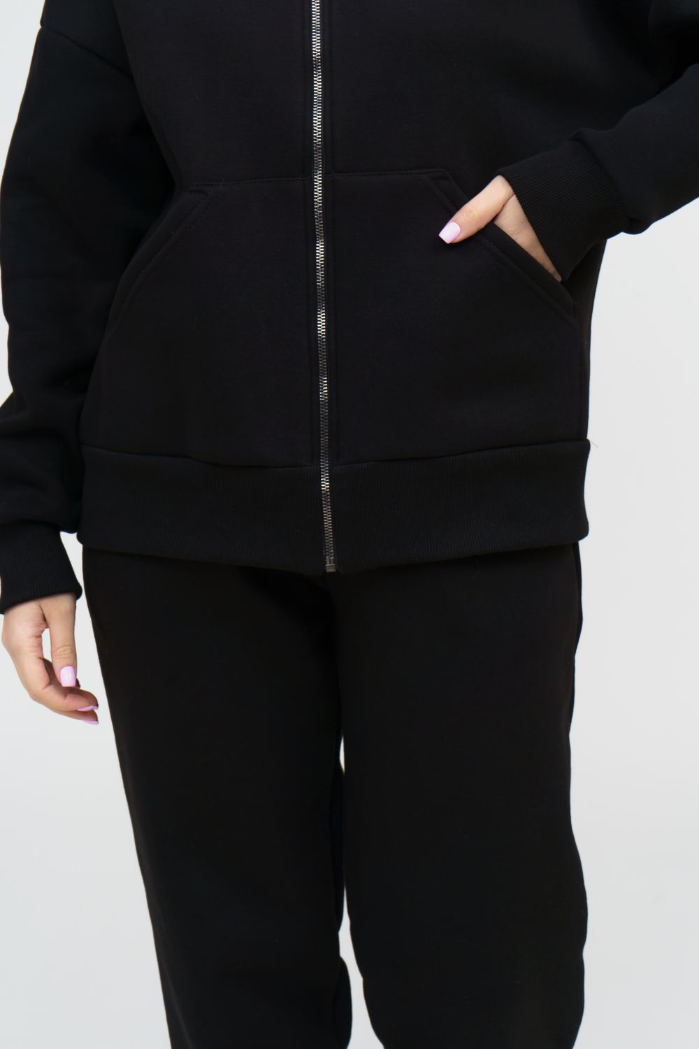 Модный женский костюм выполнен из качественного футера 3-нитки с начёсом, который обладает необыкновенной мягкостью, натуральностью, гипоаллергенностью и формоустойчивостью (при правильном уходе и стирке 30-40 °С), и обеспечивает максимальное удобство и комфорт при носке. Костюм состоит из современной "zip hoodi" свободного силуэта, которую дополняет: рукав с актуальной сейчас спущенной линией плеча, удобные карманы кенгуру и манжеты. Молния выполнена из качественных пластиковых зубьев закрепленных на прочной тесьме со стойким металлическим напылением, что обеспечивает плавное скольжение бегунка. А также удобные брюки, которые дополнены вместительными боковыми карманами, поясом выполненным на специализированной поясной машине и манжетами выполненными из качественного кашкорсе. Длина рукава указана от точки основания шеи.