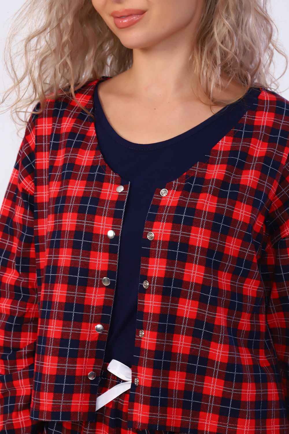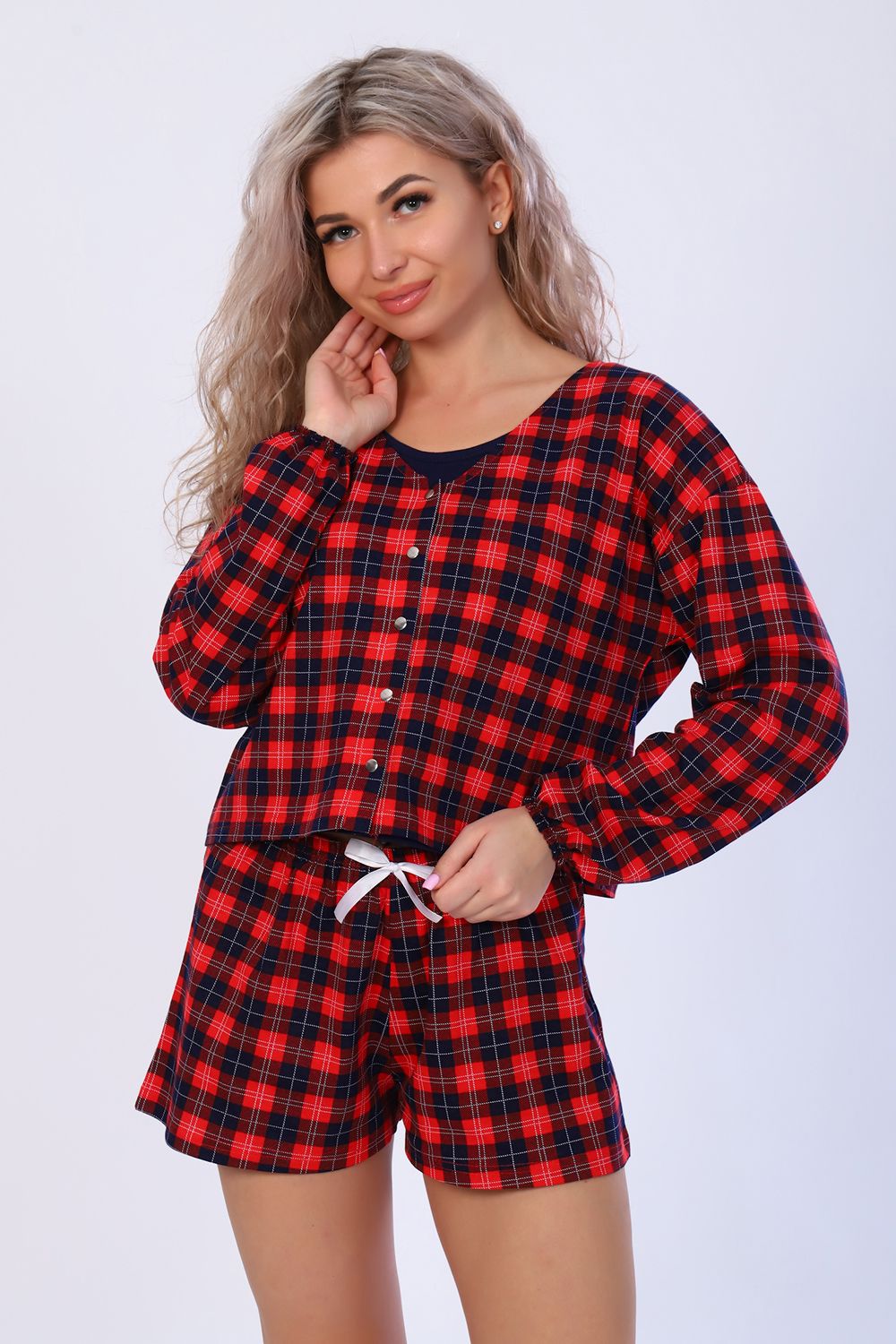 Женский костюм 4-ка из 100% хлопка - это стильный и идеально подобранный домашний лук для себя или в качестве подарка, который можно варьировать в разных вариантах на Ваш вкус. А натуральная, мягкая и гипоаллергенная ткань позволит почувствовать внутреннюю гармонию и домашний уют. Рубашка с V-образным вырезом, длинным рукавом на резинке и застегивающаяся на кнопки, добавляет к обоим возможным образам стильность, лёгкость и неординарность. А современные брюки палаццо с удобными боковыми карманами и поясом, выполненным на специализированной машине, можно легко заменить легкими струящимися укороченными шортиками и окунуться в приятный мир грёз. Данный комплект универсален, его могут носить дети, подростки, девушки и женщины. Всё это мы совместили в нашей уютной пижаме, чтобы Вы могли не только приятно встречать новый день, но также отдыхать и заниматься домашними делами.