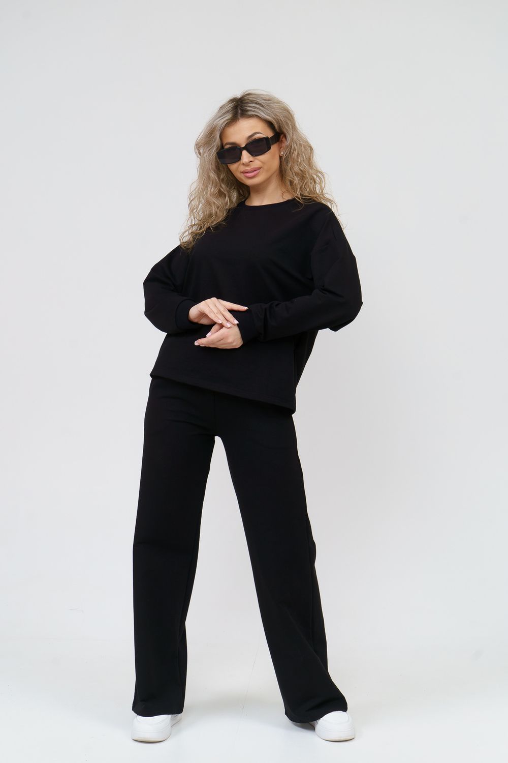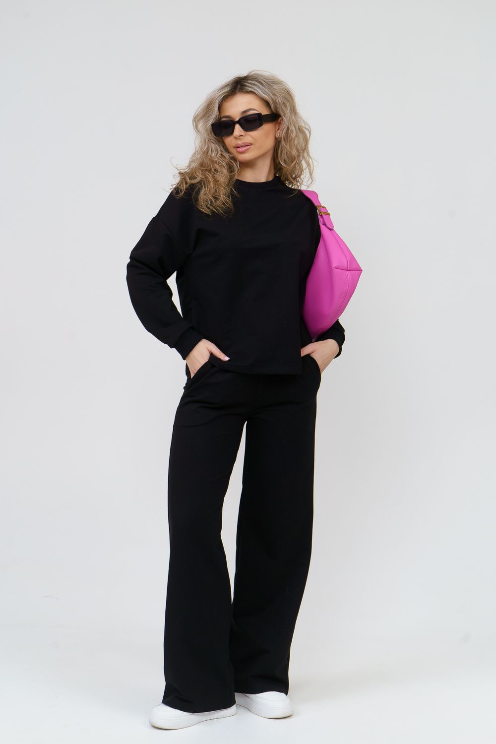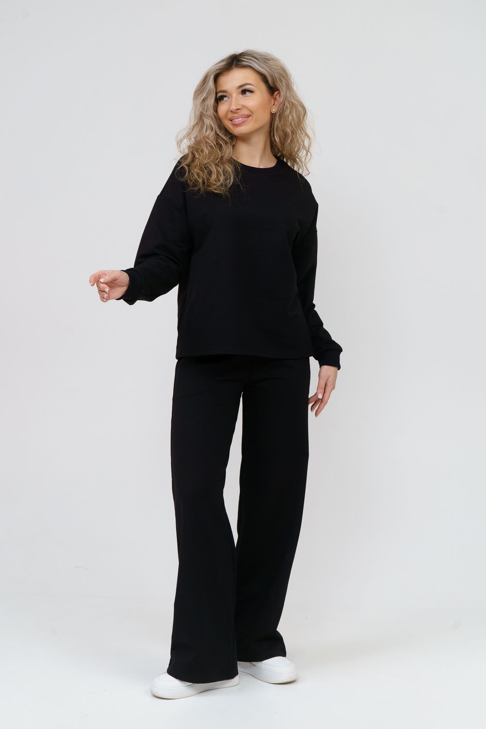 Модный спортивный костюм выполнен из плотного футера 2-х нитки высокого качества, который не линяет, не даёт усадку во время стирки, держит форму, не деформируется, а главное хорошо пропускает воздух. В состав комплекта входит свитшот с округлым вырезом горловины и стильные брюки - палаццо с высокой посадкой. Свитшот имеет свободный крой, спущенное плечо и манжеты на рукавах. Высокая посадка брюк идеально подойдёт на большие размеры и для беременных. А пояс брюк в свою очередь, выполненный на специализированной поясной машине, придаёт ещё больше удобства и комфорта. Костюм представлен в широкой размерной сетке с 42 по 56 размер, благодаря этому, Вы сможете выбрать трикотажный брючный костюм как большого размера, так и для девочки - подростка. Комплект такого плана идеально подойдёт для школы и офиса, в качестве повседневной одежды, домашнего костюма или для активного отдыха. Костюм свободного кроя не сковывает движений, отлично сидит по фигуре, скрывает все недостатки и выгодно подчёркивает достоинства. Комплект уместен в любой ситуации и будет находкой для тех, кто ценит свою индивидуальность. Купив данный костюм, Вы можете не только побаловать себя, но и преподнести в качестве подарка и порадовать других!