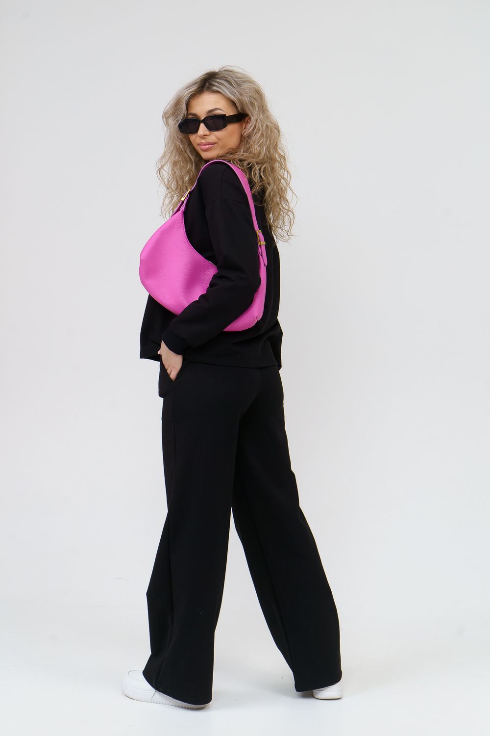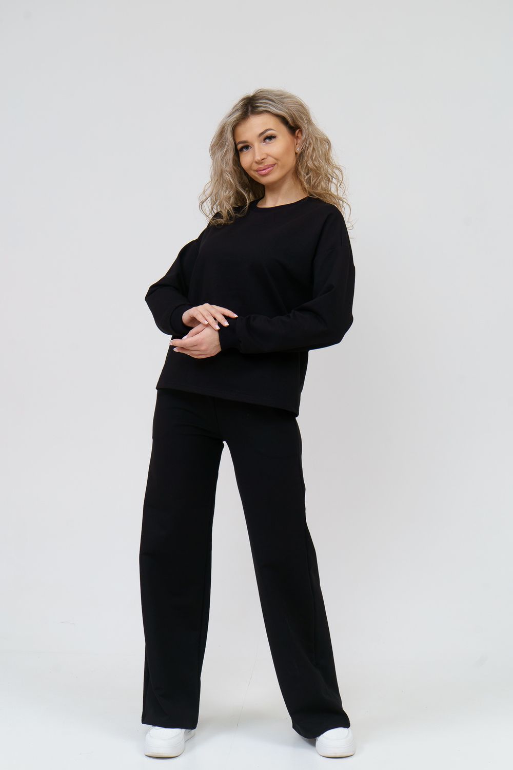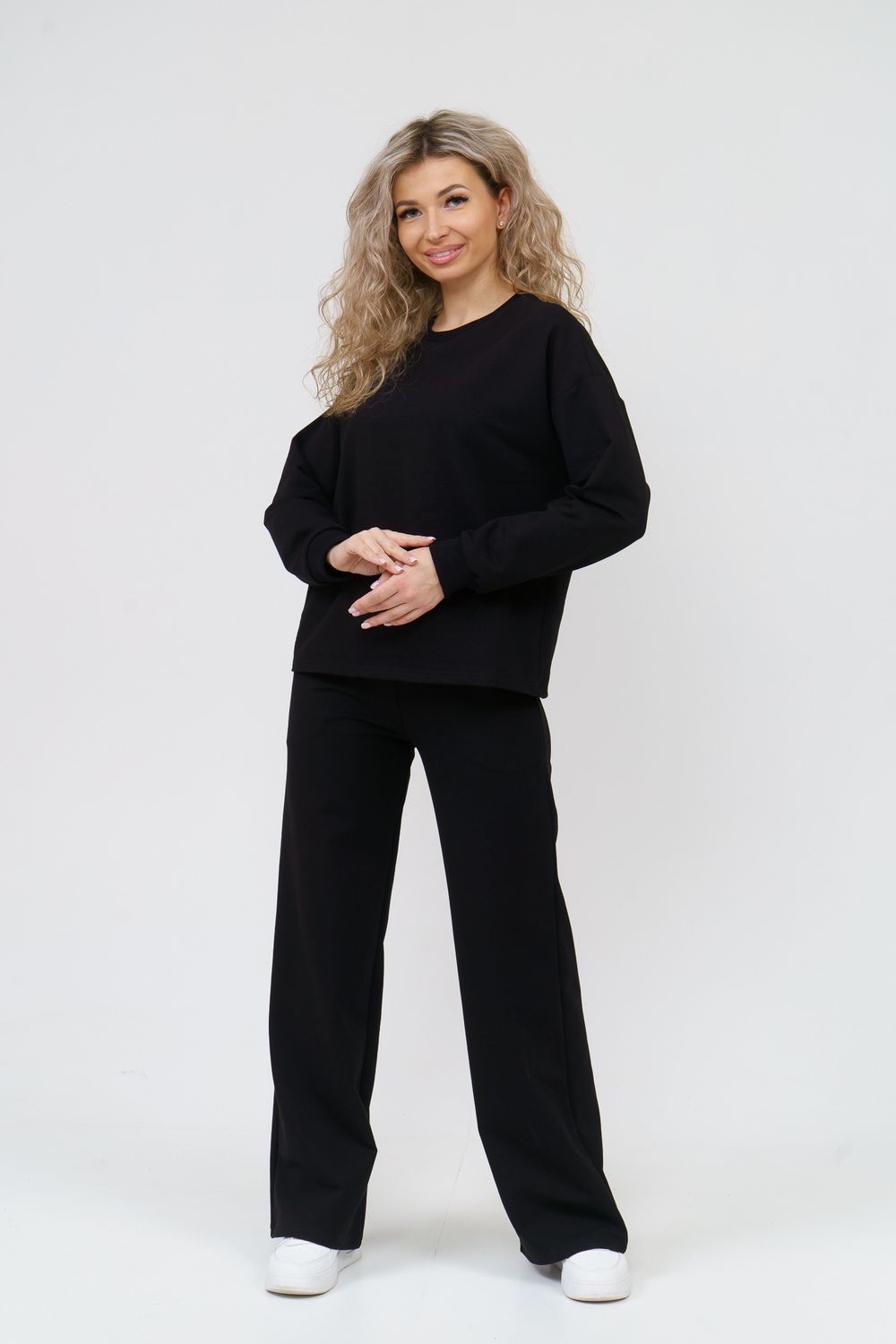 Модный спортивный костюм выполнен из плотного футера 2-х нитки высокого качества, который не линяет, не даёт усадку во время стирки, держит форму, не деформируется, а главное хорошо пропускает воздух. В состав комплекта входит свитшот с округлым вырезом горловины и стильные брюки - палаццо с высокой посадкой. Свитшот имеет свободный крой, спущенное плечо и манжеты на рукавах. Высокая посадка брюк идеально подойдёт на большие размеры и для беременных. А пояс брюк в свою очередь, выполненный на специализированной поясной машине, придаёт ещё больше удобства и комфорта. Костюм представлен в широкой размерной сетке с 42 по 56 размер, благодаря этому, Вы сможете выбрать трикотажный брючный костюм как большого размера, так и для девочки - подростка. Комплект такого плана идеально подойдёт для школы и офиса, в качестве повседневной одежды, домашнего костюма или для активного отдыха. Костюм свободного кроя не сковывает движений, отлично сидит по фигуре, скрывает все недостатки и выгодно подчёркивает достоинства. Комплект уместен в любой ситуации и будет находкой для тех, кто ценит свою индивидуальность. Купив данный костюм, Вы можете не только побаловать себя, но и преподнести в качестве подарка и порадовать других!