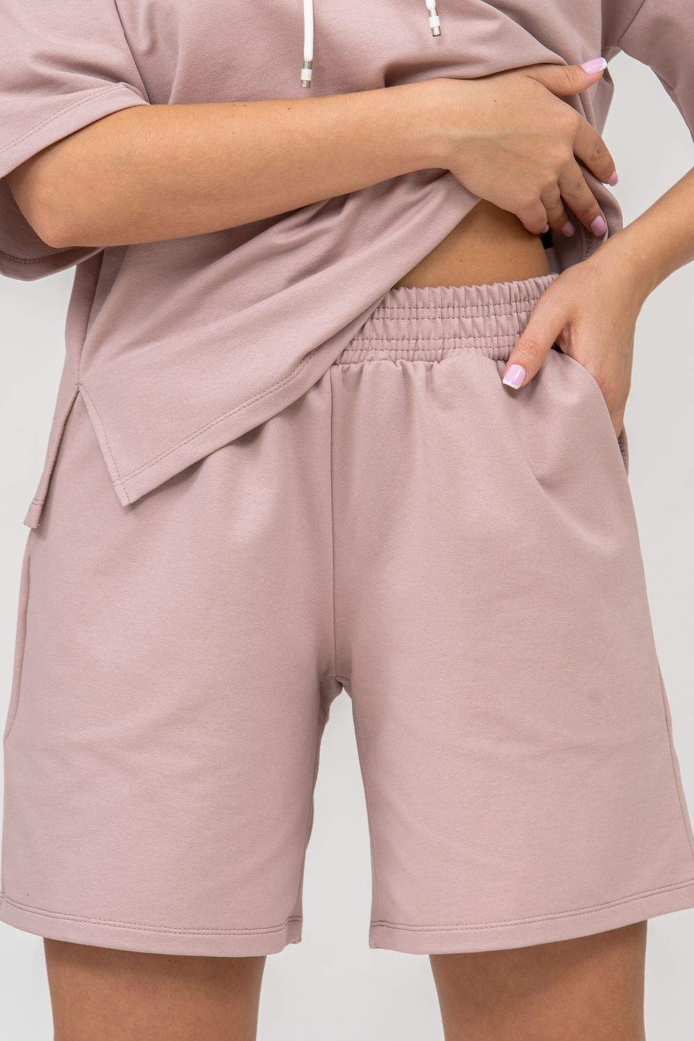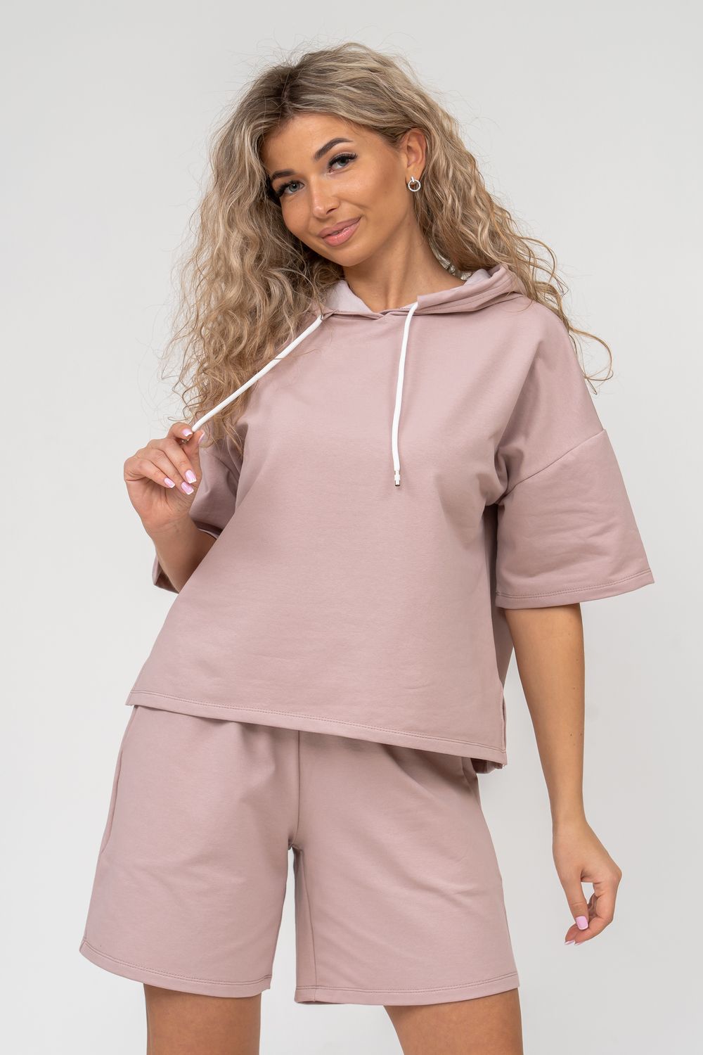 Женский костюм 2-ка выполнен из футера высокого качества с хлопком и небольшим добавлением полиэстера и лайкры, что позволяет изделию не скатываться и оставлять идеальный внешний вид на долгое время. Костюм состоит из толстовки и шорт. Толстовка с капюшоном и шнурком. Линия плеча спущена, рукав укороченный, по бокам имеются небольшие разрезы. Свободный крой прекрасно будет смотреться на дамах с любыми формами. Костюм такого плана представлен в широкой размерной сетке, что позволяет выбрать его как девушке, так и женщине. Однотонный костюм модных расцветок будет удачным выбором для поездок в отпуск, на пикник, для активного отдыха и прогулок по городу. Будет гармонично сочетаться как с кроссовками, так и с туфлями, балетками или босоножками. Используя эту модель в качестве домашнего костюма, Вы поймёте, что это именно тот самый идеальный вариант, в котором вы будете себя чувствовать удобно, комфортно и современно. Костюм с шортами - это настоящая находка для тех, кто ценит свою индивидуальность!