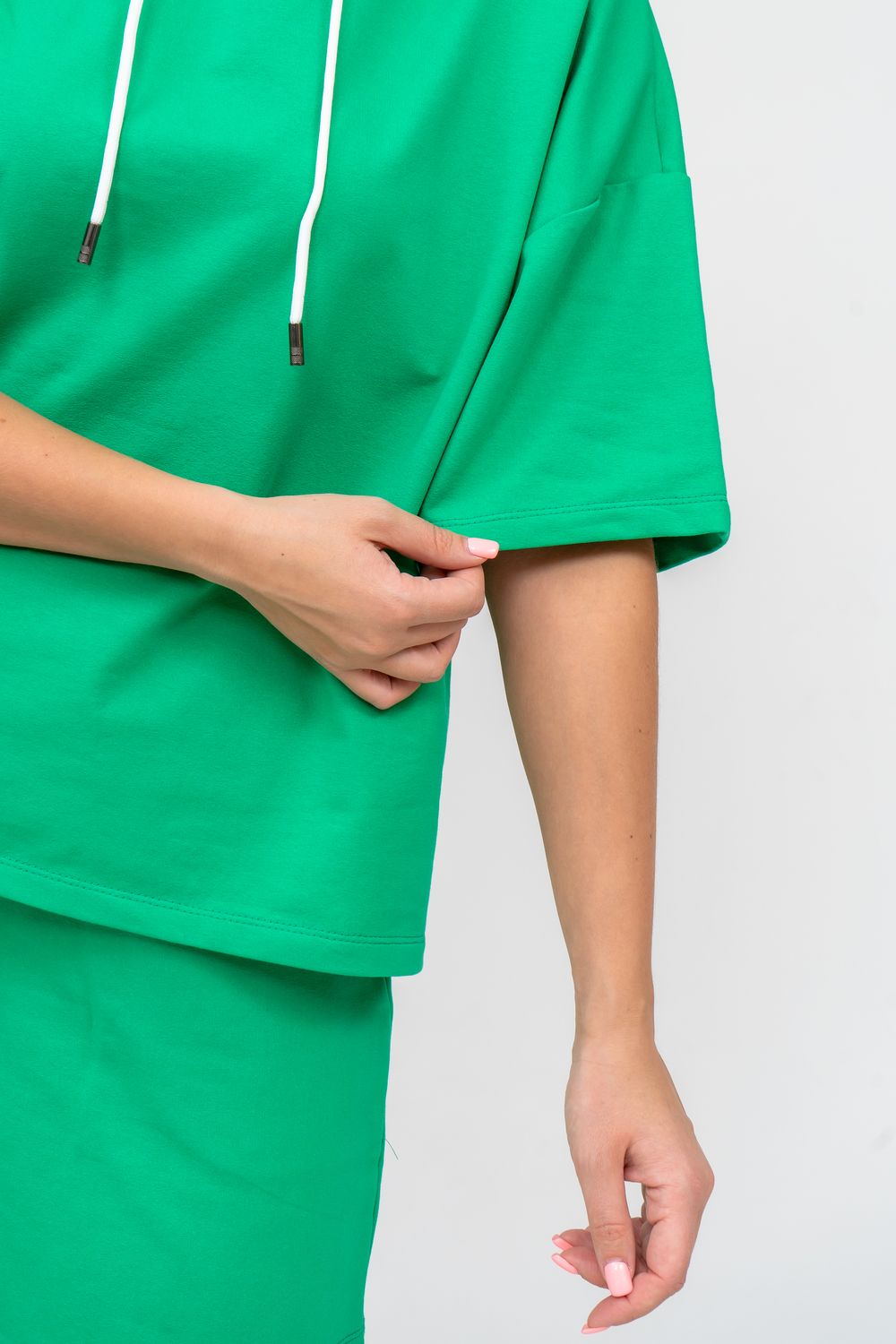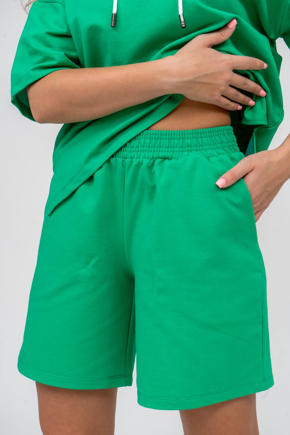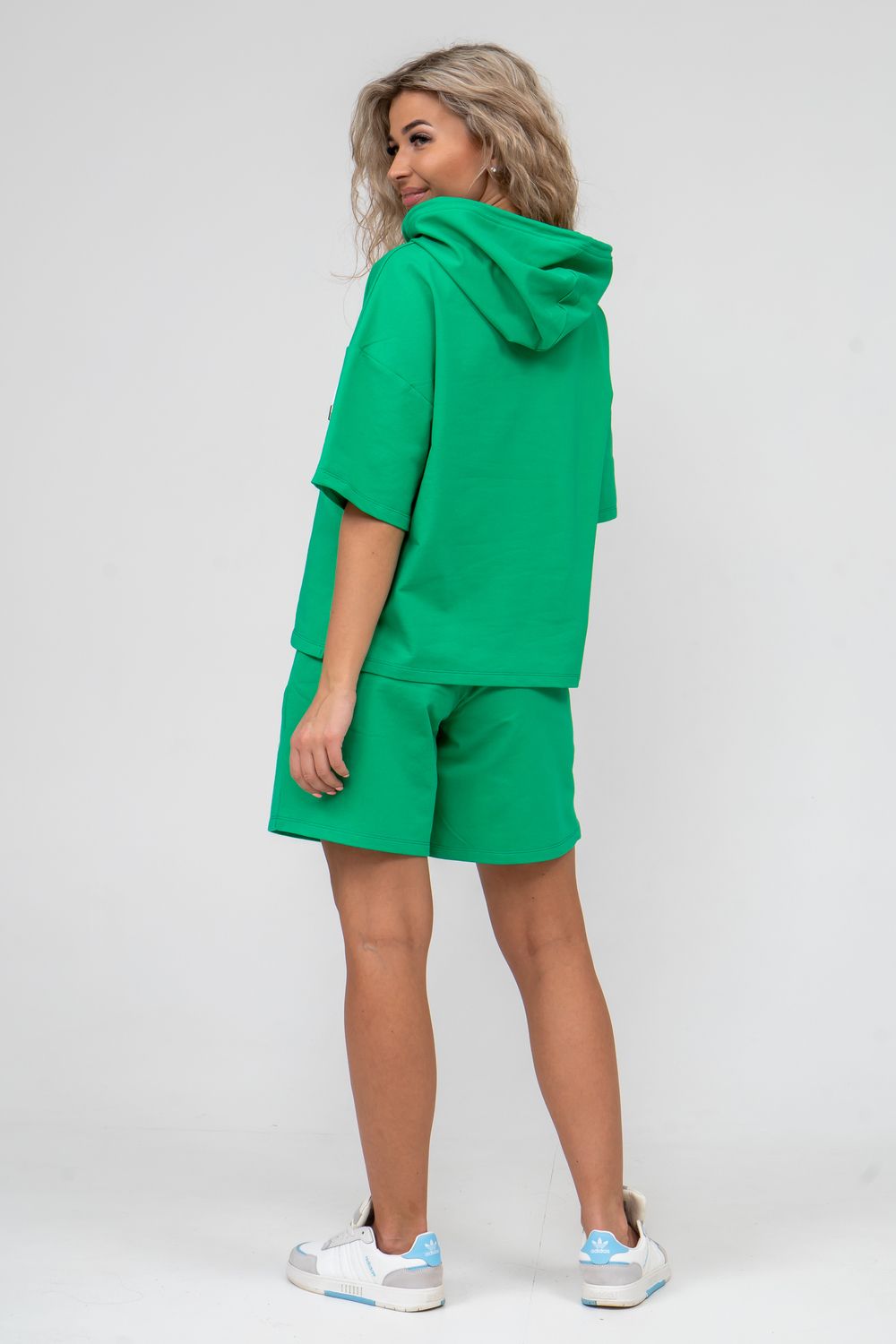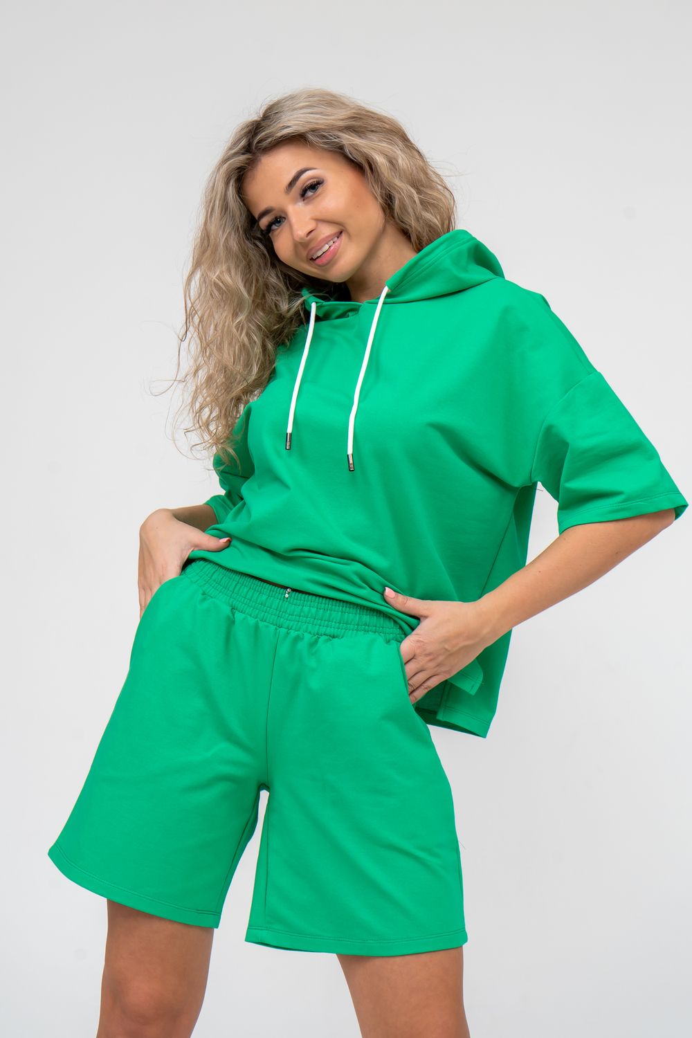 Женский костюм 2-ка выполнен из футера высокого качества с хлопком и небольшим добавлением полиэстера и лайкры, что позволяет изделию не скатываться и оставлять идеальный внешний вид на долгое время. Костюм состоит из толстовки и шорт. Толстовка с капюшоном и шнурком. Линия плеча спущена, рукав укороченный, по бокам имеются небольшие разрезы. Свободный крой прекрасно будет смотреться на дамах с любыми формами. Костюм такого плана представлен в широкой размерной сетке, что позволяет выбрать его как девушке, так и женщине. Однотонный костюм модных расцветок будет удачным выбором для поездок в отпуск, на пикник, для активного отдыха и прогулок по городу. Будет гармонично сочетаться как с кроссовками, так и с туфлями, балетками или босоножками. Используя эту модель в качестве домашнего костюма, Вы поймёте, что это именно тот самый идеальный вариант, в котором вы будете себя чувствовать удобно, комфортно и современно. Костюм с шортами - это настоящая находка для тех, кто ценит свою индивидуальность!