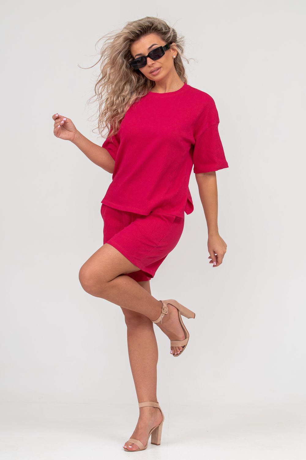 Костюм - футболка и шорты, выполнен из кулирки гипе жатка компакт. Жатка - это ткань с "мятой" структурой, декоративными заломами и складками. Имеет много положительных качеств: хорошо тянется, упругая, красивая текстура, неприхотливая в уходе, прочная, износостойкая, не мнётся, не нуждается в глажке и приятная к телу. Костюм отлично подойдет для дома, прогулок, походов на пляж или в спортзал. Этот яркий и модный костюм прекрасно сочетается со стильными образами на любой вкус. Он легкий и свободный, что делает его идеальным для лета и весны. Двойка из трикотажа подойдет для дома, фитнеса, танцев или пляжа. Отлично подойдёт для тех, кто любит яркие и популярные новинки. Наши вещи идеально подходят для пляжного отдыха на море, даче или путешествий и будут выглядеть прекрасно в любой ситуации. Костюм подходит для высоких и невысоких женщин, а также для полных и худых девушек. Это базовая вещь в гардеробе каждой женщины, которая ценит качество и стиль. Используйте его как спортивную одежду для занятий фитнесом или другими видами спорта. Он также прекрасно подходит для дачных прогулок и весенних поездок. Костюм - это отличный выбор для тех, кто ищет красивый и удобный наряд. Наш комплект из футболки и шорт - молодежный и стильный выбор для каждой женщины, девушки и подростка. Он прекрасно сочетается с разной обувью и аксессуарами, что делает его универсальным и практичным.