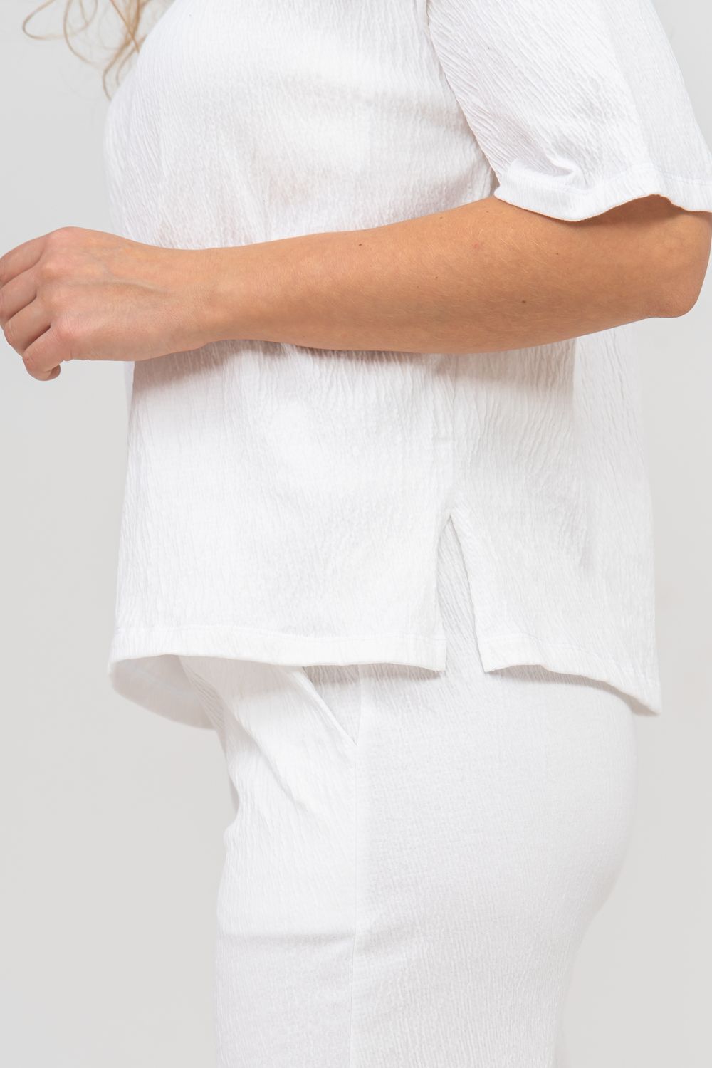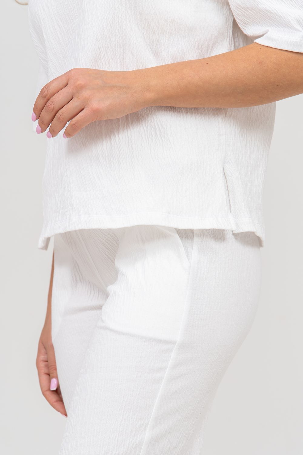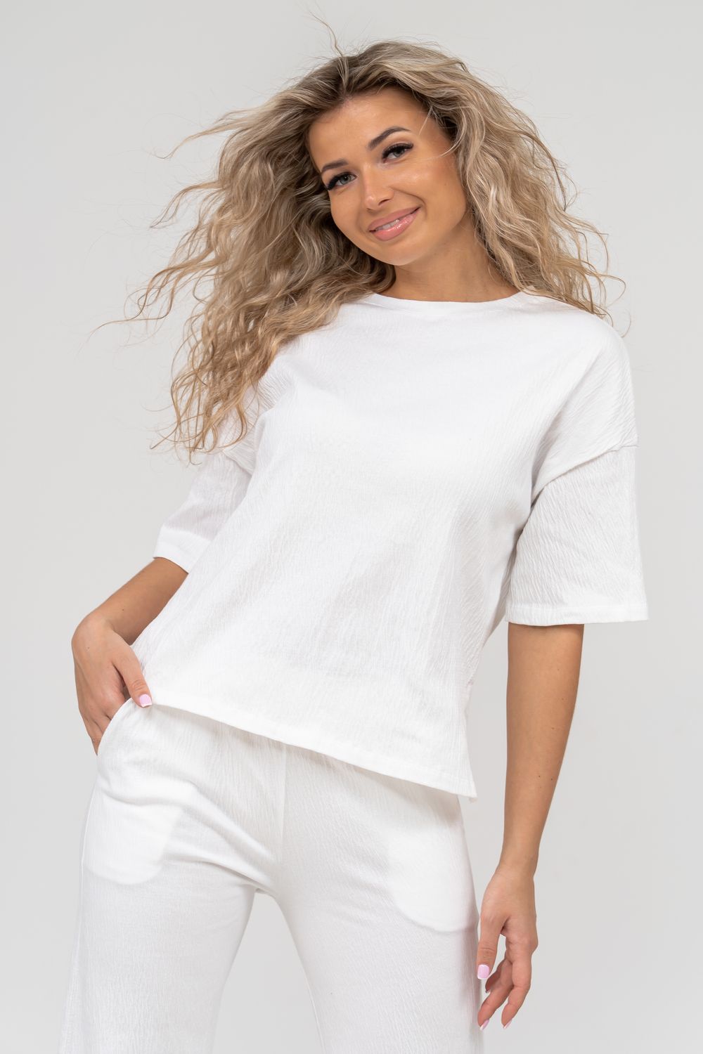 Модный стильный костюм - идеальное решение для тех, кто ищет лёгкую и красивую одежду на каждый день. Костюм, футболка и брюки, выполнен из кулирки гипе жатка компакт. Жатка - это ткань с "мятой" структурой, декоративными заломами и складками. Имеет много положительных качеств: хорошо тянется, упругая, красивая текстура, неприхотливая в уходе, прочная, износостойкая, не мнётся, не нуждается в глажке и приятная к телу. Футболка выполнена со спущенным рукавом, отстроченной обтачкой по горловине и двумя небольшими разрезами по бокам. На брюках имеется два вместительных боковых кармана и пояс, обработанный на специализированной поясной машине. Данная модель костюма очень удобна в качестве повседневной одежды, а универсальный фасон хорошо скроет недостатки и подчеркнет достоинства фигуры. Свободный крой комплекта "двойки" не сковывает движения, что делает его очень удобным в носке, резинка не перекручивается, а высокая посадка брюк - палаццо даёт ощущение комфорта. Такой костюм можно использовать как в качестве костюма для фитнеса, так и как вариант домашнего костюма, в нем также можно поехать на дачу или отправиться на вечернюю прогулку. Однотонный дизайн летнего брючного костюма без принта, надписей и декоративных элементов будет гармонировать с любым стилем одежды, а дополнить образ с модным костюмчиком можно любимыми аксессуарами и украшениями. Свободную футболку и брючки можно носить как вместе, так и отдельно. Футболку с коротким рукавом и разрезами по бокам можно легко сочетать с джинсами, юбками и шортами. К брюкам с карманами можно также подобрать любой верх. Образ с костюмом можно дополнить кроссовками, кедами или туфлями. Мягкий, прочный, хлопковый материал не дает усадку, не теряет форму после стирки и не линяет, его можно стирать в режиме бережной стирки при 30 градусах. Также данный трикотажный костюм не скатывается и не вытягивается за счет небольшого количества полиэстера в составе. Такой однотонный костюм с широкими брюками подойдет для разной возрастной категории. Он идеально подойдет для беременных и мам с детьми. Хорошо сядет на высоких и невысоких представительницах прекрасного пола всех возрастов. Такой универсальный прогулочный женский костюм станет отличным подарочным вариантом, его можно подарить маме, дочери, жене, бабушке, подруге или порадовать себя любимую даже без повода. Наш костюм благодаря своей практичности и лаконичному дизайну будет служить Вам долгие годы.