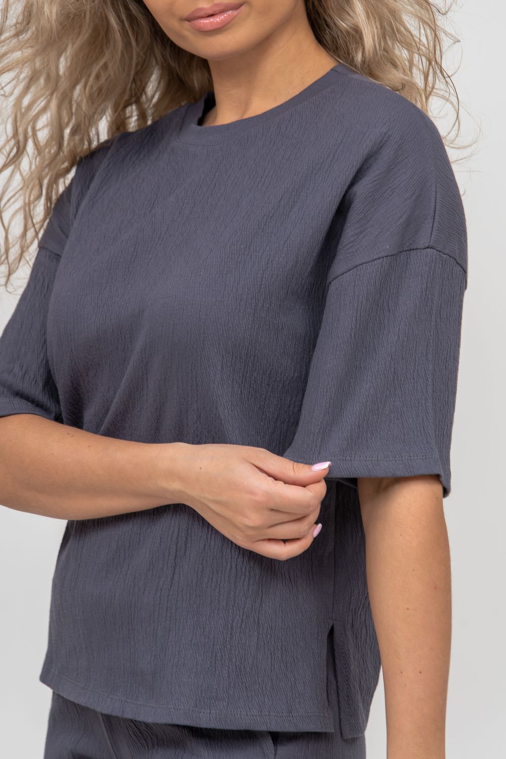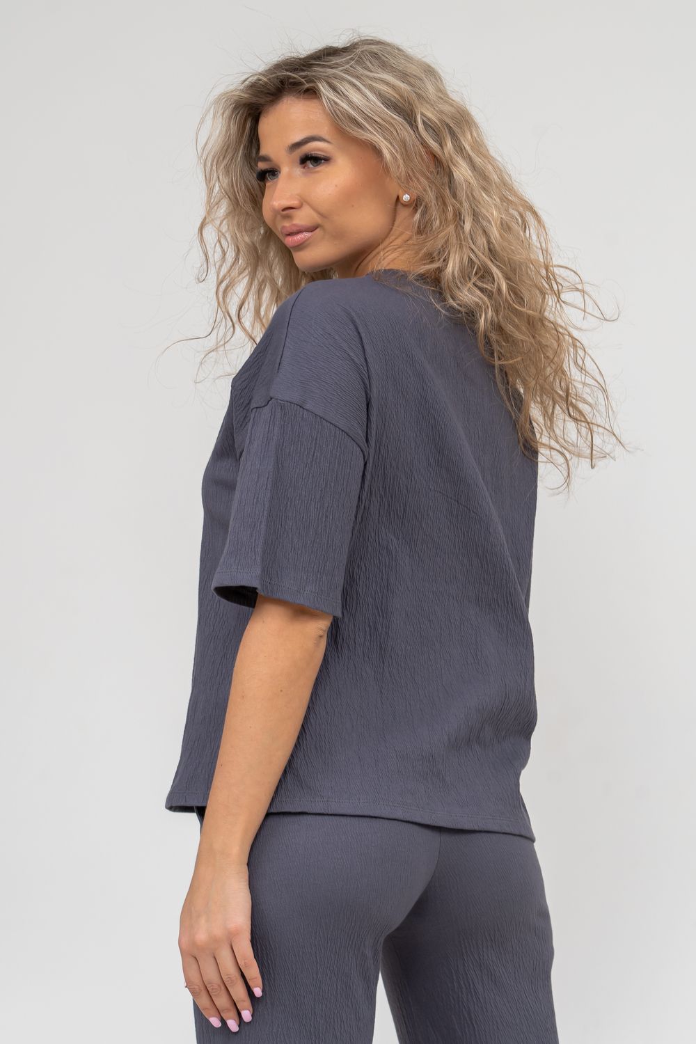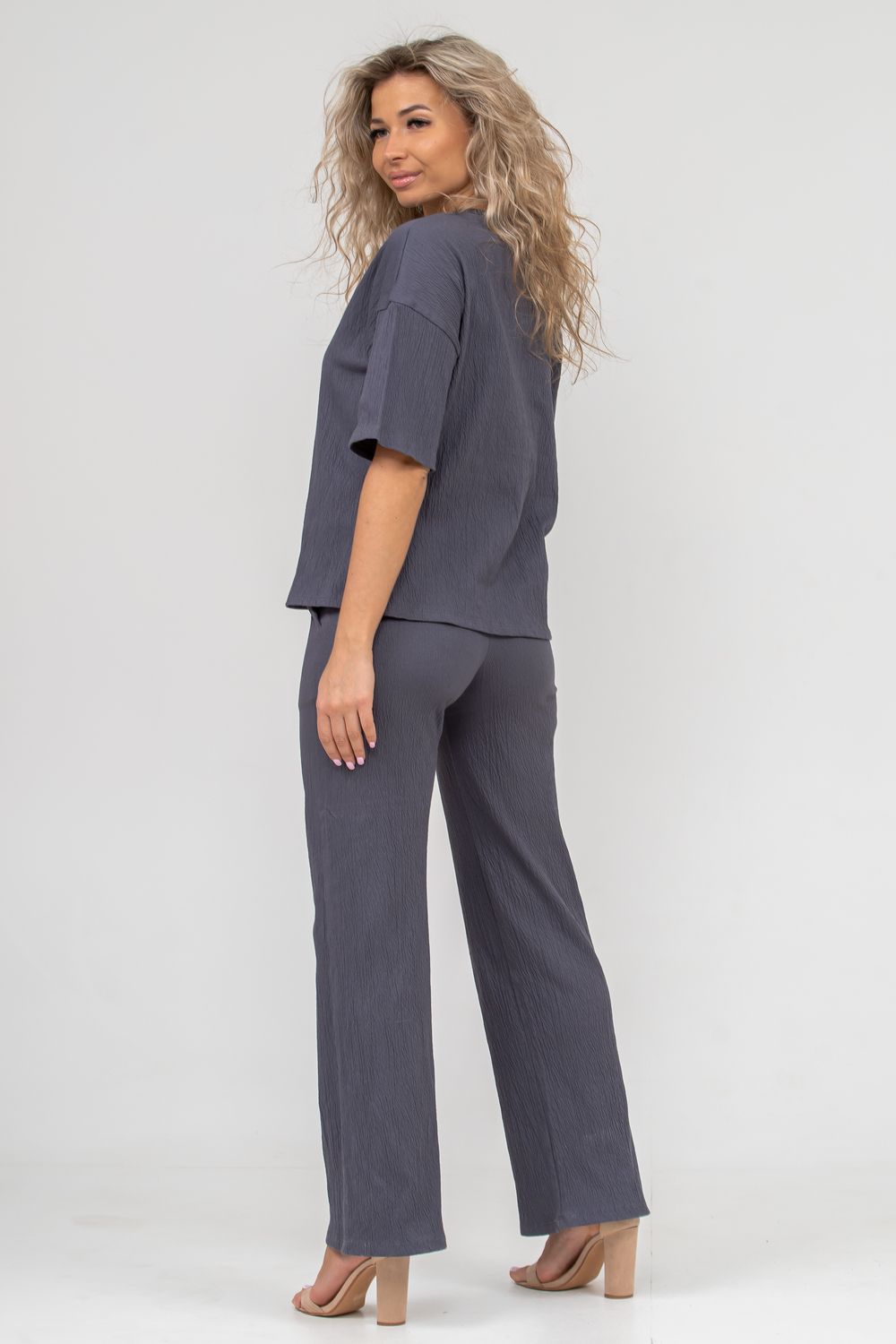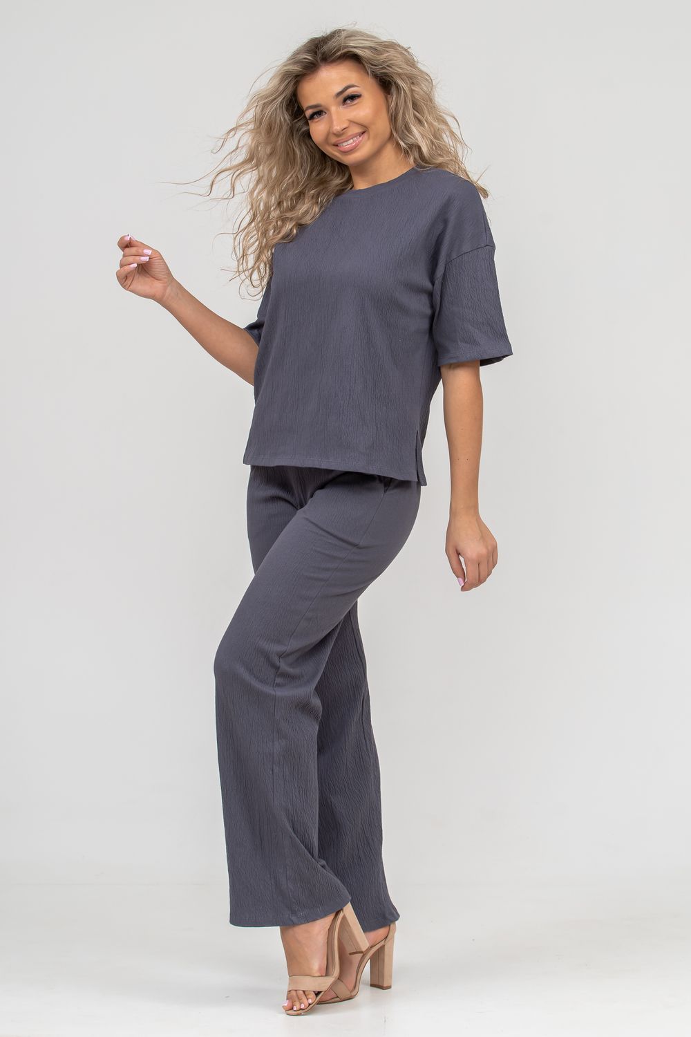 Модный стильный костюм - идеальное решение для тех, кто ищет лёгкую и красивую одежду на каждый день. Костюм, футболка и брюки, выполнен из кулирки гипе жатка компакт. Жатка - это ткань с "мятой" структурой, декоративными заломами и складками. Имеет много положительных качеств: хорошо тянется, упругая, красивая текстура, неприхотливая в уходе, прочная, износостойкая, не мнётся, не нуждается в глажке и приятная к телу. Футболка выполнена со спущенным рукавом, отстроченной обтачкой по горловине и двумя небольшими разрезами по бокам. На брюках имеется два вместительных боковых кармана и пояс, обработанный на специализированной поясной машине. Данная модель костюма очень удобна в качестве повседневной одежды, а универсальный фасон хорошо скроет недостатки и подчеркнет достоинства фигуры. Свободный крой комплекта "двойки" не сковывает движения, что делает его очень удобным в носке, резинка не перекручивается, а высокая посадка брюк - палаццо даёт ощущение комфорта. Такой костюм можно использовать как в качестве костюма для фитнеса, так и как вариант домашнего костюма, в нем также можно поехать на дачу или отправиться на вечернюю прогулку. Однотонный дизайн летнего брючного костюма без принта, надписей и декоративных элементов будет гармонировать с любым стилем одежды, а дополнить образ с модным костюмчиком можно любимыми аксессуарами и украшениями. Свободную футболку и брючки можно носить как вместе, так и отдельно. Футболку с коротким рукавом и разрезами по бокам можно легко сочетать с джинсами, юбками и шортами. К брюкам с карманами можно также подобрать любой верх. Образ с костюмом можно дополнить кроссовками, кедами или туфлями. Мягкий, прочный, хлопковый материал не дает усадку, не теряет форму после стирки и не линяет, его можно стирать в режиме бережной стирки при 30 градусах. Также данный трикотажный костюм не скатывается и не вытягивается за счет небольшого количества полиэстера в составе. Такой однотонный костюм с широкими брюками подойдет для разной возрастной категории. Он идеально подойдет для беременных и мам с детьми. Хорошо сядет на высоких и невысоких представительницах прекрасного пола всех возрастов. Такой универсальный прогулочный женский костюм станет отличным подарочным вариантом, его можно подарить маме, дочери, жене, бабушке, подруге или порадовать себя любимую даже без повода. Наш костюм благодаря своей практичности и лаконичному дизайну будет служить Вам долгие годы.