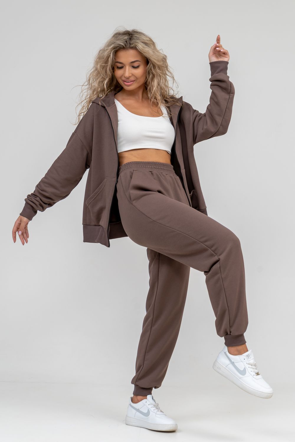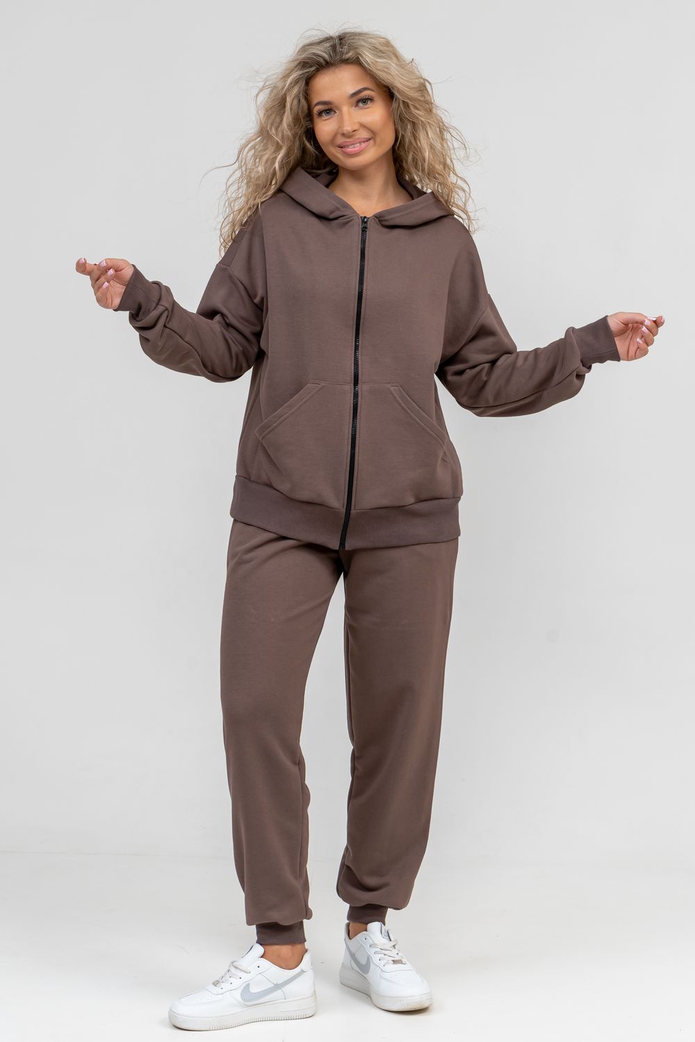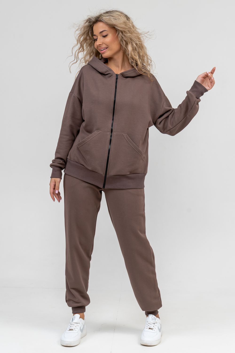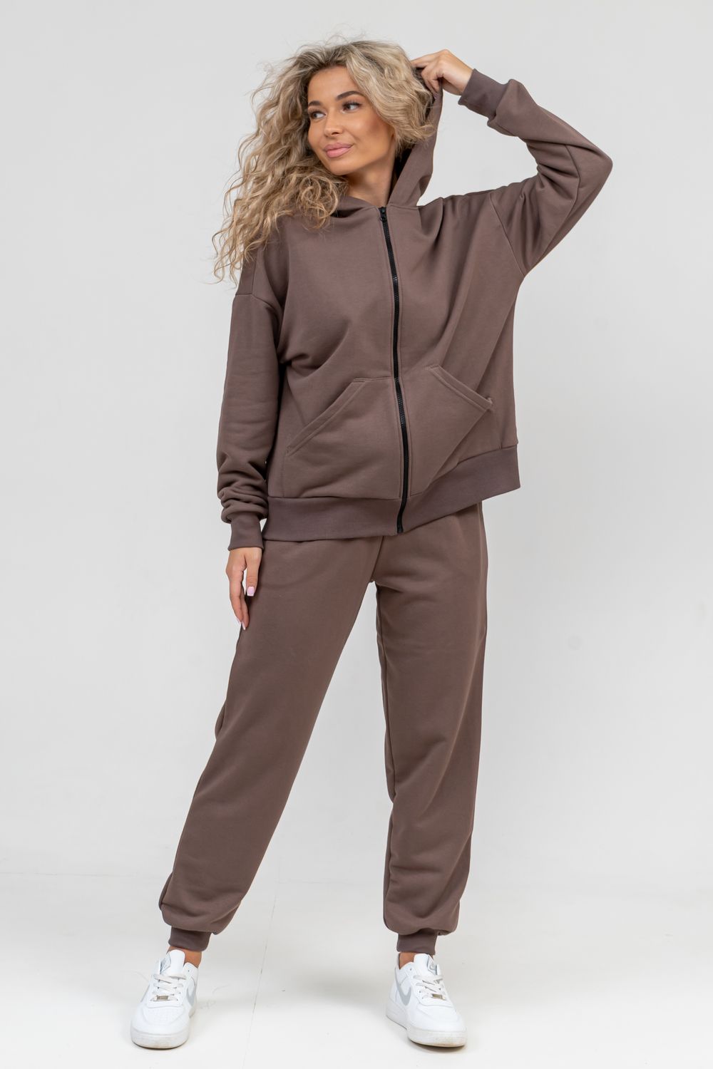 Модный женский костюм выполнен из качественного футера 3-нитки петли, который обладает необыкновенной мягкостью, натуральностью, гипоаллергенностью и формоустойчивостью (при правильном уходе и стирке 30-40 °С), и обеспечивает максимальное удобство и комфорт при носке. Костюм состоит из современной "zip hoodi" свободного силуэта, которую дополняет: рукав с актуальной сейчас спущенной линией плеча, удобные карманы кенгуру и манжеты. Молния выполнена из качественных пластиковых зубьев закрепленных на прочной тесьме, что обеспечивает плавное скольжение бегунка. А также удобные брюки, которые дополнены вместительными боковыми карманами, поясом выполненным на специализированной поясной машине и манжетами выполненными из качественного кашкорсе. Костюм двойка прекрасно подходит для вечерних и повседневных образов, для прогулок и занятий спортом, а также в качестве женского костюма для дома. Костюм такого плана не сковывает движения, поэтому идеально подойдёт для беременных и мам с детьми. Наши костюмы согреют Вас на прогулке и сделают комфортным путешествие. А большой и тёплый капюшон защитит Вас от непогоды.