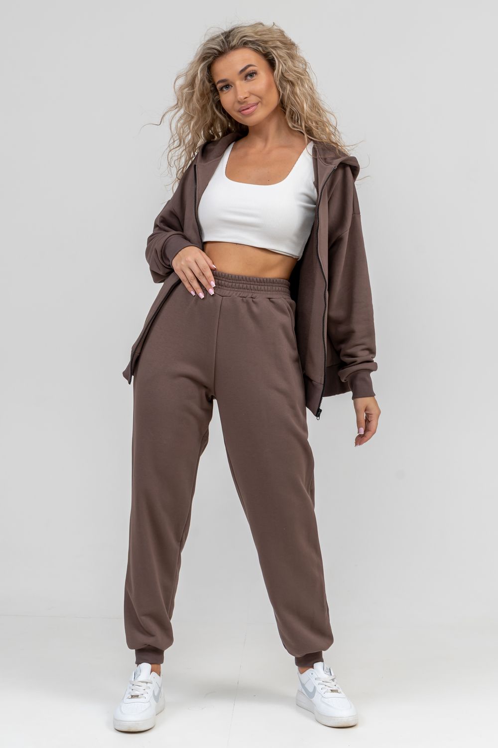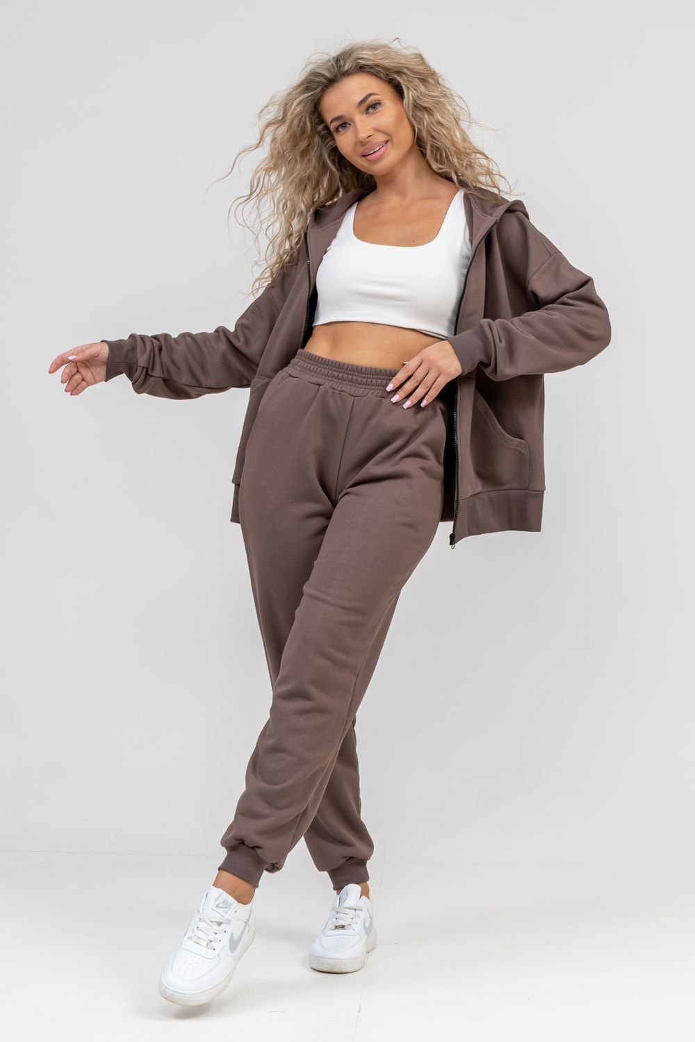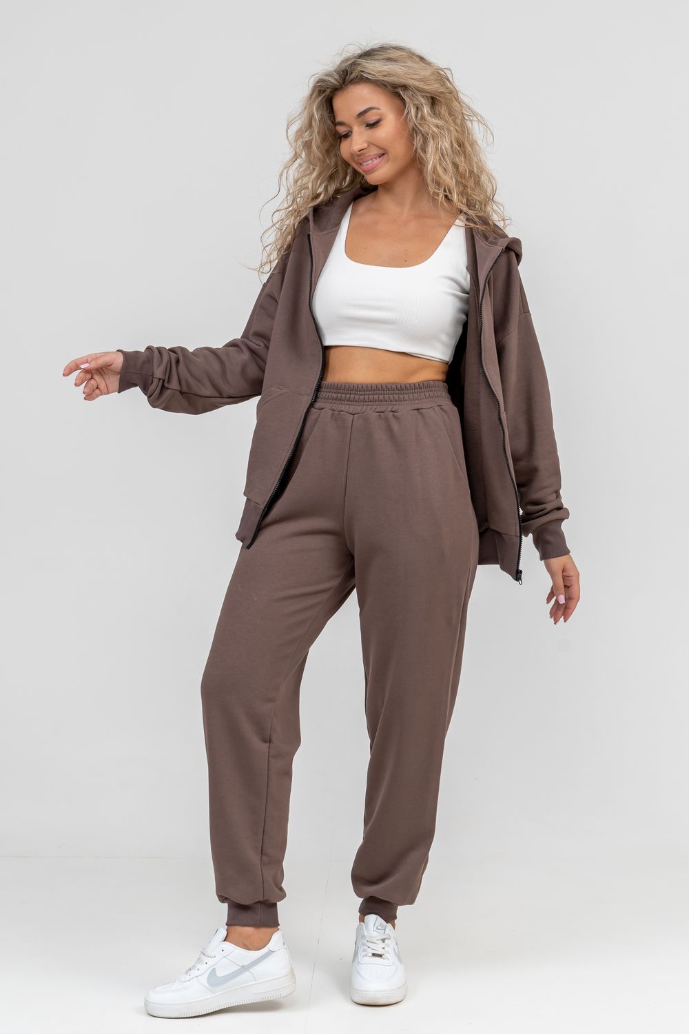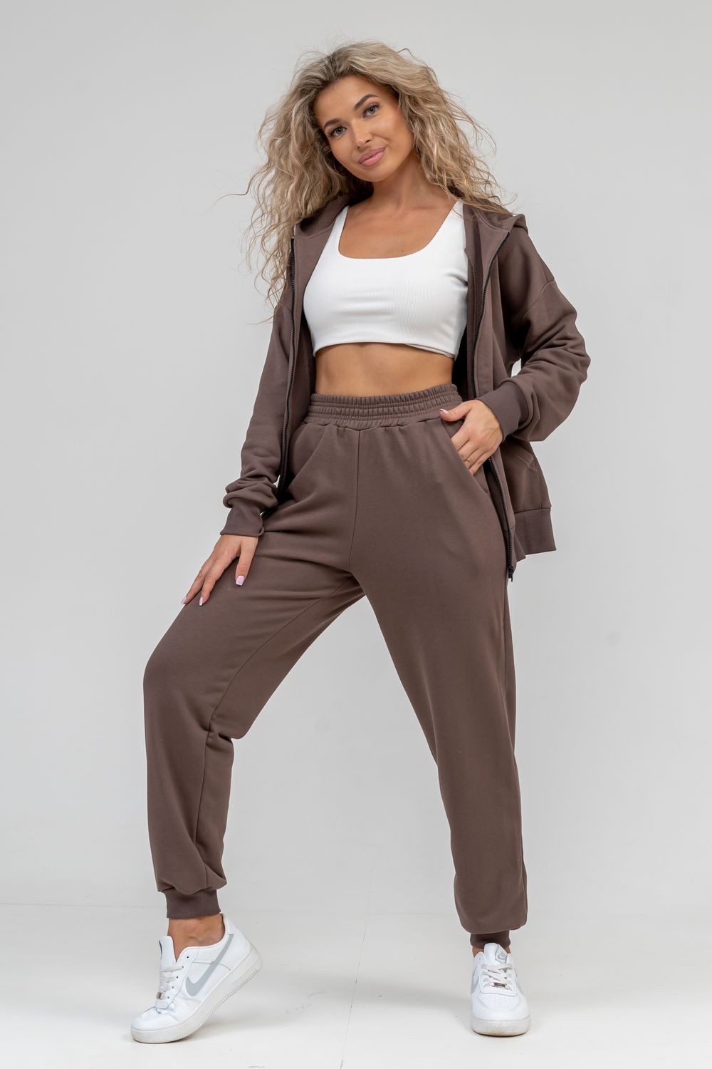 Модный женский костюм выполнен из качественного футера 3-нитки петли, который обладает необыкновенной мягкостью, натуральностью, гипоаллергенностью и формоустойчивостью (при правильном уходе и стирке 30-40 °С), и обеспечивает максимальное удобство и комфорт при носке. Костюм состоит из современной "zip hoodi" свободного силуэта, которую дополняет: рукав с актуальной сейчас спущенной линией плеча, удобные карманы кенгуру и манжеты. Молния выполнена из качественных пластиковых зубьев закрепленных на прочной тесьме, что обеспечивает плавное скольжение бегунка. А также удобные брюки, которые дополнены вместительными боковыми карманами, поясом выполненным на специализированной поясной машине и манжетами выполненными из качественного кашкорсе. Костюм двойка прекрасно подходит для вечерних и повседневных образов, для прогулок и занятий спортом, а также в качестве женского костюма для дома. Костюм такого плана не сковывает движения, поэтому идеально подойдёт для беременных и мам с детьми. Наши костюмы согреют Вас на прогулке и сделают комфортным путешествие. А большой и тёплый капюшон защитит Вас от непогоды.