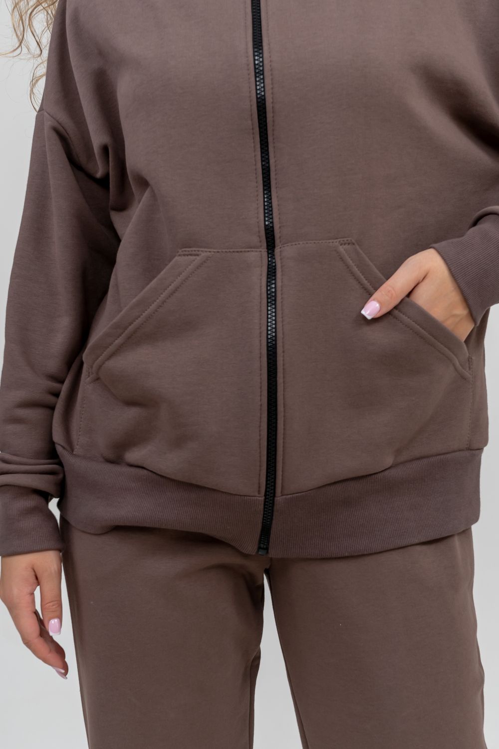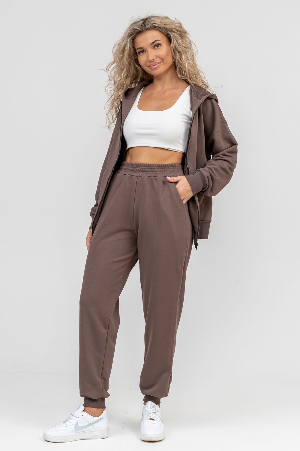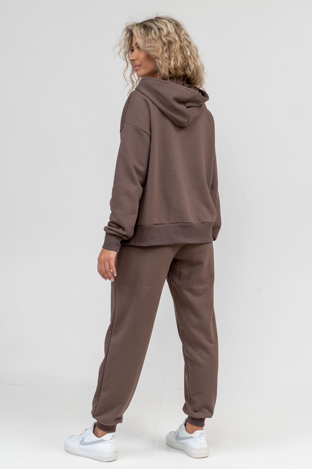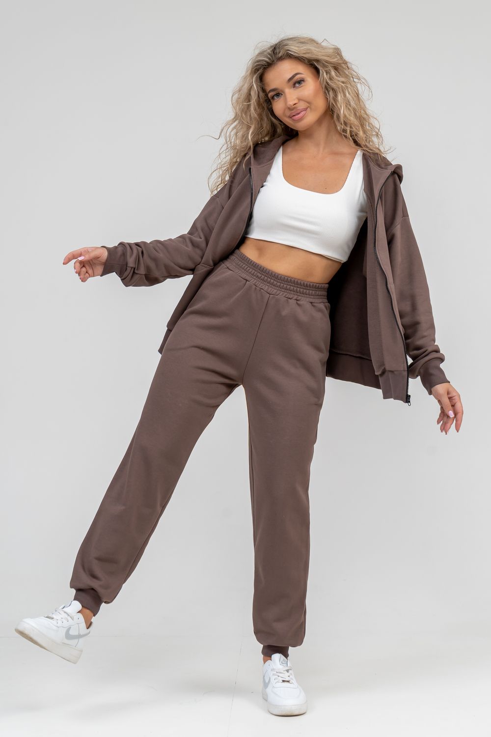 Модный женский костюм выполнен из качественного футера 3-нитки петли, который обладает необыкновенной мягкостью, натуральностью, гипоаллергенностью и формоустойчивостью (при правильном уходе и стирке 30-40 °С), и обеспечивает максимальное удобство и комфорт при носке. Костюм состоит из современной "zip hoodi" свободного силуэта, которую дополняет: рукав с актуальной сейчас спущенной линией плеча, удобные карманы кенгуру и манжеты. Молния выполнена из качественных пластиковых зубьев закрепленных на прочной тесьме, что обеспечивает плавное скольжение бегунка. А также удобные брюки, которые дополнены вместительными боковыми карманами, поясом выполненным на специализированной поясной машине и манжетами выполненными из качественного кашкорсе. Костюм двойка прекрасно подходит для вечерних и повседневных образов, для прогулок и занятий спортом, а также в качестве женского костюма для дома. Костюм такого плана не сковывает движения, поэтому идеально подойдёт для беременных и мам с детьми. Наши костюмы согреют Вас на прогулке и сделают комфортным путешествие. А большой и тёплый капюшон защитит Вас от непогоды.
