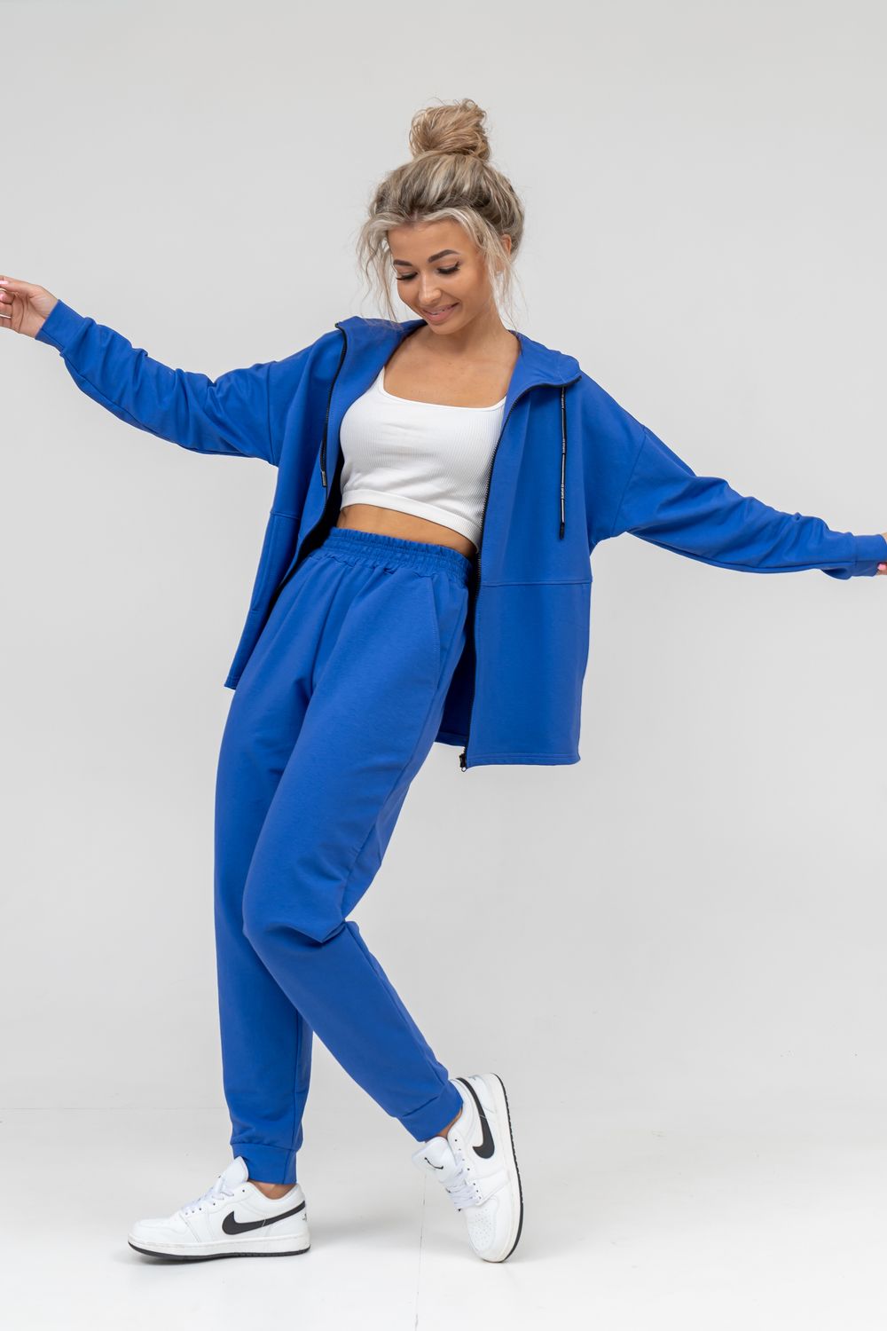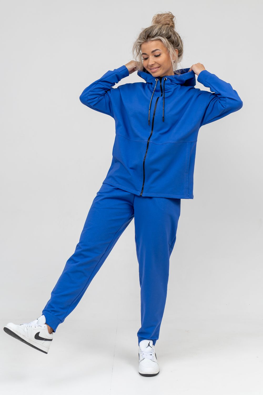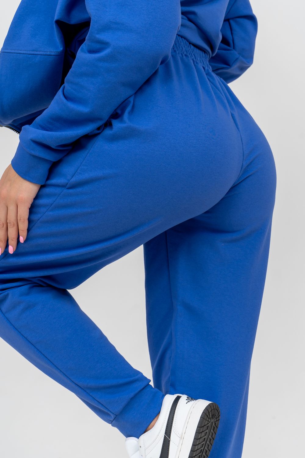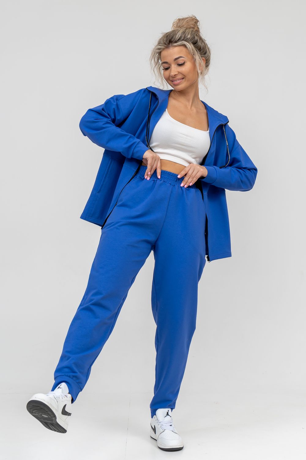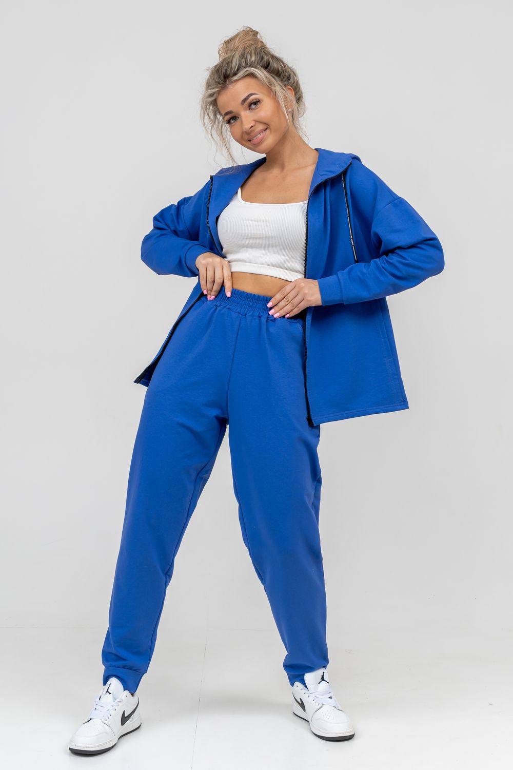 Женский костюм выполнен из футера 2-х нитки высокого качества с хлопком и небольшим добавлением полиэстера и лайкры, что позволяет изделию не скатываться и оставлять идеальный внешний вид на долгое время. Костюм состоит из толстовки и брюк. Толстовка прямая, на молнии, с двойным капюшоном - стойкой и двумя накладными вместительными карманами. Манжеты брюк и толстовки выполнены из основного материала, а пояс на специализированной поясной машине, что делает швы крепкими, ровными и качественными. Костюм такого плана представлен в широкой размерной сетке, что позволяет выбрать его как девушке, так и женщине. Однотонный костюм модных расцветок будет удачным выбором для поездок в отпуск, на пикник, для школы, для активного отдыха и прогулок по городу. Костюм с брюками - это настоящая находка для тех, кто ценит свою индивидуальность.