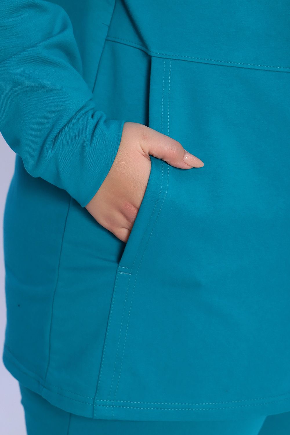Женский костюм выполнен из футера 2-х нитки высокого качества с хлопком и небольшим добавлением полиэстера и лайкры, что позволяет изделию не скатываться и оставлять идеальный внешний вид на долгое время. Костюм состоит из толстовки и брюк. Толстовка прямая, на молнии, с двойным капюшоном - стойкой и двумя накладными вместительными карманами. Манжеты толстовки из основного материала. Брюки прямые, а пояс выполнен на специализированной поясной машине, что делает швы крепкими, ровными и качественными. Костюм такого плана представлен в широкой размерной сетке, что позволяет выбрать его как девушкам, так и женщинам корпулентных форм. Однотонный костюм модных расцветок будет удачным выбором для поездок в отпуск, на пикник, для активного отдыха и прогулок по городу. Костюм с брюками - это настоящая находка для тех, кто ценит свою индивидуальность, удобство и комфорт.