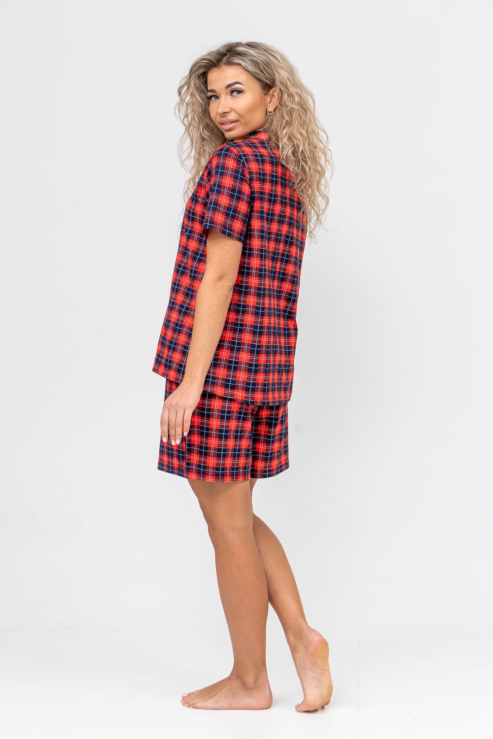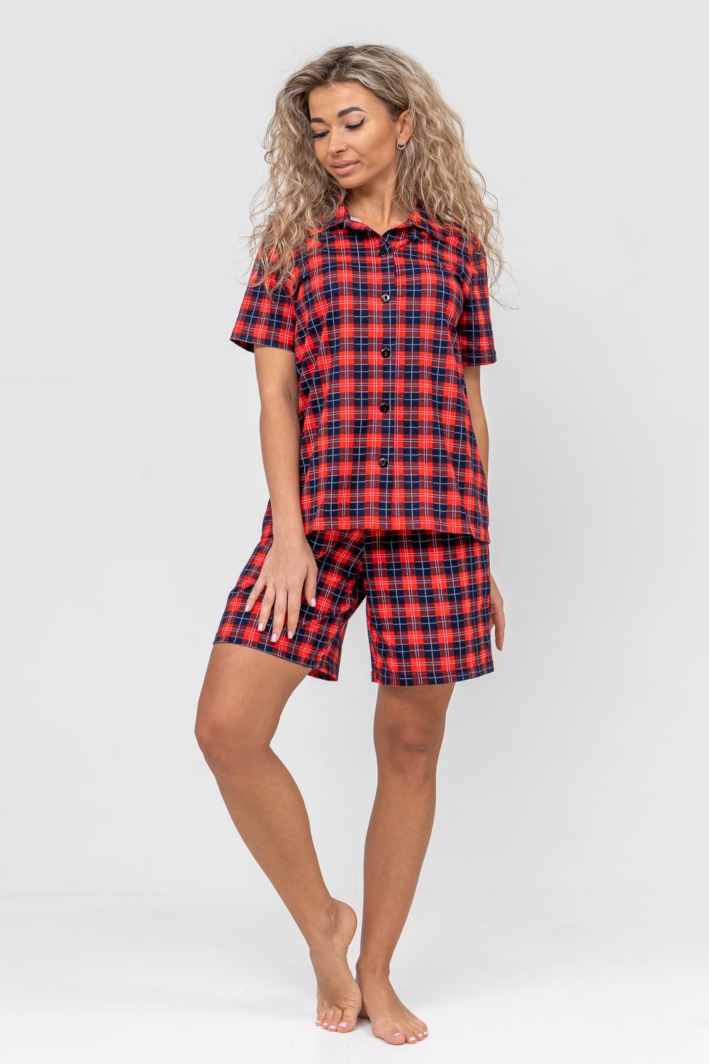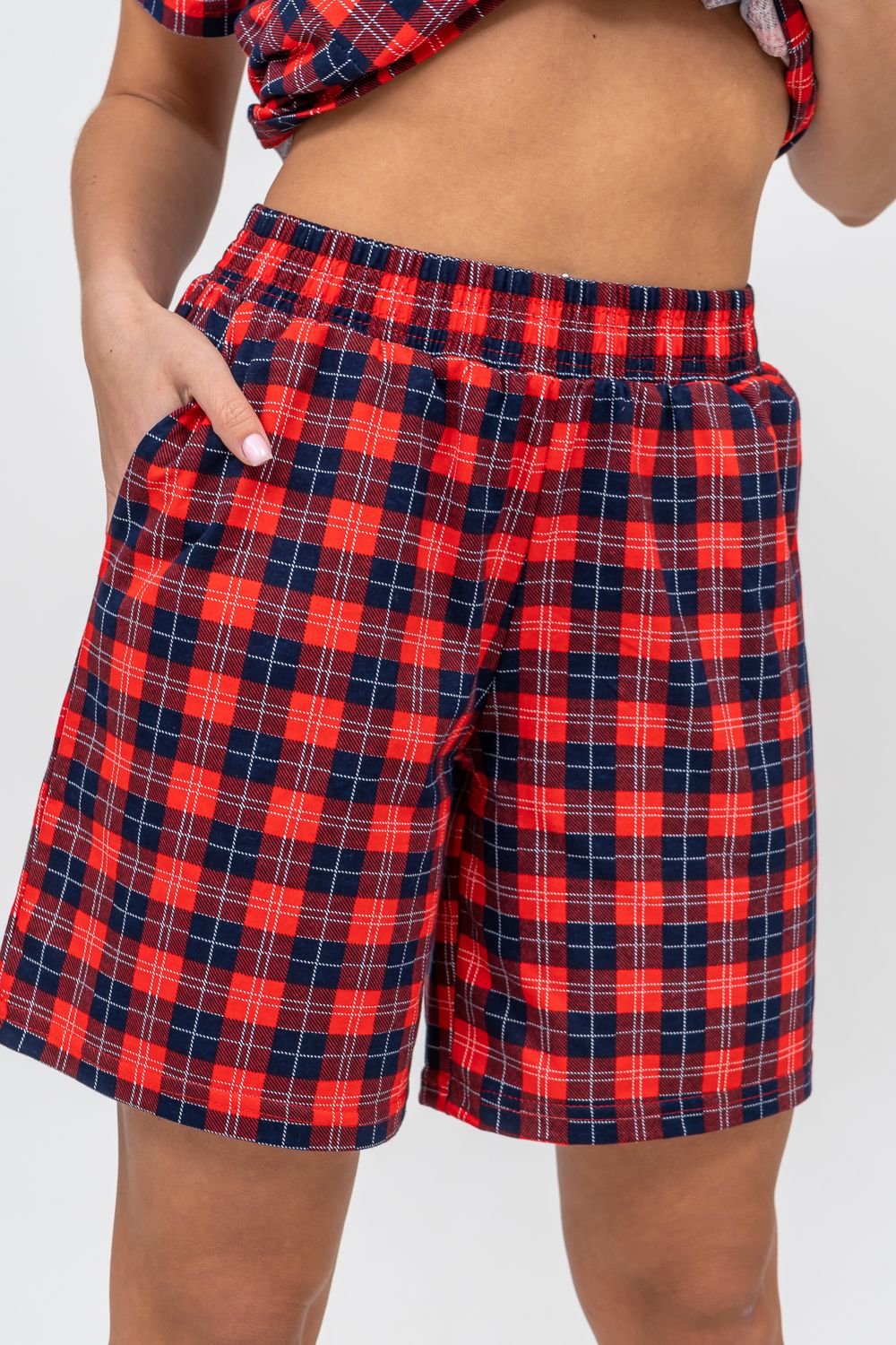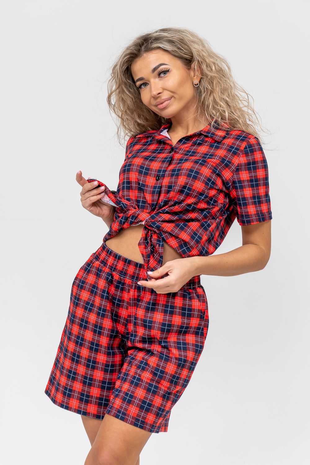 Женский костюм в клетку - это идеальная одежда свободного покроя для дома. Состоит из 100% хлопка, не скатывается и сохраняет форму и цвет после множества стирок. Наш модный костюм с шортами отлично подходит как для повседневной носки, фотосессии, так и для сна. Набор - двойка выполнен из верха рубашечного плана с воротником и планкой на пуговицах и свободных шорт на резинке с двумя вместительными боковыми карманами. Лето, Весна, Осень, Зима - каждый день будет окутан уютом. Удобный трикотажный костюм предоставит вам молодежный стильный вид. Также данный костюм с шортами подойдет и для беременных на ранних сроках. Комплект будет хорошо смотреться на высоких красавицах и миниатюрных дамах. Эта одежда подчеркнёт женскую привлекательность — она будет вызывать приятные тактильные ощущения. Вам не захочется её снимать и после сна вы с удовольствием в костюмчике будете готовить завтрак своим домочадцам, заниматься домашней работой, с удовольствием будете смотреть телевизор или читать книгу. Костюм в клетку станет частью комплекта одежды для отдыха. Он вам потребуется в отпуске, за городом, на даче или на морском отдыхе. Вы будете прекрасны в любой ситуации и чувствовать себя легко и уверенно. А так же Вы сможете подобрать и сделать отличный подарок любимой женщине, девушке, дочке-подростку, маме, бабушке и самой себе. На любой праздник: на Новый Год, Рождество, 8 марта, День Святого Валентина, День Матери, День Рождения. И будьте уверены, что он станет вашим любимым элементом гардероба!
