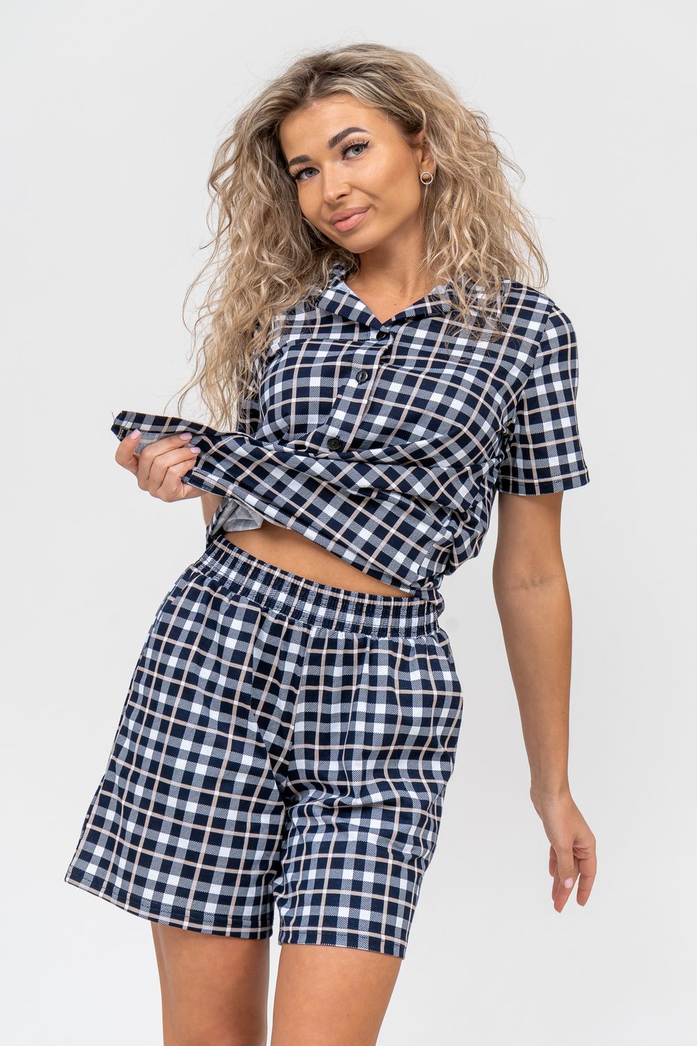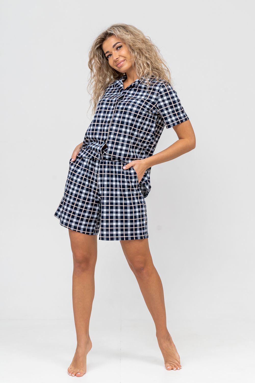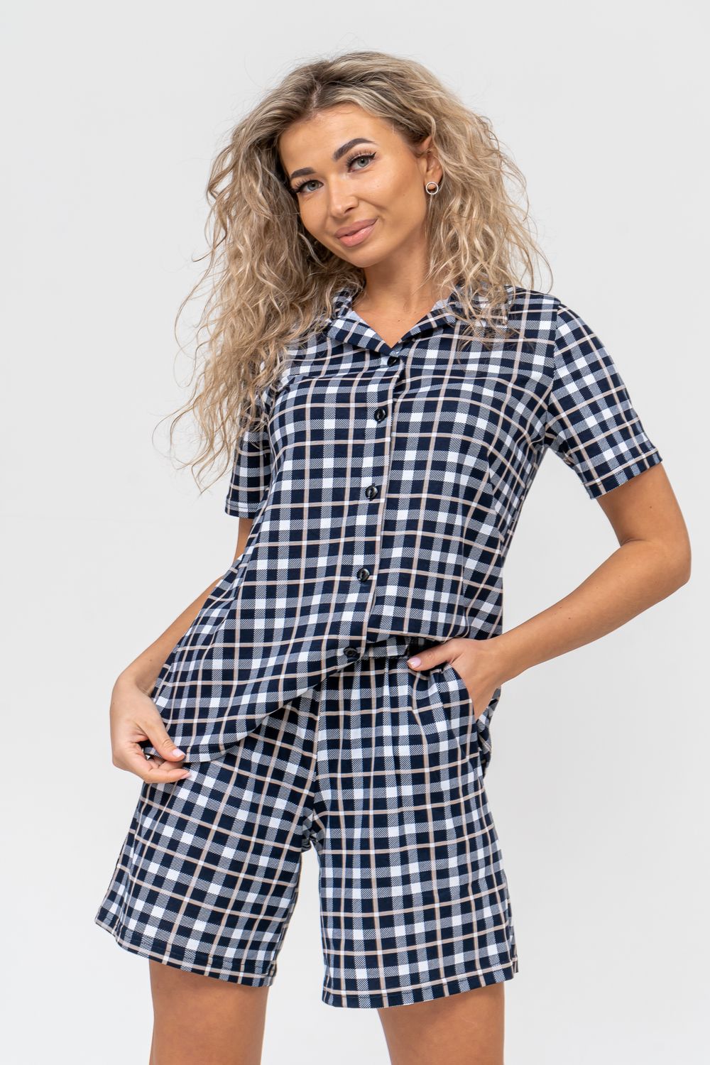 Женский костюм в клетку - это идеальная одежда свободного покроя для дома. Состоит из 100% хлопка, не скатывается и сохраняет форму и цвет после множества стирок. Наш модный костюм с шортами отлично подходит как для повседневной носки, фотосессии, так и для сна. Набор - двойка выполнен из верха рубашечного плана с воротником и планкой на пуговицах и свободных шорт на резинке с двумя вместительными боковыми карманами. Лето, Весна, Осень, Зима - каждый день будет окутан уютом. Удобный трикотажный костюм предоставит вам молодежный стильный вид. Также данный костюм с шортами подойдет и для беременных на ранних сроках. Комплект будет хорошо смотреться на высоких красавицах и миниатюрных дамах. Эта одежда подчеркнёт женскую привлекательность — она будет вызывать приятные тактильные ощущения. Вам не захочется её снимать и после сна вы с удовольствием в костюмчике будете готовить завтрак своим домочадцам, заниматься домашней работой, с удовольствием будете смотреть телевизор или читать книгу. Костюм в клетку станет частью комплекта одежды для отдыха. Он вам потребуется в отпуске, за городом, на даче или на морском отдыхе. Вы будете прекрасны в любой ситуации и чувствовать себя легко и уверенно. А так же Вы сможете подобрать и сделать отличный подарок любимой женщине, девушке, дочке-подростку, маме, бабушке и самой себе. На любой праздник: на Новый Год, Рождество, 8 марта, День Святого Валентина, День Матери, День Рождения. И будьте уверены, что он станет вашим любимым элементом гардероба!