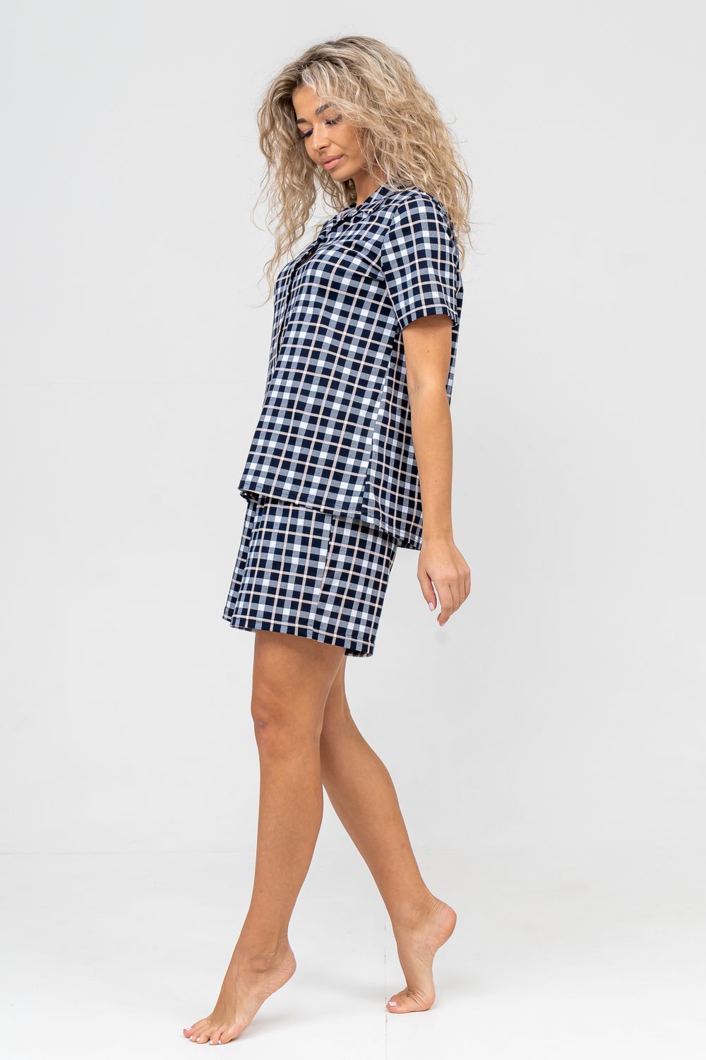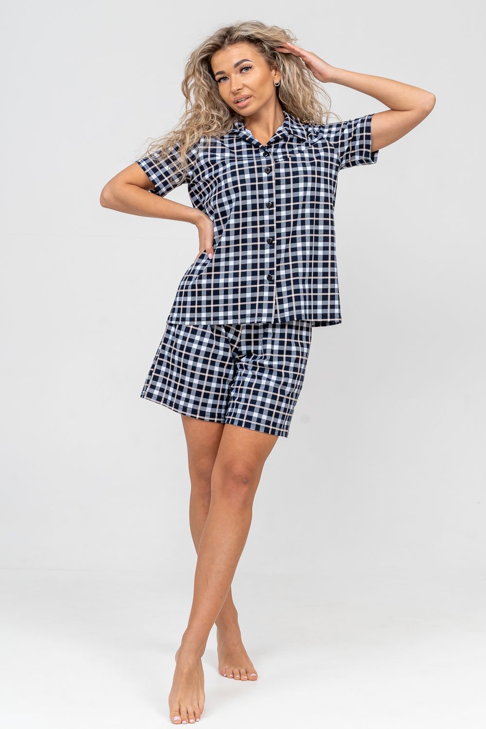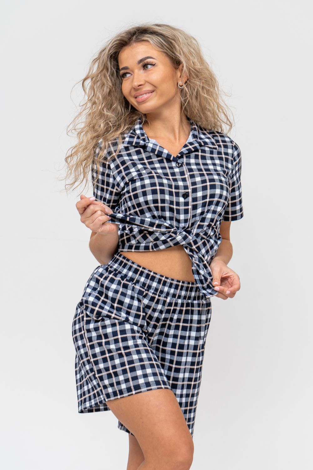 Женский костюм в клетку - это идеальная одежда свободного покроя для дома. Состоит из 100% хлопка, не скатывается и сохраняет форму и цвет после множества стирок. Наш модный костюм с шортами отлично подходит как для повседневной носки, фотосессии, так и для сна. Набор - двойка выполнен из верха рубашечного плана с воротником и планкой на пуговицах и свободных шорт на резинке с двумя вместительными боковыми карманами. Лето, Весна, Осень, Зима - каждый день будет окутан уютом. Удобный трикотажный костюм предоставит вам молодежный стильный вид. Также данный костюм с шортами подойдет и для беременных на ранних сроках. Комплект будет хорошо смотреться на высоких красавицах и миниатюрных дамах. Эта одежда подчеркнёт женскую привлекательность — она будет вызывать приятные тактильные ощущения. Вам не захочется её снимать и после сна вы с удовольствием в костюмчике будете готовить завтрак своим домочадцам, заниматься домашней работой, с удовольствием будете смотреть телевизор или читать книгу. Костюм в клетку станет частью комплекта одежды для отдыха. Он вам потребуется в отпуске, за городом, на даче или на морском отдыхе. Вы будете прекрасны в любой ситуации и чувствовать себя легко и уверенно. А так же Вы сможете подобрать и сделать отличный подарок любимой женщине, девушке, дочке-подростку, маме, бабушке и самой себе. На любой праздник: на Новый Год, Рождество, 8 марта, День Святого Валентина, День Матери, День Рождения. И будьте уверены, что он станет вашим любимым элементом гардероба!