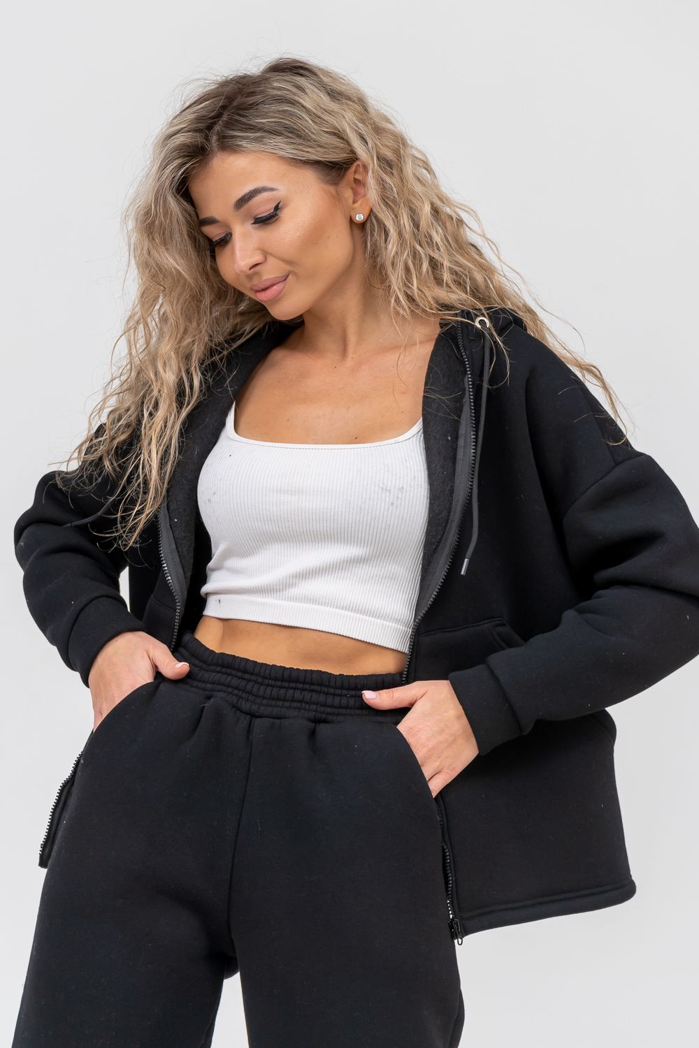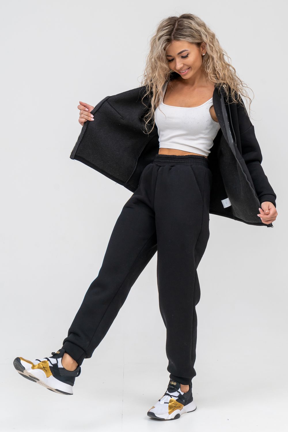 Модный женский костюм выполнен из качественного футера 3-нитки с начёсом, который обладает необыкновенной мягкостью, натуральностью, гипоаллергенностью и формоустойчивостью (при правильном уходе и стирке 30-40 °С), и обеспечивает максимальное удобство и комфорт при носке. Костюм состоит из современной "zip hoodi" свободного силуэта, которую дополняет: рукав с актуальной сейчас спущенной линией плеча, удобные карманы кенгуру и манжеты из основной ткани. Молния выполнена из качественных пластиковых зубьев закрепленных на прочной тесьме, что обеспечивает плавное скольжение бегунка. А также удобные брюки, которые дополнены вместительными боковыми карманами, манжетами и поясом выполненным на специализированной поясной машине. Длина рукава указана от точки основания шеи.