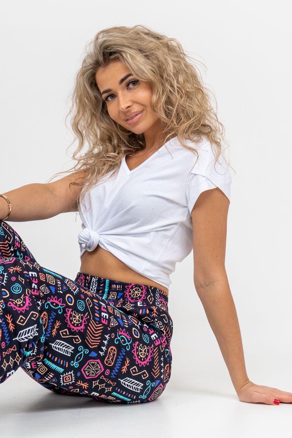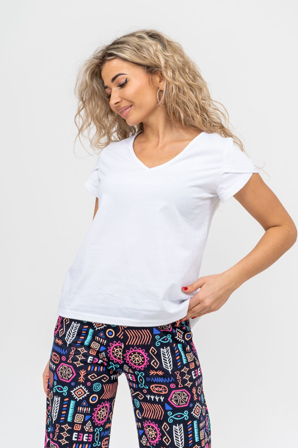 Женский стильный костюм состоит из футболки и брюк. Футболка выполнена из приятного к телу хлопчатобумажного полотна. V - образный вырез горловины и рукав с двойным крылышком идеально смотрится с брюками завышенной линии талии. Брюки - трубы в свою очередь выполнены из дышащего 100% хлопчатобумажного полотна. А вместительные боковые карманы, удобный и качественно обработанный на специальной машине пояс, позволит Вам чувствовать себя комфортно и уверенно. Костюм такого плана скроет все недостатки и подчеркнёт стройность, привлекательность и женственность фигуры. Брюки от костюма Вы можете приобрести отдельно - модель 36692, так же как и футболку - модель 36693.