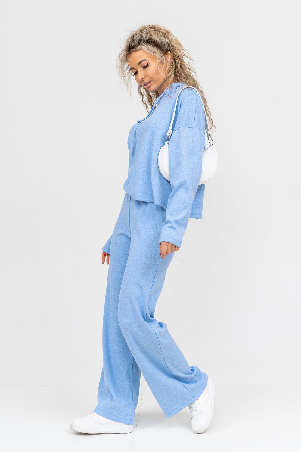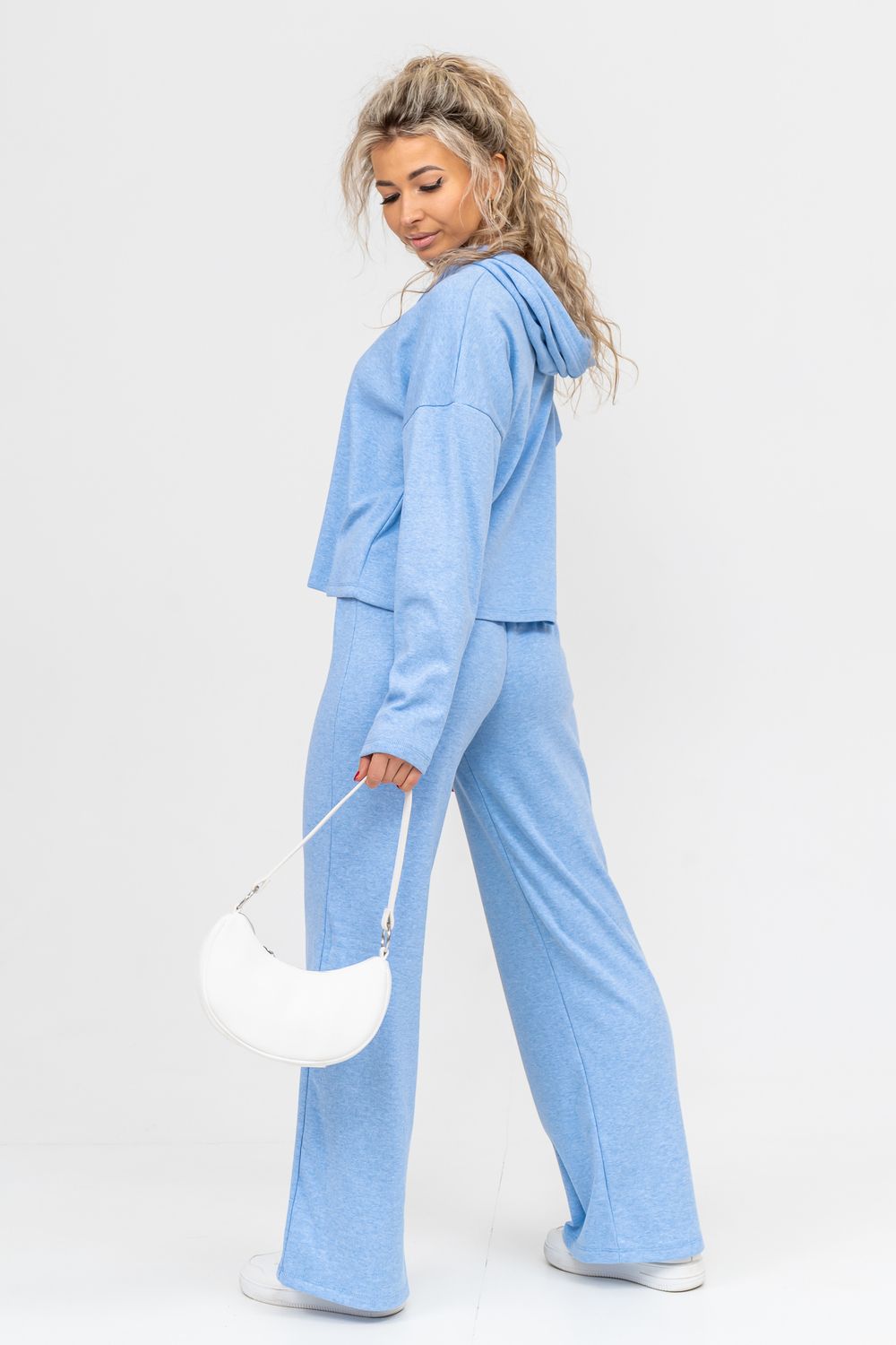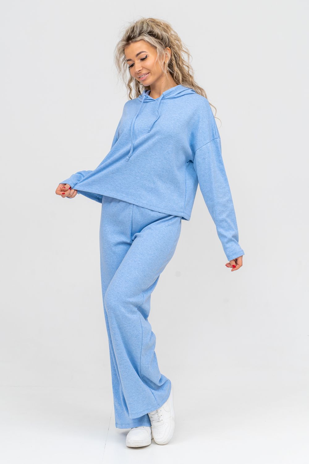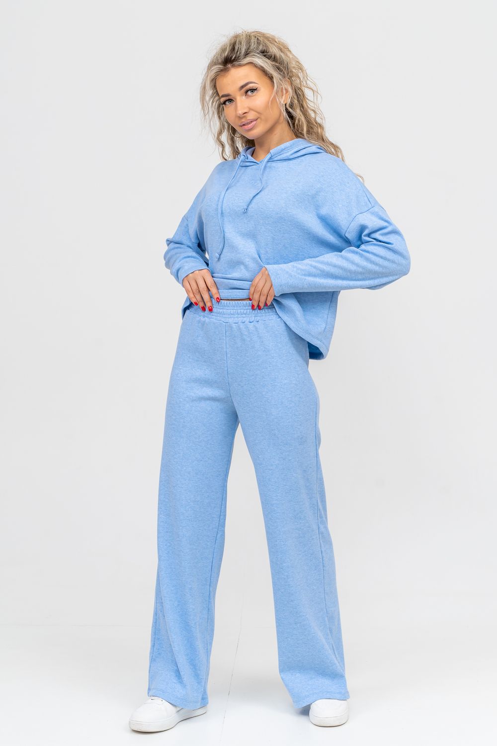 Стильный костюм выполнен из кашкорсе с начёсом. Ткань гладкая с лица и ворсистая с начёсом с изнанки, неприхотлива в уходе и приятная на ощупь. Благодаря особой мягкости, комфортности при носке, дышащей структуре полотна, эта разновидность французского трикотажа широко распространилась по миру. Материал гигроскопичен, поэтому хорошо держит тепло и позволяет телу дышать. Широкие брюки в стиле палаццо - это находка этого сезона. Пояс брюк выполнен на специализированной поясной машине, что делает его максимально качественным. Толстовка свободная, с капюшоном, спущенной линией плеча и слегка удлинённым рукавом. Всё это делает мягкий приятный к телу костюм по настоящему любимым! Костюм можно надевать дома, в качестве повседневной одежды, на работу, в поездку или деловую встречу. Свободный прямой крой свитшота и брюк хорошо скрывает несовершенства, подчеркивает достоинства фигуры и изящный силуэт. Толстовку и брюки можно носить как вместе, так и отдельно. Однотонный дизайн без принта, надписей и декоративных элементов будет гармонировать с любым стилем одежды. Свитшот с длинным рукавом, спущенным плечом можно легко сочетать с джинсами и юбками. Длина рукава указана от точки основания шеи. К брюкам свободной формы можно подобрать абсолютно любой верх. Дополнить образ можно любимыми аксессуарами и украшениями. Стильный, модный брючный костюм, спортивный женский теплый, могут носить девочки - подростки, взрослые и беременные женщины. Так же костюм можно взять для отдыха и йоги, взять с собой в отпуск или в путешествие. Комплект из свитшота и свободных брюк станет удобной прогулочной одеждой на любой сезон. Желаем Вам прекрасного настроения и приятных покупок!