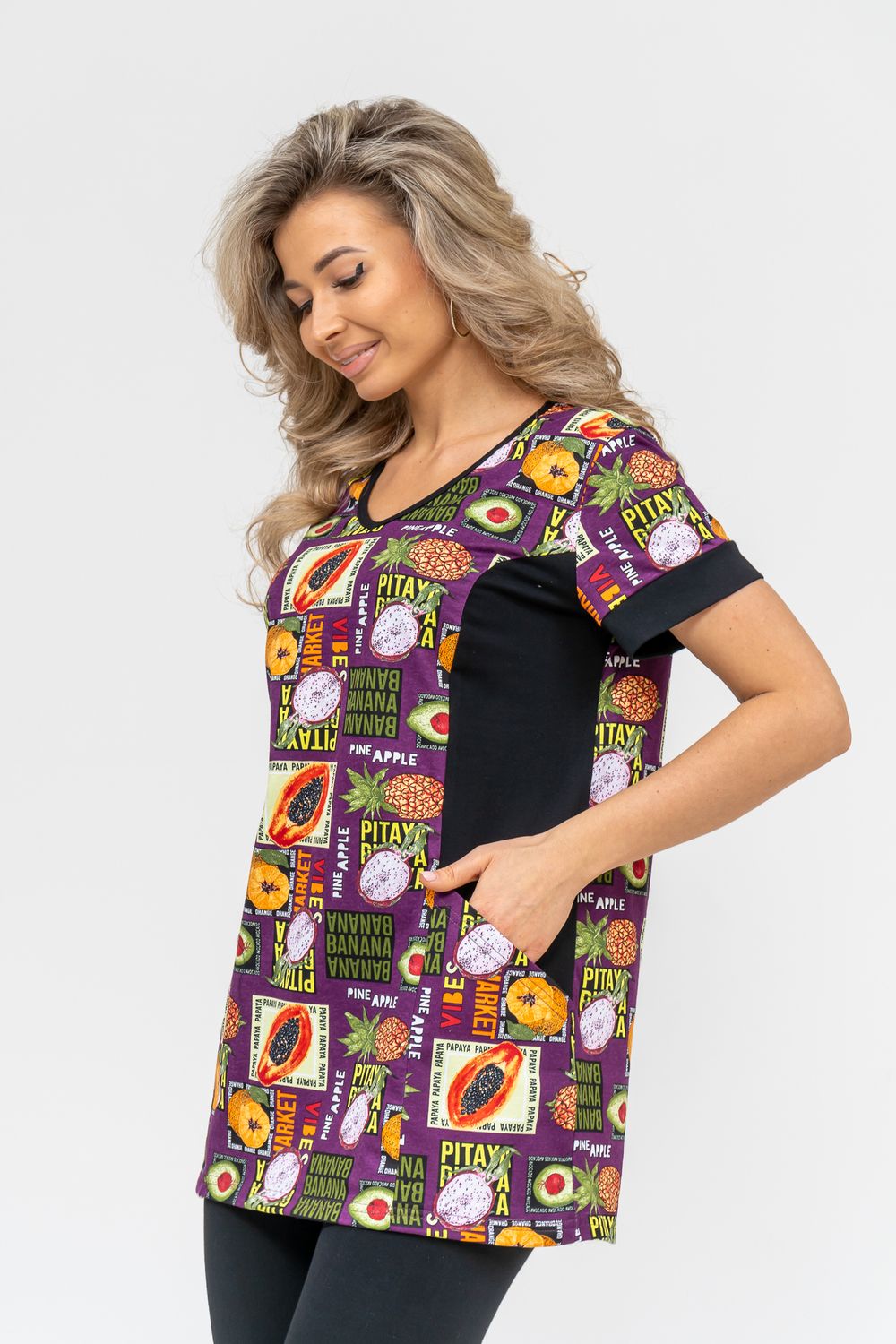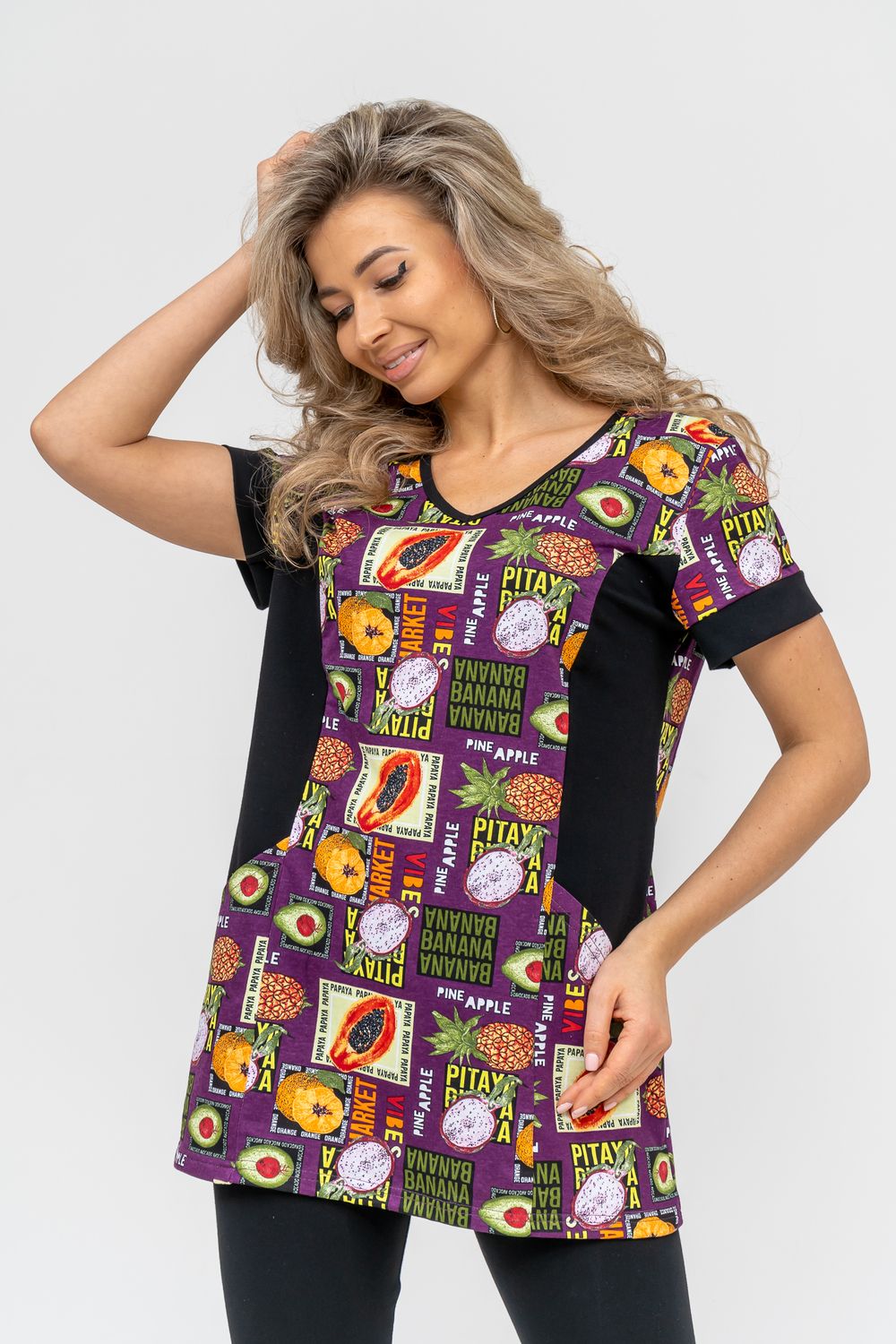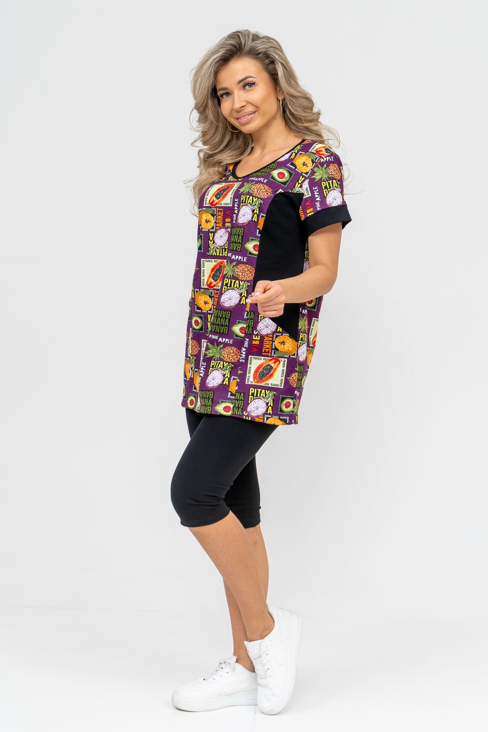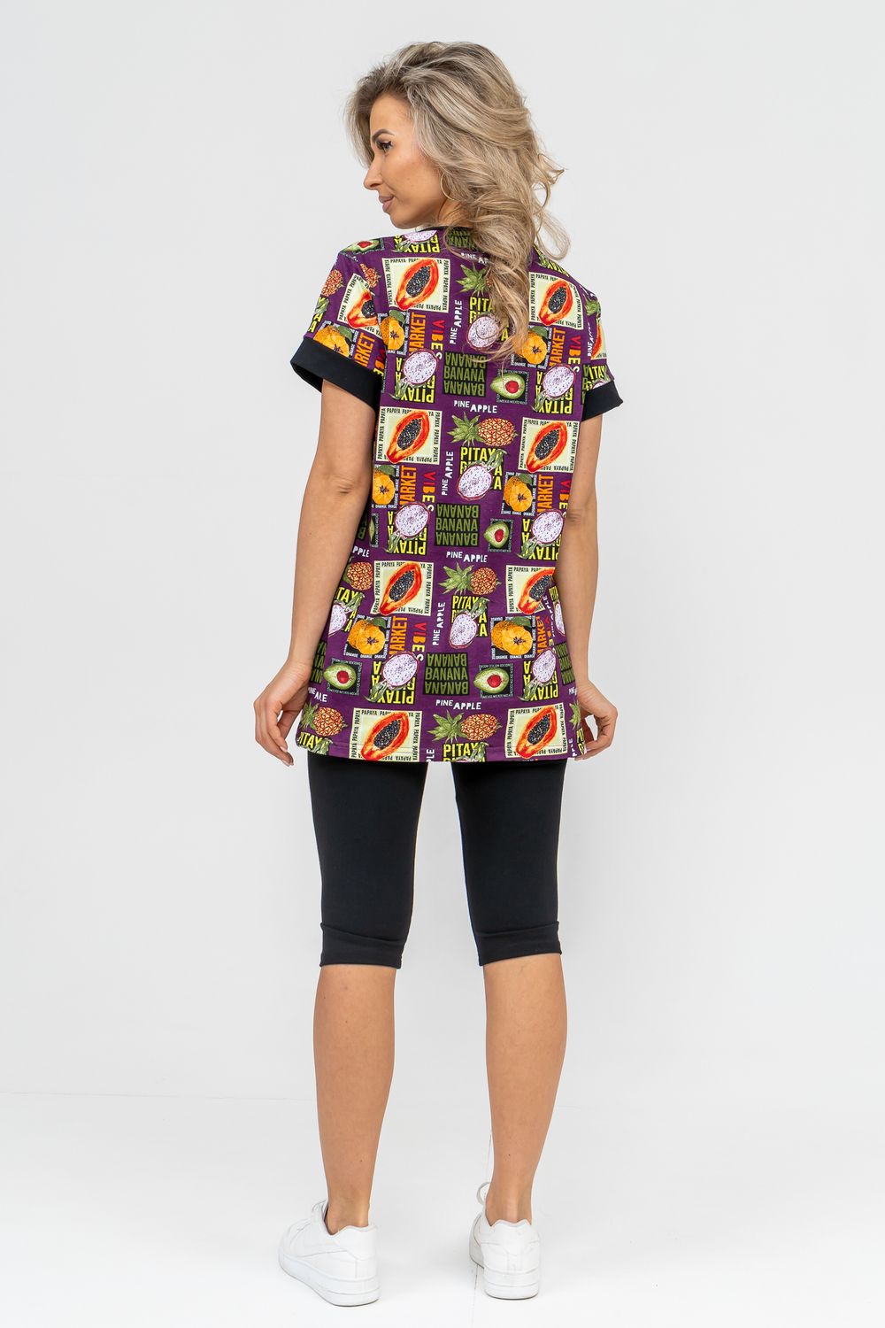 Женский костюм полуприлегающего силуэта состоит из туники и бриджей. 100% дышащий хлопок туники и эластичная вискоза бриджей несут в себе удобство при носке, гигроскопичность и износостойкость. V-образный вырез горловины придаёт изделию женственный вид. Для удобства туника имеет вместительные накладные карманы и втачные рукава с манжетами. Рельефы на полочке изделия создают идеальную посадку и безупречный внешний вид. Бриджи на резинке с высокой посадкой. В костюме такого плана Вы будете чувствовать себя комфортно как дома, так и на любимой даче. Эта двойка идеально подойдет для летнего отдыха на даче, на море или просто для девушек, которые хотят чувствовать себя уютно и комфортно дома. Летний женский костюм подходит для поездок и путешествий, загородного отдыха на природе, а также для получения лечения в больнице или санатории. Повседневное хлопковое изделие с бриджами - отличная идея для подарка любимой жене, маме, сестре или подруге на день рождения, 8 Марта или по любому другому приятному поводу. Рекомендация: для того чтобы продлить яркую жизнь Вашему костюму для дома и отдыха из хлопка, стирку производить при температуре не выше 30 градусов, а во избежание деформации изделия не прибегать к ручному отжиму (не перекручивать), утюжить слегка недосушенное изделие утюгом на паровом режиме. Покупайте наши красивые и удобные домашние костюмы с бриджами и носите с удовольствием! Приятных покупок!