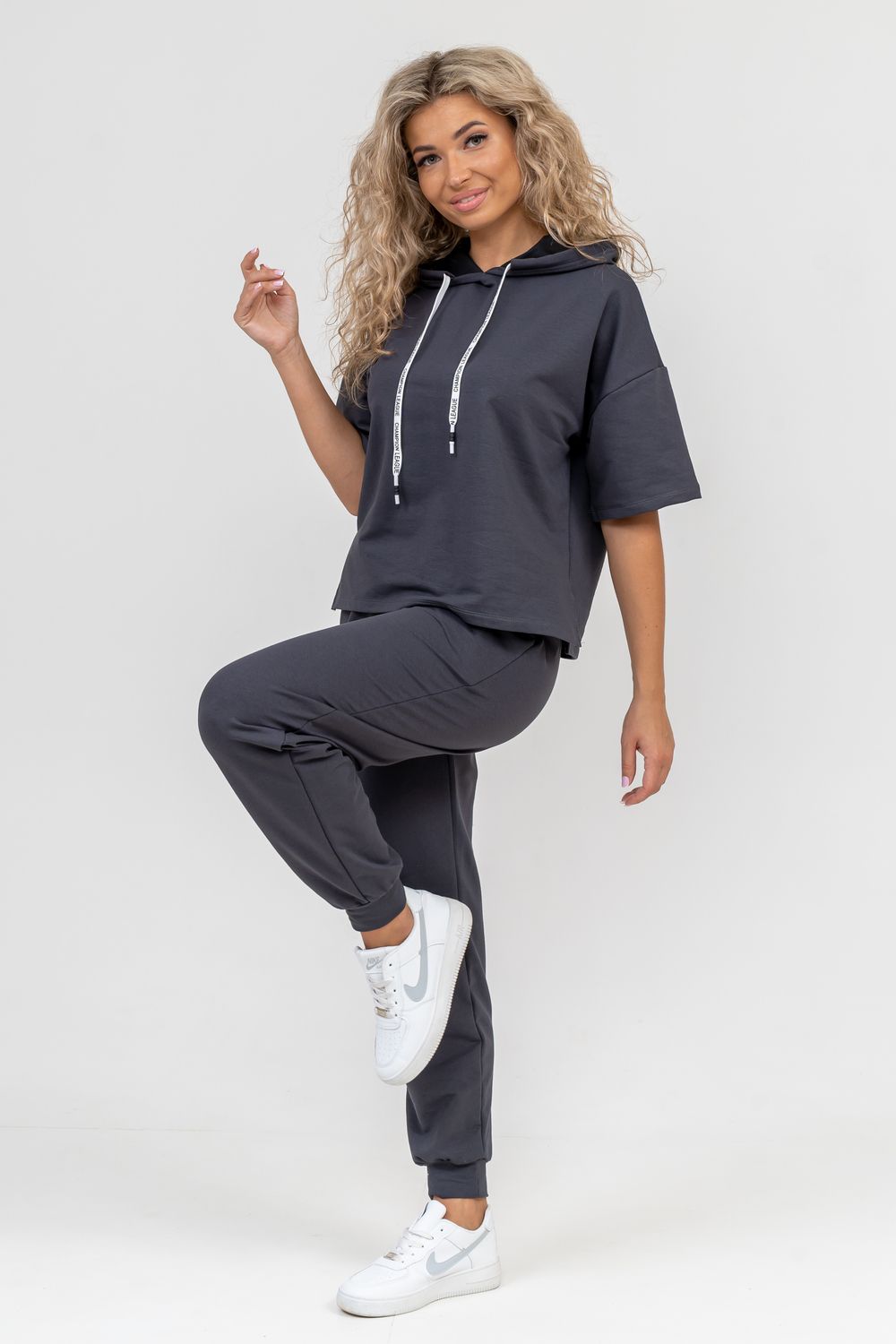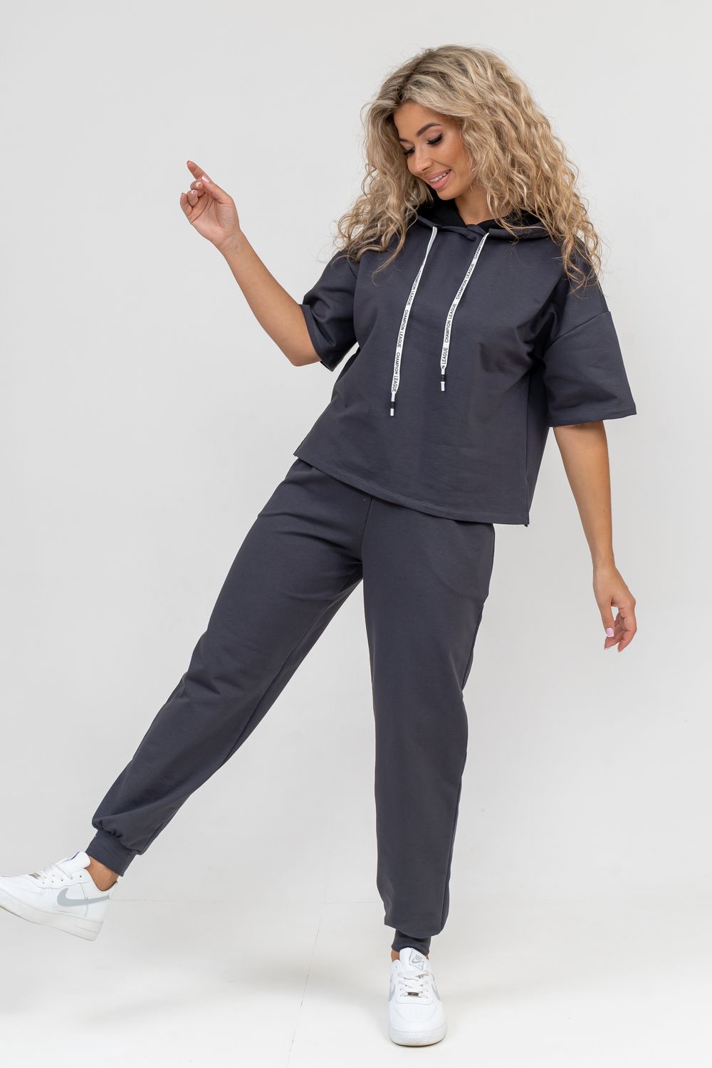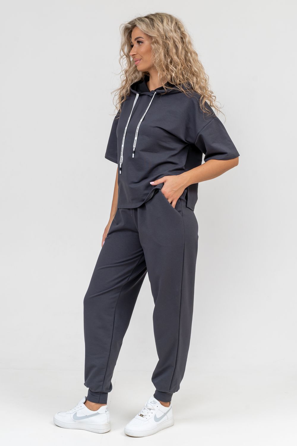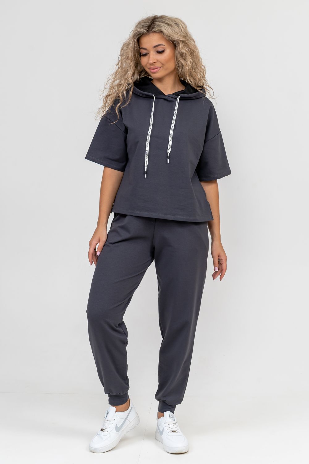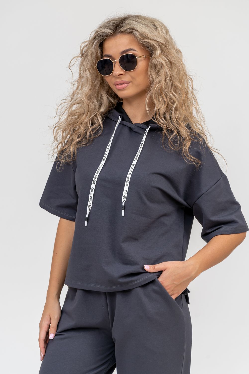 Женский костюм выполнен из футера высокого качества с хлопком и небольшим добавлением полиэстера и лайкры, что позволяет изделию не скатываться и оставлять идеальный внешний вид на долгое время. Костюм состоит из толстовки и брюк. Толстовка с капюшоном и шнурком. Линия плеча спущена, рукав укороченный, по бокам имеются небольшие разрезы. Брюки представлены с вместительными боковыми карманами. Манжеты брюк выполнены из основного материала, а пояс на специализированной поясной машине, что делает швы ровными и качественными. Свободный крой прекрасно будет смотреться на дамах с любыми формами. Костюм такого плана представлен в широкой размерной сетке, что позволяет выбрать его как девушке, так и женщине. Однотонный костюм модных расцветок будет удачным выбором для поездок в отпуск, на пикник, для школы, для активного отдыха и прогулок по городу. Будет гармонично сочетаться как с кроссовками, так и с туфлями, балетками или босоножками. Используя эту модель в качестве домашнего костюма, Вы поймёте, что это именно тот самый идеальный вариант, в котором будете себя чувствовать удобно, комфортно и современно. Костюм с брюками - это настоящая находка для тех, кто ценит свою индивидуальность! Фурнитура данного изделия (шнурок) может отличаться от фото!