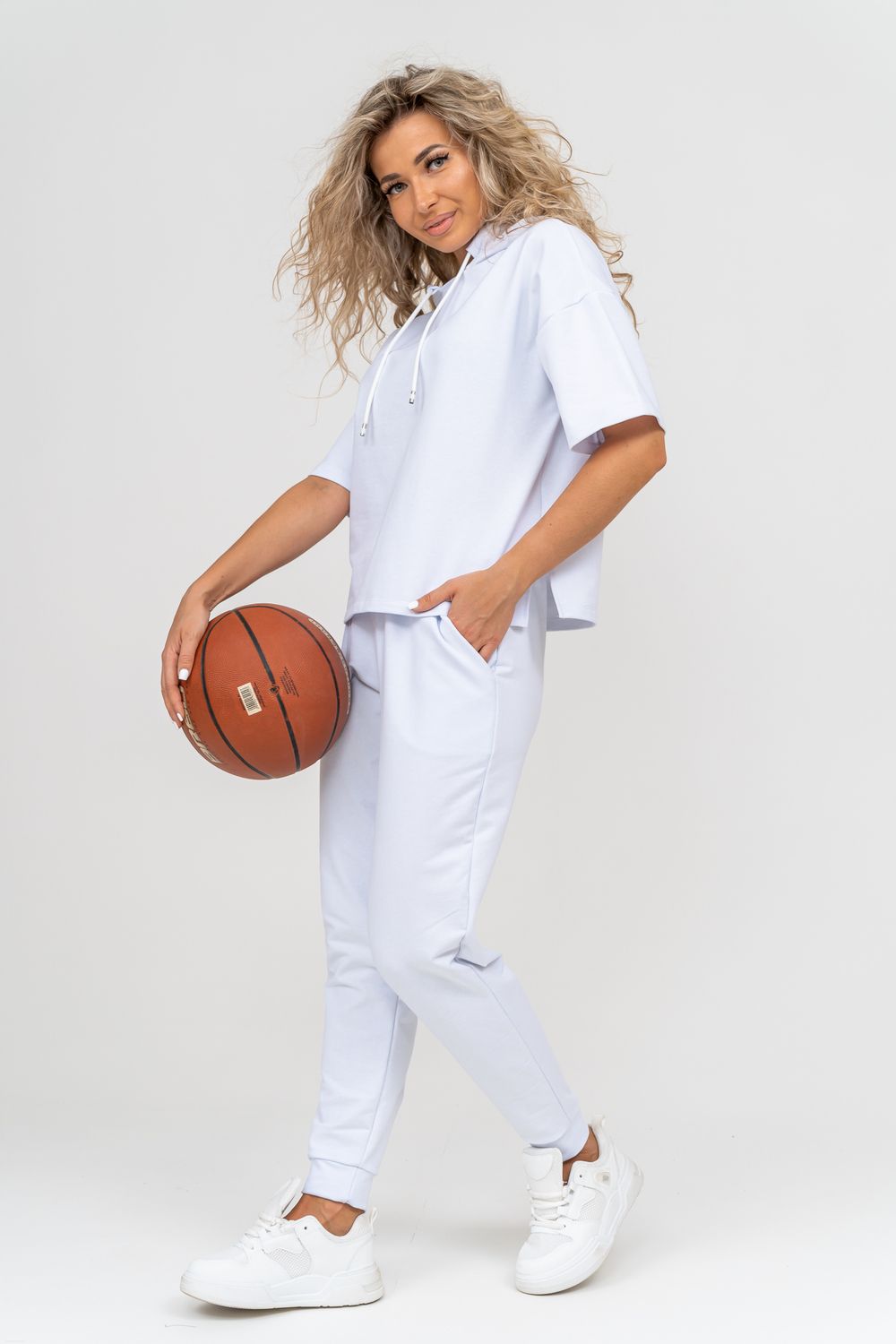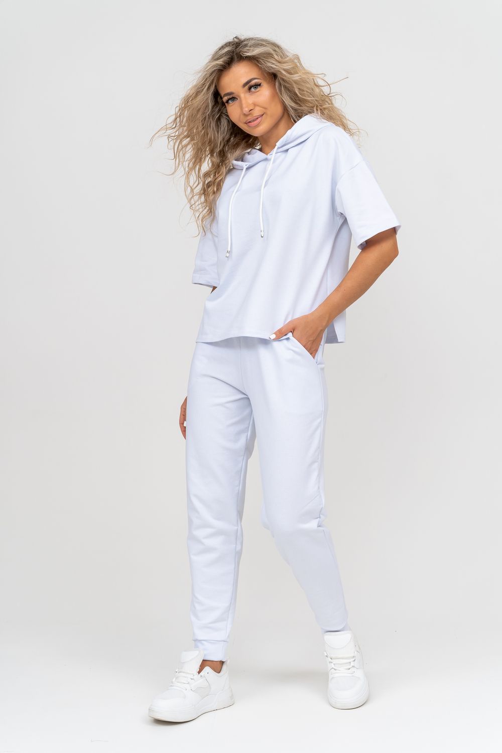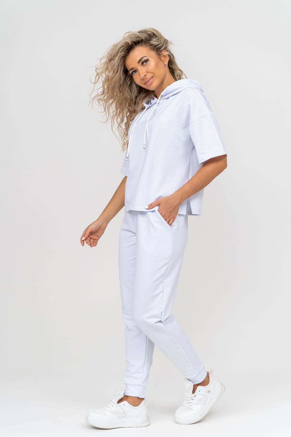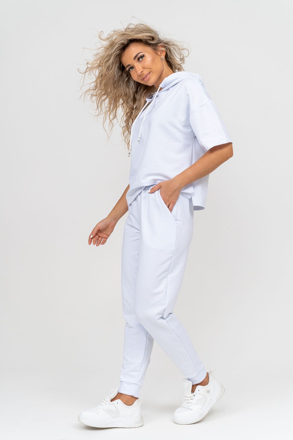 Женский костюм выполнен из футера высокого качества с хлопком и небольшим добавлением полиэстера и лайкры, что позволяет изделию не скатываться и оставлять идеальный внешний вид на долгое время. Костюм состоит из толстовки и брюк. Толстовка с капюшоном и шнурком. Линия плеча спущена, рукав укороченный, по бокам имеются небольшие разрезы. Брюки представлены с вместительными боковыми карманами. Манжеты брюк выполнены из основного материала, а пояс на специализированной поясной машине, что делает швы ровными и качественными. Свободный крой прекрасно будет смотреться на дамах с любыми формами. Костюм такого плана представлен в широкой размерной сетке, что позволяет выбрать его как девушке, так и женщине. Однотонный костюм модных расцветок будет удачным выбором для поездок в отпуск, на пикник, для школы, для активного отдыха и прогулок по городу. Будет гармонично сочетаться как с кроссовками, так и с туфлями, балетками или босоножками. Используя эту модель в качестве домашнего костюма, Вы поймёте, что это именно тот самый идеальный вариант, в котором будете себя чувствовать удобно, комфортно и современно. Костюм с брюками - это настоящая находка для тех, кто ценит свою индивидуальность!