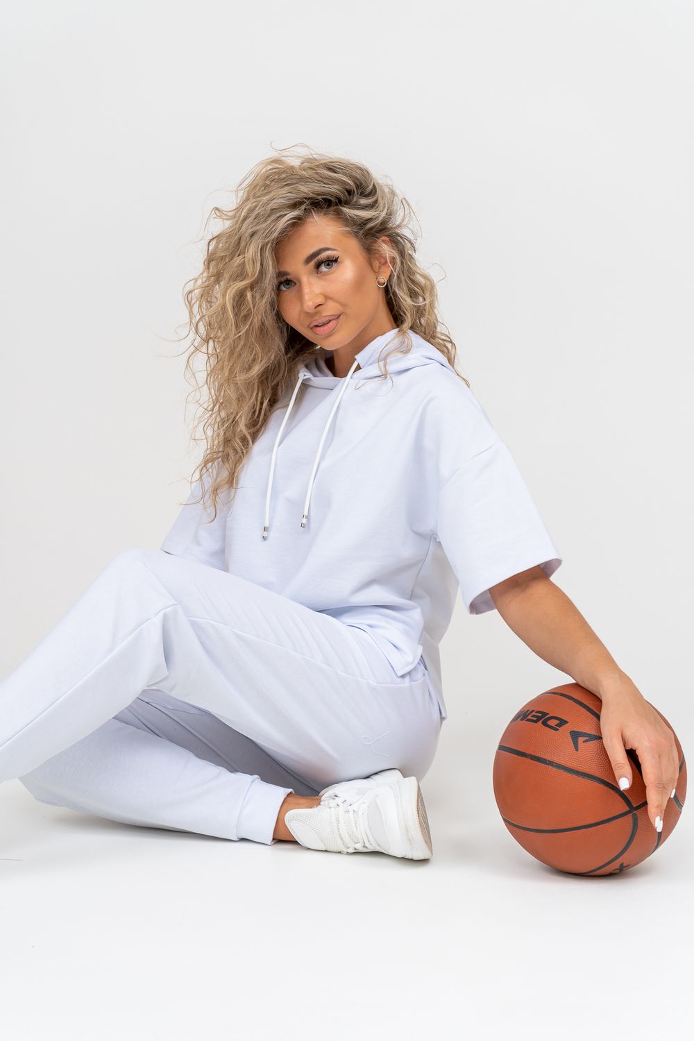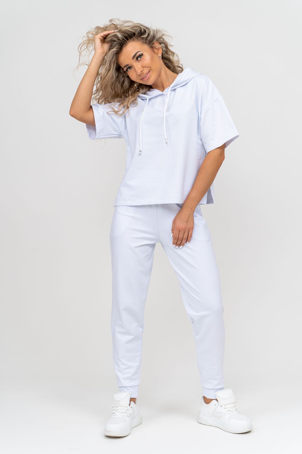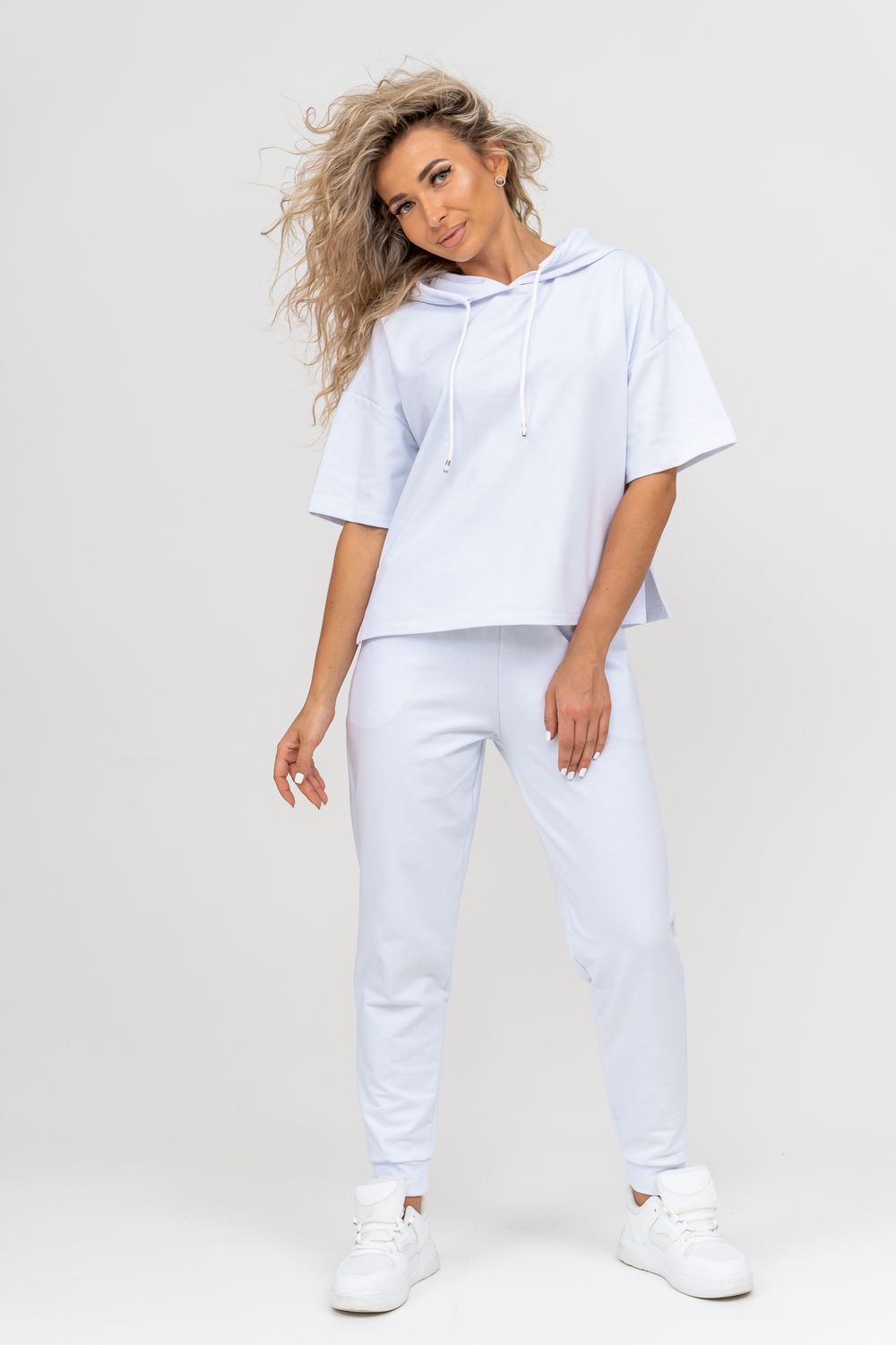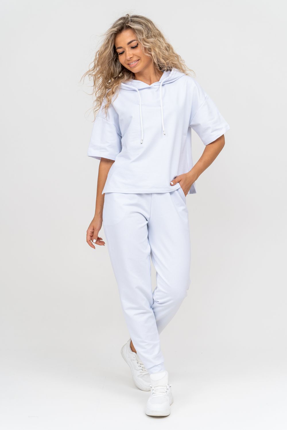 Женский костюм выполнен из футера высокого качества с хлопком и небольшим добавлением полиэстера и лайкры, что позволяет изделию не скатываться и оставлять идеальный внешний вид на долгое время. Костюм состоит из толстовки и брюк. Толстовка с капюшоном и шнурком. Линия плеча спущена, рукав укороченный, по бокам имеются небольшие разрезы. Брюки представлены с вместительными боковыми карманами. Манжеты брюк выполнены из основного материала, а пояс на специализированной поясной машине, что делает швы ровными и качественными. Свободный крой прекрасно будет смотреться на дамах с любыми формами. Костюм такого плана представлен в широкой размерной сетке, что позволяет выбрать его как девушке, так и женщине. Однотонный костюм модных расцветок будет удачным выбором для поездок в отпуск, на пикник, для школы, для активного отдыха и прогулок по городу. Будет гармонично сочетаться как с кроссовками, так и с туфлями, балетками или босоножками. Используя эту модель в качестве домашнего костюма, Вы поймёте, что это именно тот самый идеальный вариант, в котором будете себя чувствовать удобно, комфортно и современно. Костюм с брюками - это настоящая находка для тех, кто ценит свою индивидуальность!