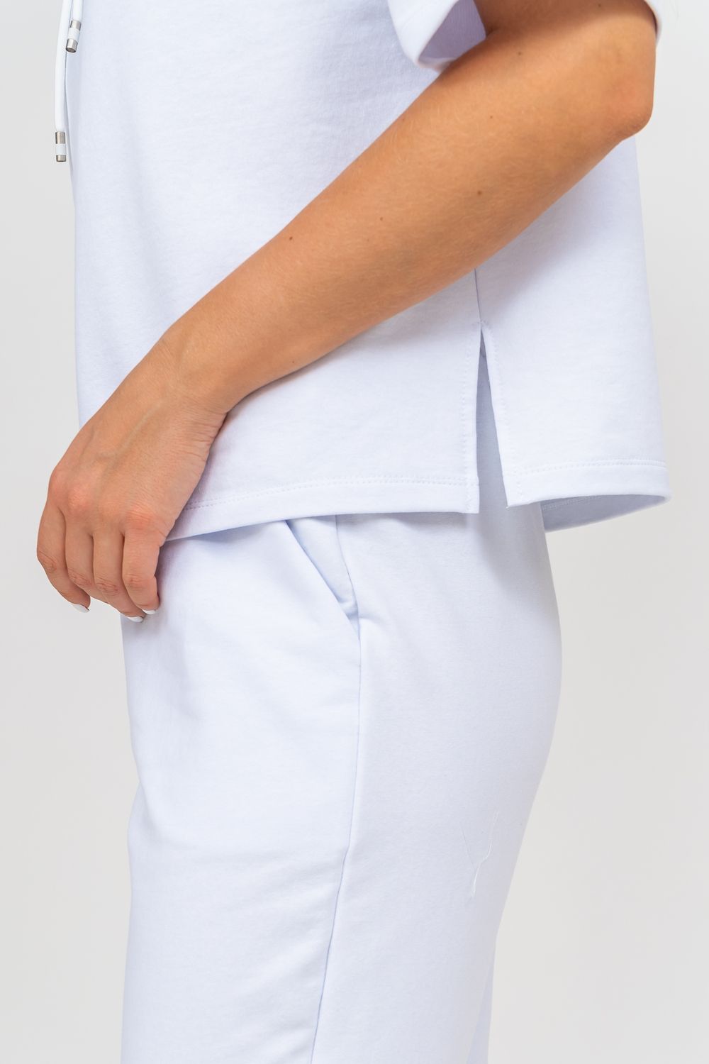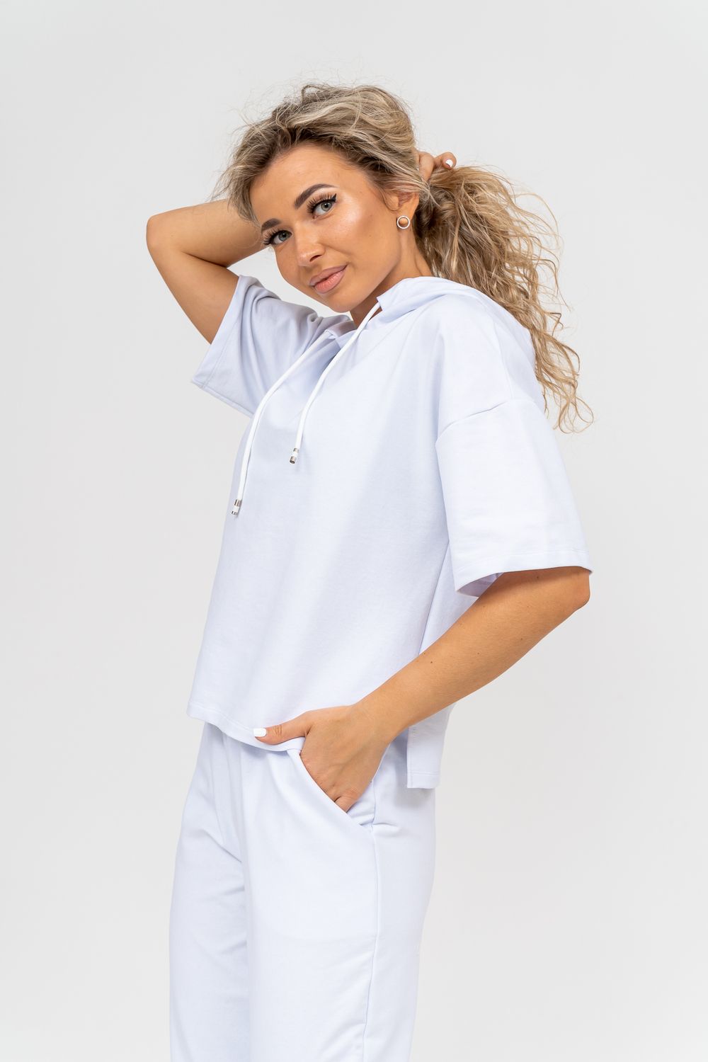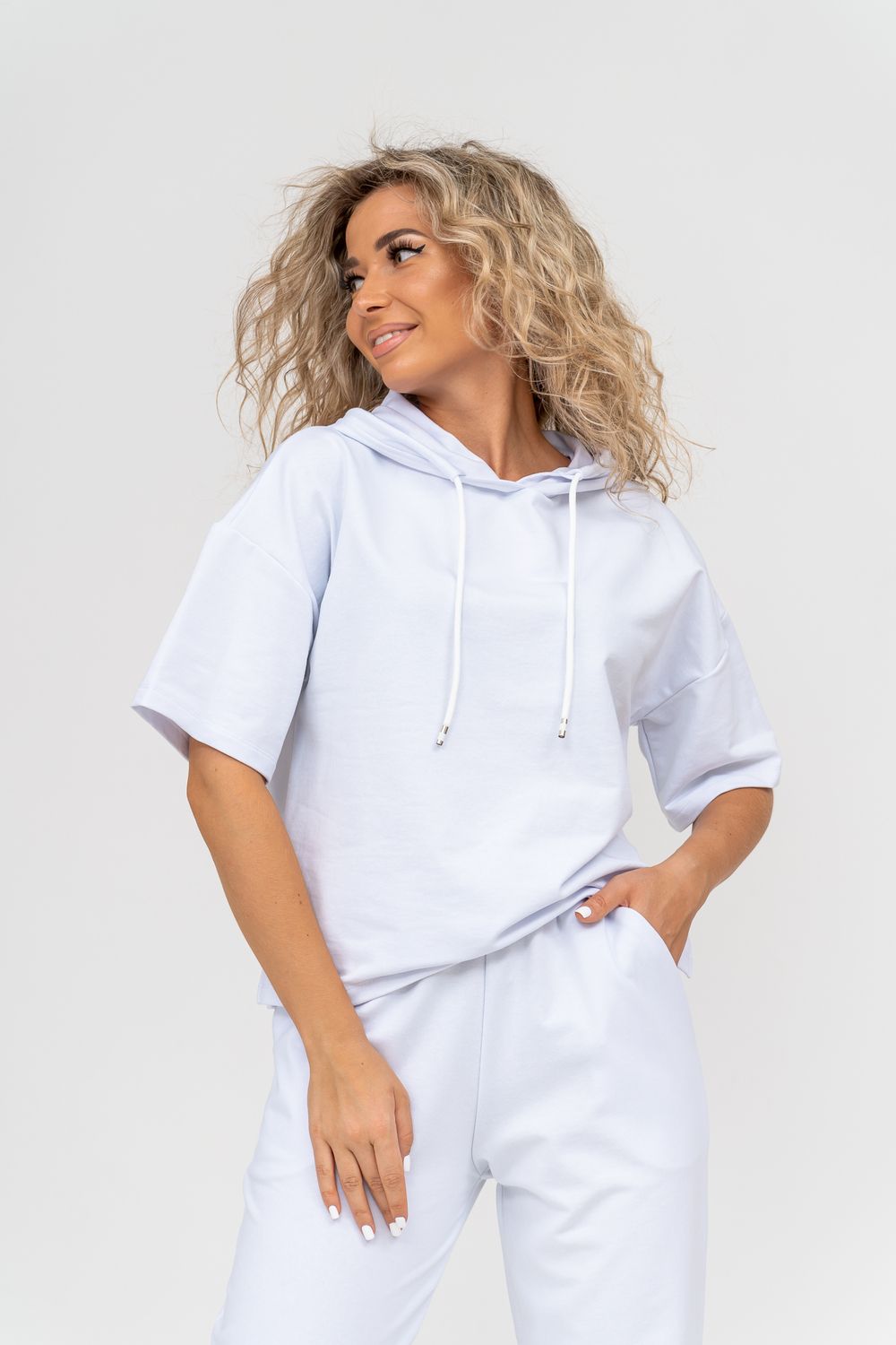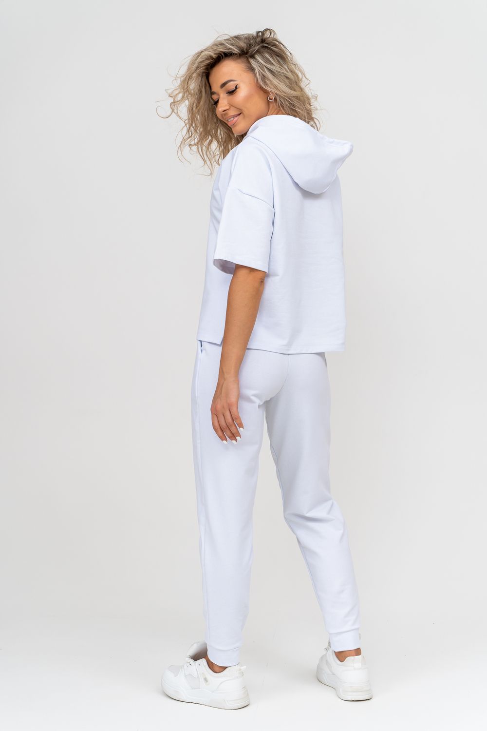 Женский костюм выполнен из футера высокого качества с хлопком и небольшим добавлением полиэстера и лайкры, что позволяет изделию не скатываться и оставлять идеальный внешний вид на долгое время. Костюм состоит из толстовки и брюк. Толстовка с капюшоном и шнурком. Линия плеча спущена, рукав укороченный, по бокам имеются небольшие разрезы. Брюки представлены с вместительными боковыми карманами. Манжеты брюк выполнены из основного материала, а пояс на специализированной поясной машине, что делает швы ровными и качественными. Свободный крой прекрасно будет смотреться на дамах с любыми формами. Костюм такого плана представлен в широкой размерной сетке, что позволяет выбрать его как девушке, так и женщине. Однотонный костюм модных расцветок будет удачным выбором для поездок в отпуск, на пикник, для школы, для активного отдыха и прогулок по городу. Будет гармонично сочетаться как с кроссовками, так и с туфлями, балетками или босоножками. Используя эту модель в качестве домашнего костюма, Вы поймёте, что это именно тот самый идеальный вариант, в котором будете себя чувствовать удобно, комфортно и современно. Костюм с брюками - это настоящая находка для тех, кто ценит свою индивидуальность!
