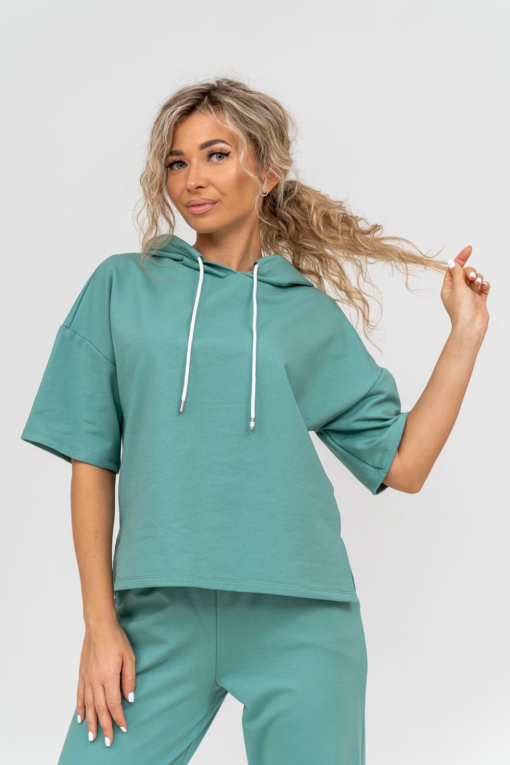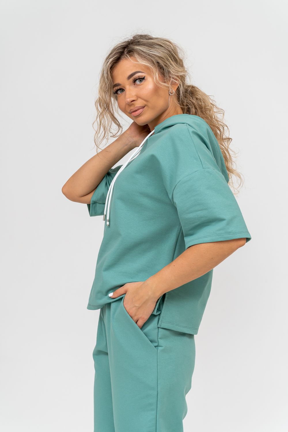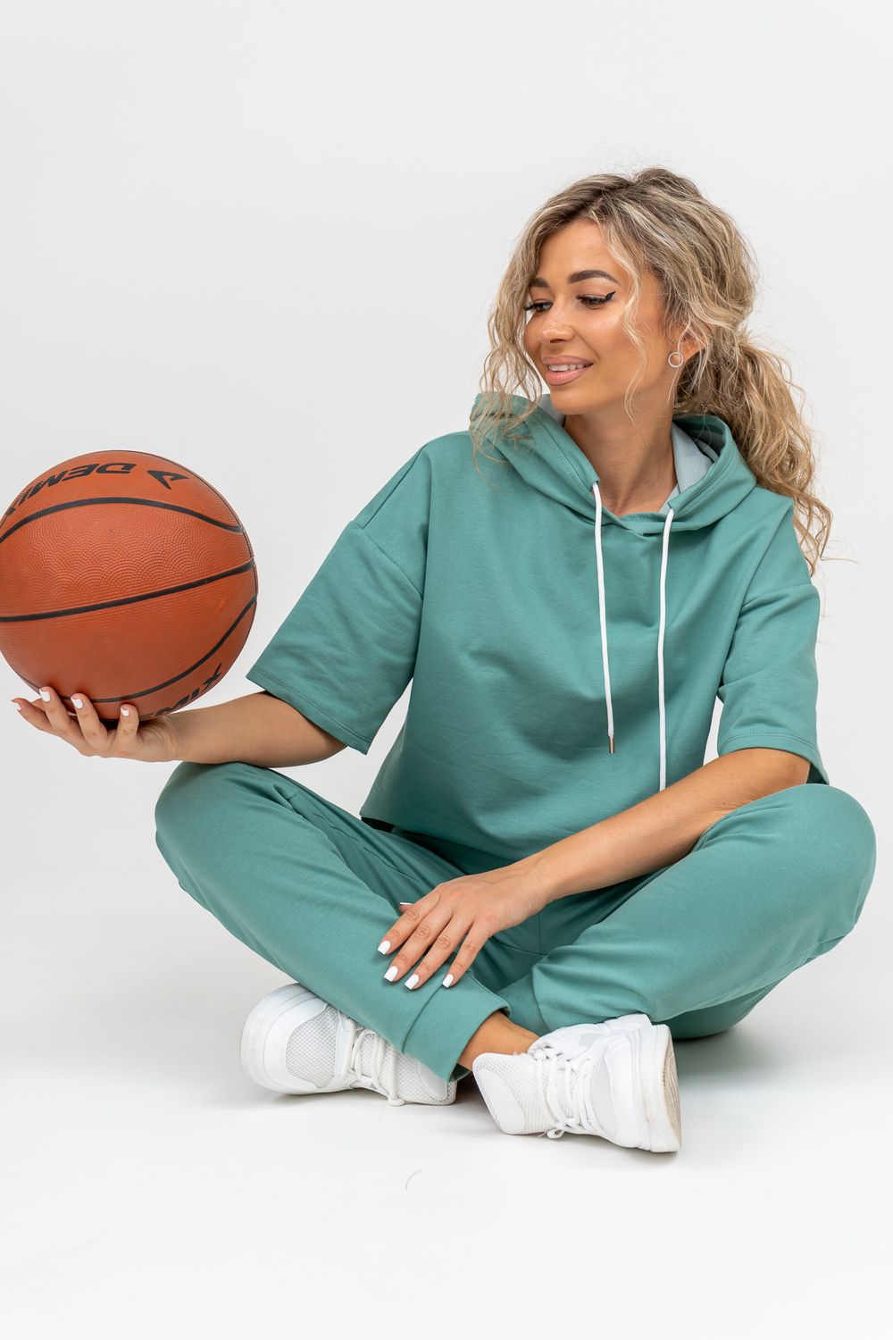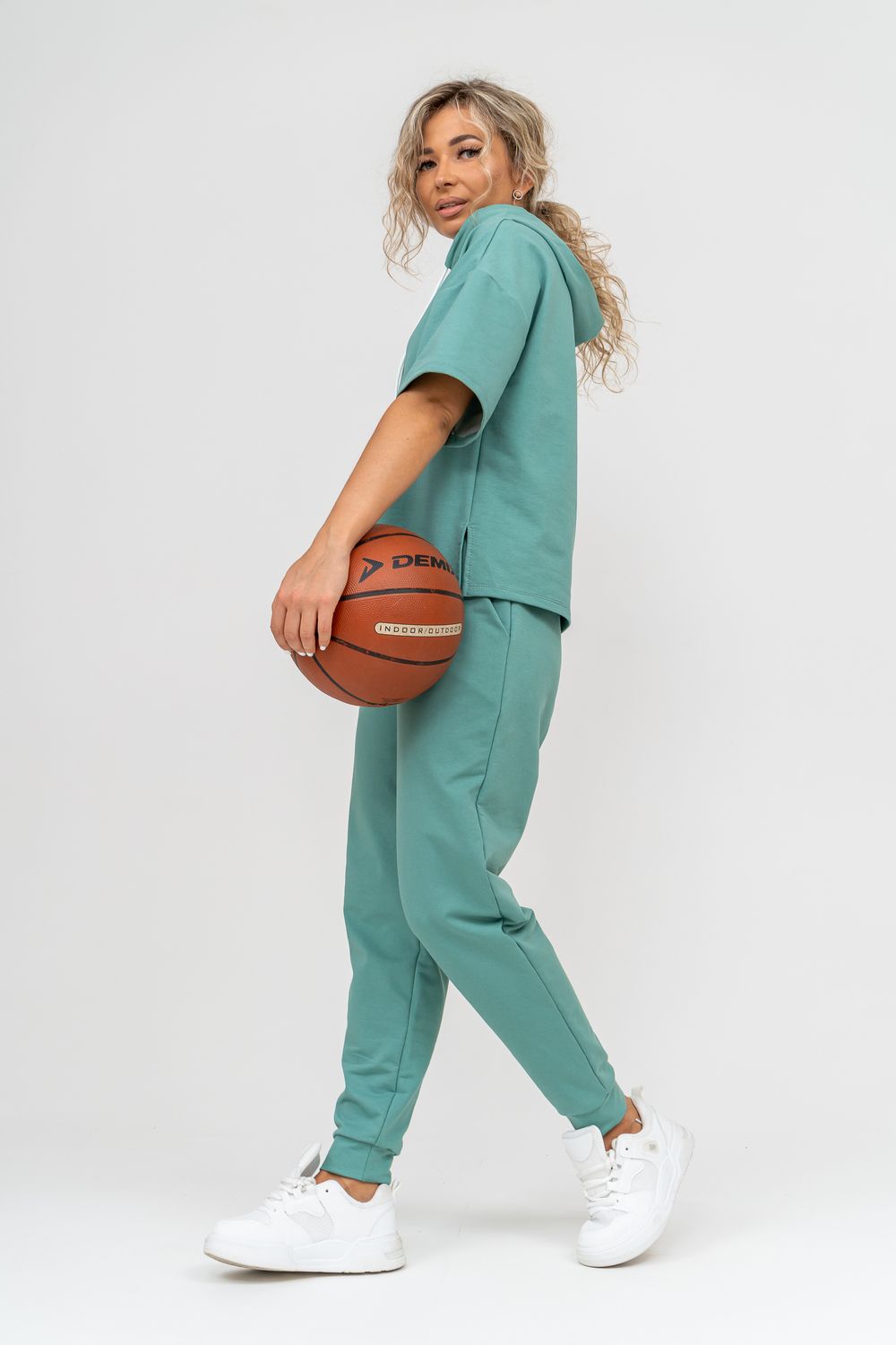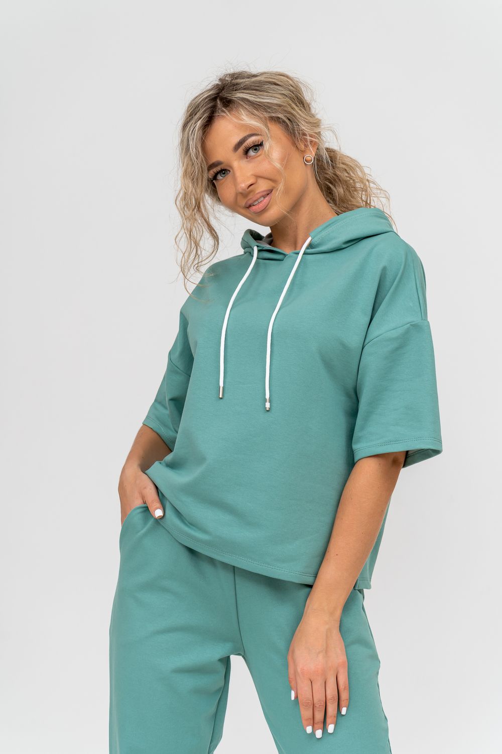 Женский костюм выполнен из футера высокого качества с хлопком и небольшим добавлением полиэстера и лайкры, что позволяет изделию не скатываться и оставлять идеальный внешний вид на долгое время. Костюм состоит из толстовки и брюк. Толстовка с капюшоном и шнурком. Линия плеча спущена, рукав укороченный, по бокам имеются небольшие разрезы. Брюки представлены с вместительными боковыми карманами. Манжеты брюк выполнены из основного материала, а пояс на специализированной поясной машине, что делает швы ровными и качественными. Свободный крой прекрасно будет смотреться на дамах с любыми формами. Костюм такого плана представлен в широкой размерной сетке, что позволяет выбрать его как девушке, так и женщине. Однотонный костюм модных расцветок будет удачным выбором для поездок в отпуск, на пикник, для школы, для активного отдыха и прогулок по городу. Будет гармонично сочетаться как с кроссовками, так и с туфлями, балетками или босоножками. Используя эту модель в качестве домашнего костюма, Вы поймёте, что это именно тот самый идеальный вариант, в котором будете себя чувствовать удобно, комфортно и современно. Костюм с брюками - это настоящая находка для тех, кто ценит свою индивидуальность!