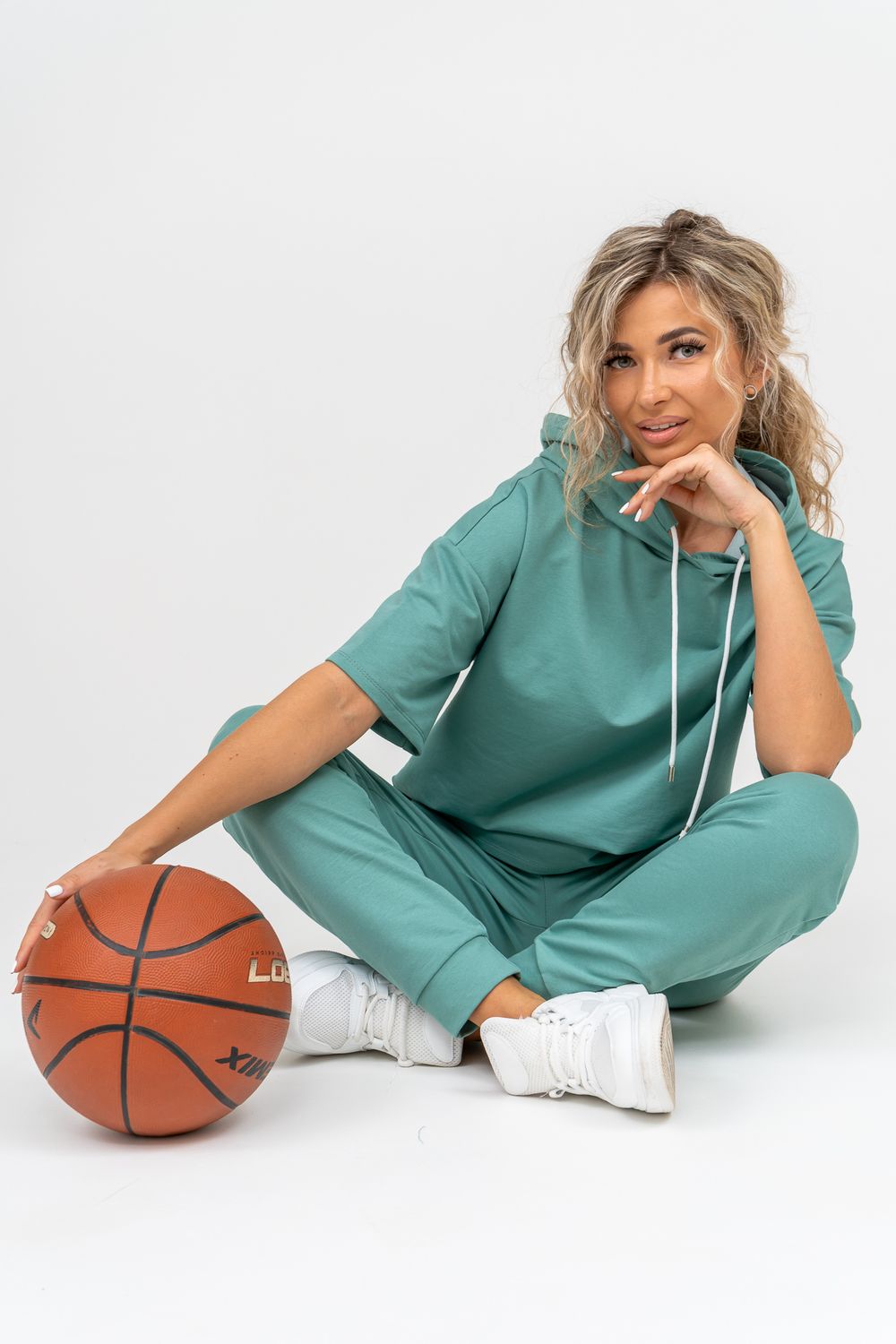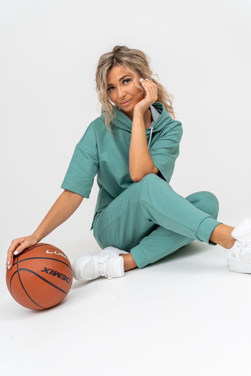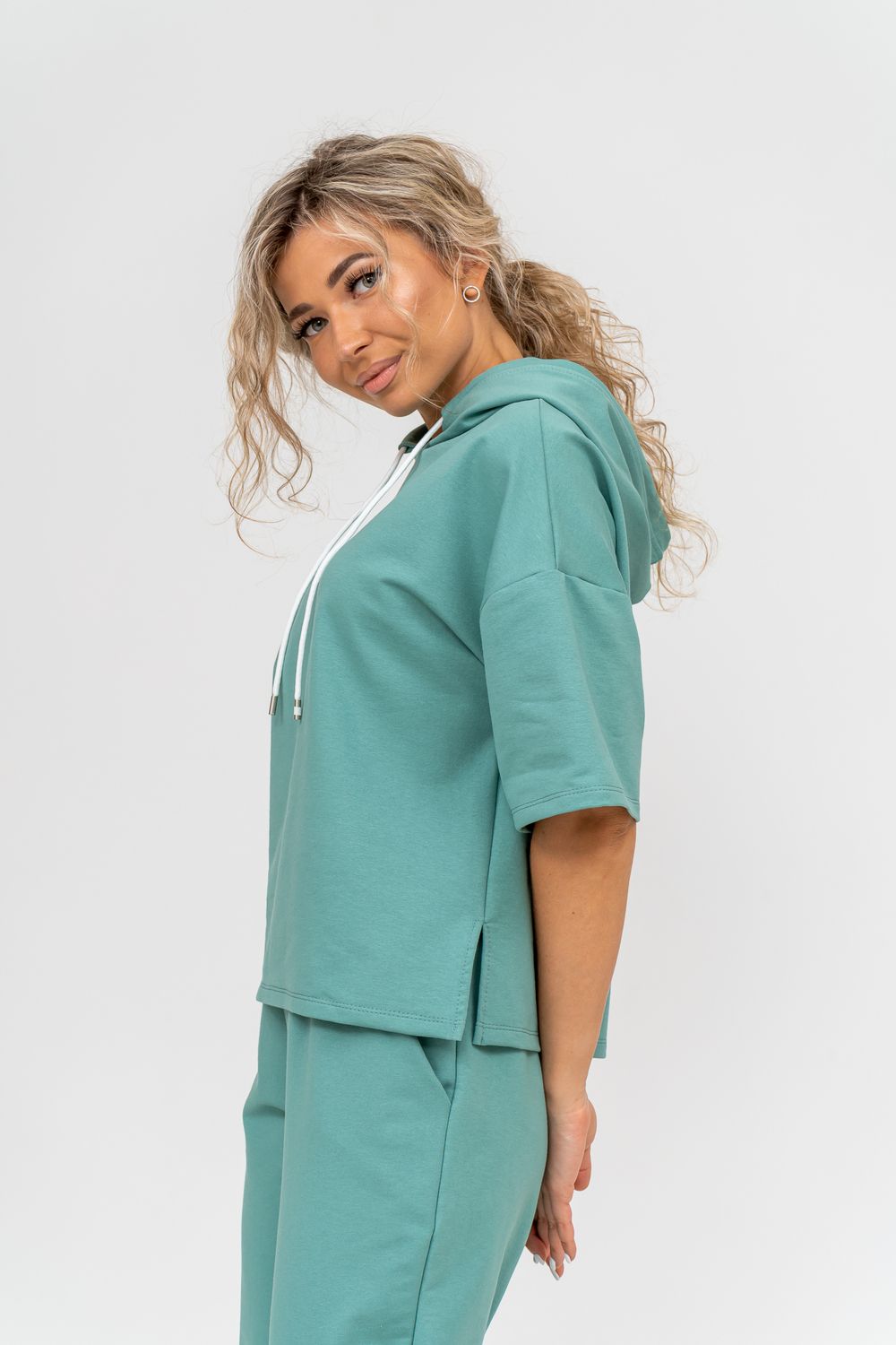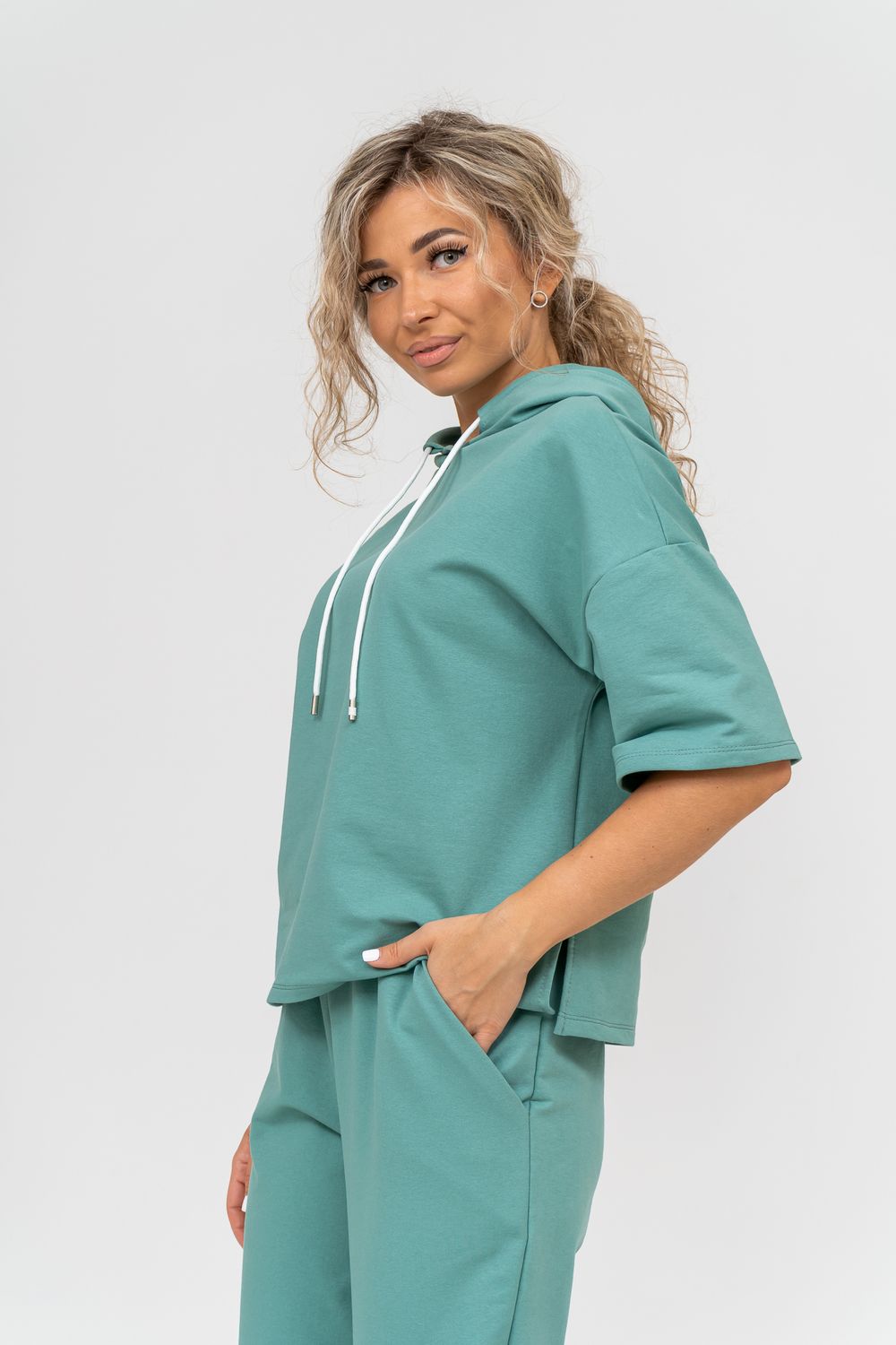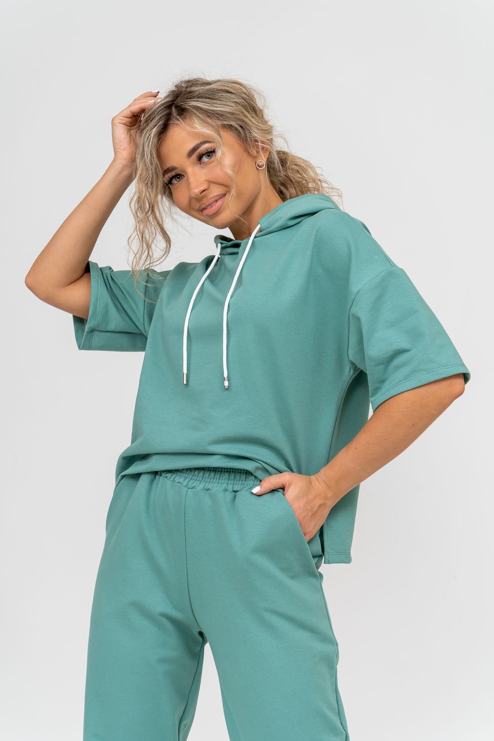 Женский костюм выполнен из футера высокого качества с хлопком и небольшим добавлением полиэстера и лайкры, что позволяет изделию не скатываться и оставлять идеальный внешний вид на долгое время. Костюм состоит из толстовки и брюк. Толстовка с капюшоном и шнурком. Линия плеча спущена, рукав укороченный, по бокам имеются небольшие разрезы. Брюки представлены с вместительными боковыми карманами. Манжеты брюк выполнены из основного материала, а пояс на специализированной поясной машине, что делает швы ровными и качественными. Свободный крой прекрасно будет смотреться на дамах с любыми формами. Костюм такого плана представлен в широкой размерной сетке, что позволяет выбрать его как девушке, так и женщине. Однотонный костюм модных расцветок будет удачным выбором для поездок в отпуск, на пикник, для школы, для активного отдыха и прогулок по городу. Будет гармонично сочетаться как с кроссовками, так и с туфлями, балетками или босоножками. Используя эту модель в качестве домашнего костюма, Вы поймёте, что это именно тот самый идеальный вариант, в котором будете себя чувствовать удобно, комфортно и современно. Костюм с брюками - это настоящая находка для тех, кто ценит свою индивидуальность!