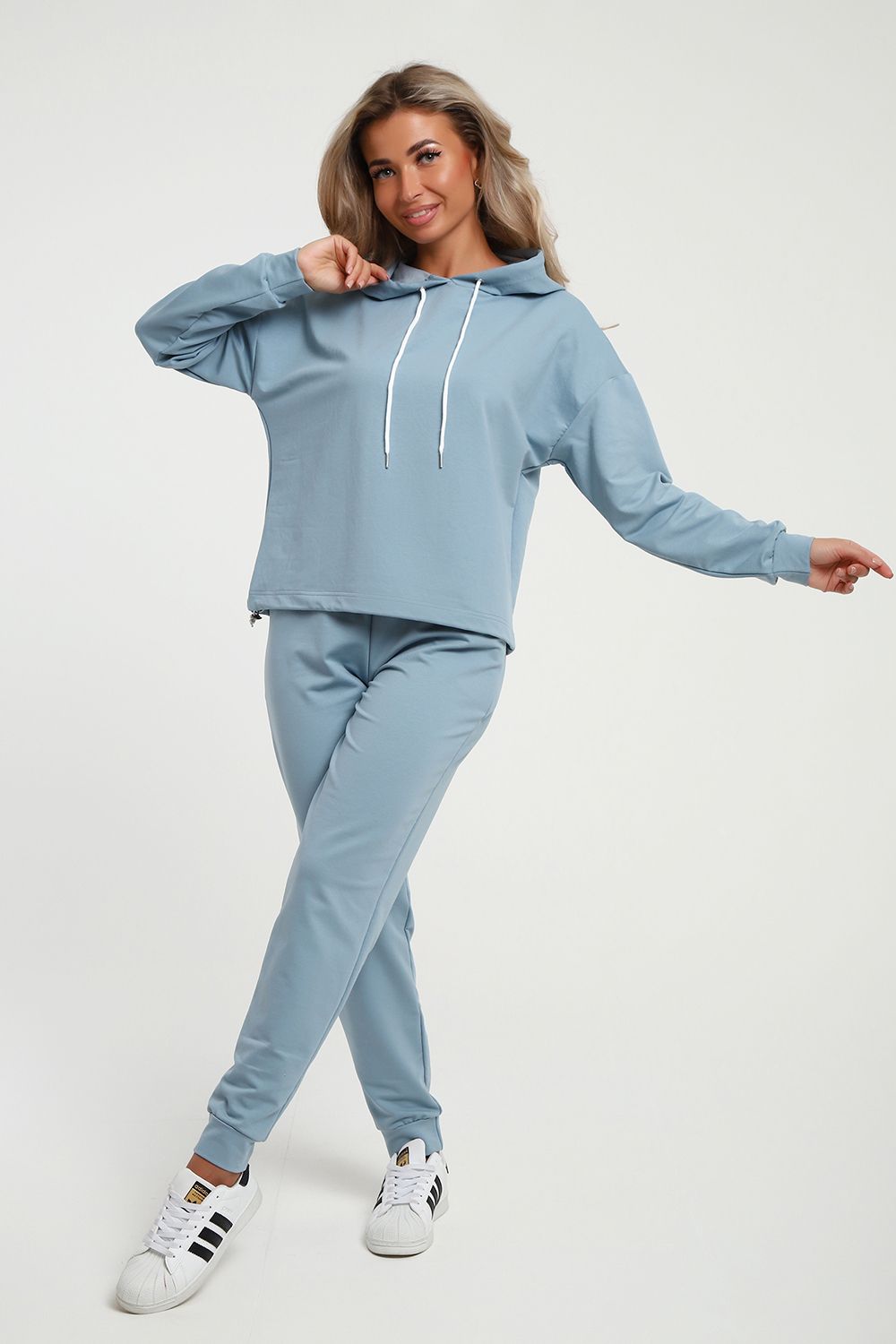 Женский костюм выполнен из футера высокого качества с хлопком и небольшим добавлением полиэстера и лайкры, что позволяет изделию не скатываться и оставлять идеальный внешний вид на долгое время. Костюм состоит из толстовки и брюк. Толстовка с капюшоном и шнурком. Линия плеча спущена, длинный рукав. По низу толстовки имеется резинка с фиксатором, с помощью которой Вы можете собрать изделие как вам хочется и нравится. Брюки представлены с вместительными боковыми карманами. Манжеты брюк выполнены из основного материала, а пояс на специализированной поясной машине, что делает швы ровными и качественными. Свободный крой прекрасно будет смотреться на дамах с любыми формами. Костюм такого плана представлен в широкой размерной сетке, что позволяет выбрать его как девушке, так и женщине. Однотонный костюм модных расцветок будет удачным выбором для поездок в отпуск, на пикник, для школы, для активного отдыха и прогулок по городу. Будет гармонично сочетаться как с кроссовками, так и с ботинками. Используя эту модель в качестве домашнего костюма, Вы поймёте, что это именно тот самый идеальный вариант, в котором будете себя чувствовать удобно, комфортно и современно. Костюм с брюками - это настоящая находка для тех, кто ценит свою индивидуальность!