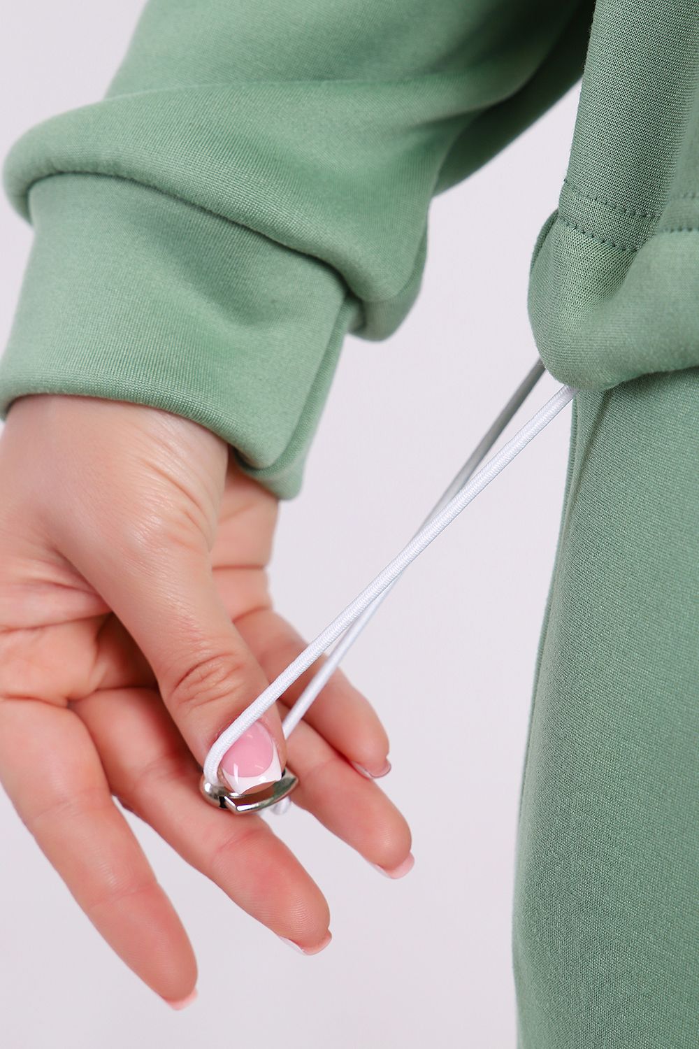 Модный утеплённый костюм выполнен из материала нового поколения футер найк - спорт. Это мягкое и эластичное полотно, утеплённое мелковорсным мехом, цвет меха в тон основного цвета. Ворс направленный 3 мм, мягкий и не блестящий. Полотно эластичное и очень приятное на ощупь с обеих сторон. Благодаря составу не вытягивается, не образует катышки, не сыпется и не требует особого ухода. Костюм такого плана - это модная и стильная вещь, идеально подходящая для активного образа жизни, отдыха и для повседневной носки. Модель выполнена из специально разработанной для спортивных занятий ткани, которая отводит влагу, позволяет коже дышать и настолько эластична, что тянется в 4 - х направлениях. Поэтому костюм идеален для зимних видов спорта, например, катания на коньках, сноуборде или лыжах в холодное время, а также для скандинавской ходьбы. Костюм состоит из толстовки и брюк. Толстовка с капюшоном и шнурком. Линия плеча спущена, длинный рукав. По низу толстовки имеется резинка с фиксатором, с помощью которой Вы можете собрать изделие как вам хочется и нравится. Брюки представлены с вместительными боковыми карманами. Манжеты брюк выполнены из основного материала, а пояс на специализированной поясной машине, что делает швы ровными и качественными. Свободный крой прекрасно будет смотреться на дамах с любыми формами. Костюм такого плана представлен в широкой размерной сетке, что позволяет выбрать его как девушке, так и женщине. Однотонный костюм модных расцветок будет удачным выбором для поездок в отпуск, на пикник, для школы, для активного отдыха и прогулок по городу. Будет гармонично сочетаться как с кроссовками, так и с ботинками. Используя эту модель в качестве домашнего костюма, Вы поймёте, что это именно тот самый идеальный вариант, в котором будете себя чувствовать удобно, комфортно и современно. Костюм с брюками - это настоящая находка для тех, кто ценит свою индивидуальность!