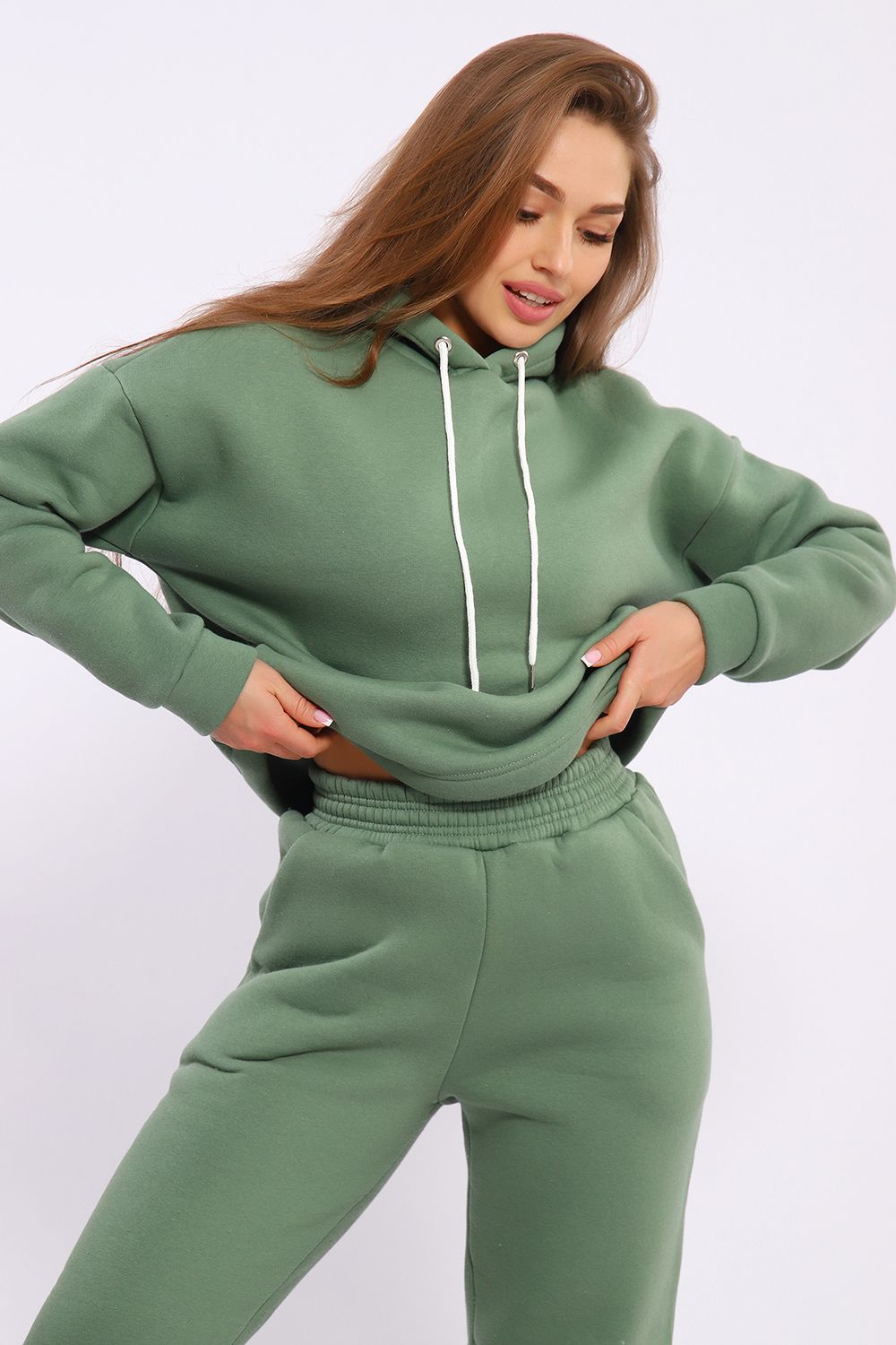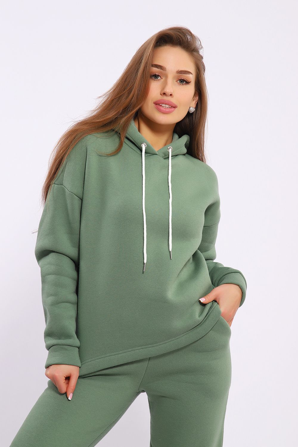Женский модный костюм выполнен из футера 3-х нитки с начёсом - это самый толстый, плотный и тёплый вид трикотажа в своей группе. Данный вид футера имеет множество достоинств: натуральный состав, теплорегуляция, гипоаллергенность, прочность, формоустойчивость (при правильном уходе и стирке 30 - 40 °С). Костюм состоит из толстовки и брюк. Толстовка с капюшоном и шнурком. Линия плеча спущена, длинный рукав. По низу толстовки имеется резинка с фиксатором, с помощью которой Вы можете собрать изделие как вам хочется и нравится. Брюки представлены с вместительными боковыми карманами. Манжеты брюк выполнены из основного материала, а пояс на специализированной поясной машине, что делает швы ровными и качественными. Свободный крой прекрасно будет смотреться на дамах с любыми формами. Костюм такого плана представлен в широкой размерной сетке, что позволяет выбрать его как девушке, так и женщине. Однотонный костюм модных расцветок будет удачным выбором для поездок в отпуск, на пикник, для школы, для активного отдыха и прогулок по городу. Будет гармонично сочетаться как с кроссовками, так и с ботинками. Используя эту модель в качестве домашнего костюма, Вы поймёте, что это именно тот самый идеальный вариант, в котором будете себя чувствовать удобно, комфортно и современно. Костюм с брюками - это настоящая находка для тех, кто ценит свою индивидуальность!