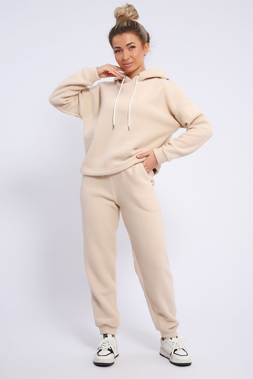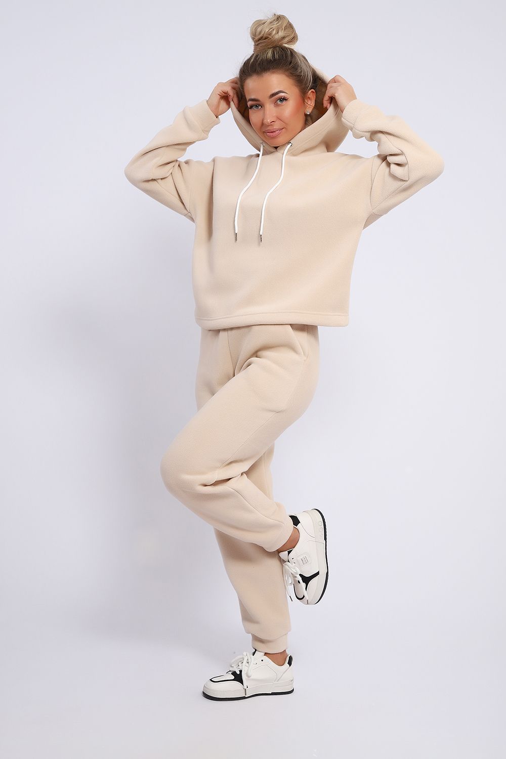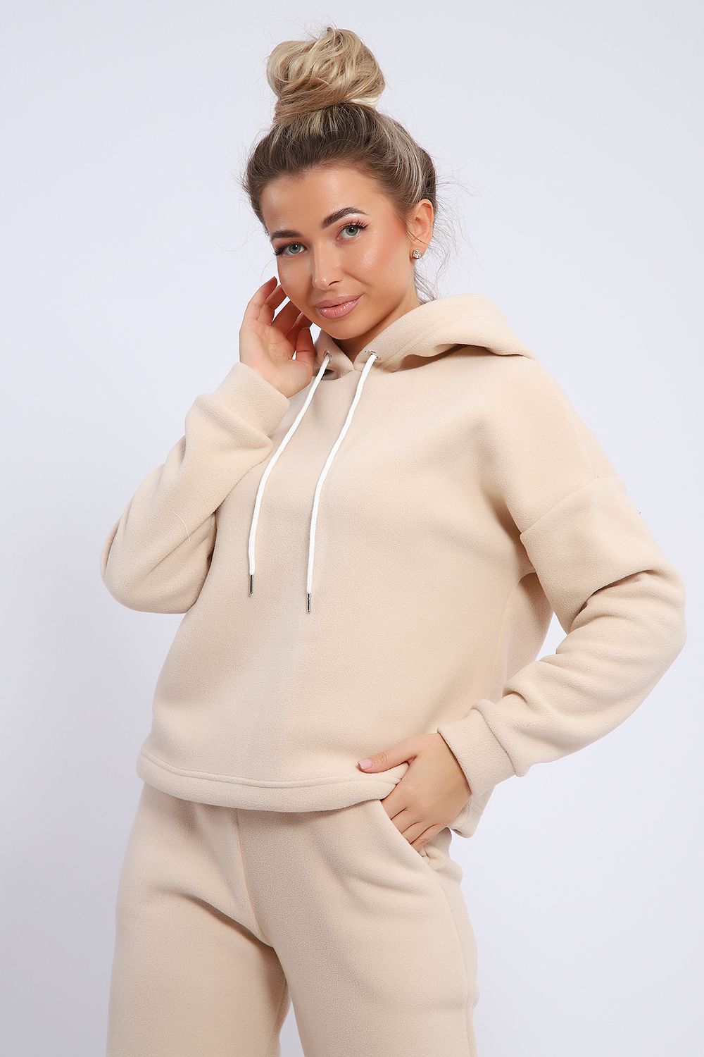 Женский костюм выполнен из флиса высокого качества. Флис - ткань с ворсистой поверхностью, что позволяет эффективно сохранять тепло. Материал прочный, эластичный, влагостойкий. Хорошо пропускает влагу, при этом не впитывает ее. По теплостойкости превосходит шерсть, но намного легче. Воздухопроницаемая гигроскопичная ткань создает для тела комфортный микроклимат. Материал гипоаллергенный, подходит для изготовления одежды детям, в том числе новорожденным. Изделия из флиса легкие, не мнутся, не деформируются, не вытягиваются.В такой одежде удобно и комфортно. Эластичность материала позволяет легко двигаться. Костюм состоит из толстовки и брюк. Толстовка с капюшоном и шнурком. Линия плеча спущена, длинный рукав. По низу толстовки имеется резинка с фиксатором, с помощью которой Вы можете собрать изделие как вам хочется и нравится. Брюки представлены с вместительными боковыми карманами. Манжеты брюк выполнены из основного материала, а пояс на специализированной поясной машине, что делает швы ровными и качественными. Свободный крой прекрасно будет смотреться на дамах с любыми формами. Костюм такого плана представлен в широкой размерной сетке, что позволяет выбрать его как девушке, так и женщине. Однотонный костюм модных расцветок будет удачным выбором для поездок в отпуск, на пикник, для школы, для активного отдыха и прогулок по городу. Будет гармонично сочетаться как с кроссовками, так и с ботинками. Используя эту модель в качестве домашнего костюма, Вы поймёте, что это именно тот самый идеальный вариант, в котором будете себя чувствовать удобно, комфортно и современно. Костюм с брюками - это настоящая находка для тех, кто ценит свою индивидуальность!