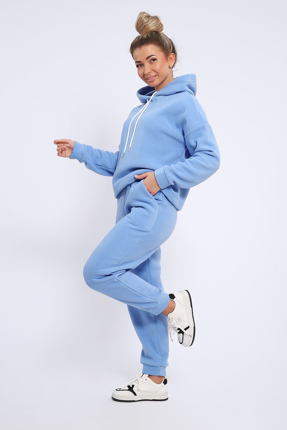 Женский костюм выполнен из флиса высокого качества. Флис - ткань с ворсистой поверхностью, что позволяет эффективно сохранять тепло. Материал прочный, эластичный, влагостойкий. Хорошо пропускает влагу, при этом не впитывает ее. По теплостойкости превосходит шерсть, но намного легче. Воздухопроницаемая гигроскопичная ткань создает для тела комфортный микроклимат. Материал гипоаллергенный, подходит для изготовления одежды детям, в том числе новорожденным. Изделия из флиса легкие, не мнутся, не деформируются, не вытягиваются.В такой одежде удобно и комфортно. Эластичность материала позволяет легко двигаться. Костюм состоит из толстовки и брюк. Толстовка с капюшоном и шнурком. Линия плеча спущена, длинный рукав. По низу толстовки имеется резинка с фиксатором, с помощью которой Вы можете собрать изделие как вам хочется и нравится. Брюки представлены с вместительными боковыми карманами. Манжеты брюк выполнены из основного материала, а пояс на специализированной поясной машине, что делает швы ровными и качественными. Свободный крой прекрасно будет смотреться на дамах с любыми формами. Костюм такого плана представлен в широкой размерной сетке, что позволяет выбрать его как девушке, так и женщине. Однотонный костюм модных расцветок будет удачным выбором для поездок в отпуск, на пикник, для школы, для активного отдыха и прогулок по городу. Будет гармонично сочетаться как с кроссовками, так и с ботинками. Используя эту модель в качестве домашнего костюма, Вы поймёте, что это именно тот самый идеальный вариант, в котором будете себя чувствовать удобно, комфортно и современно. Костюм с брюками - это настоящая находка для тех, кто ценит свою индивидуальность!