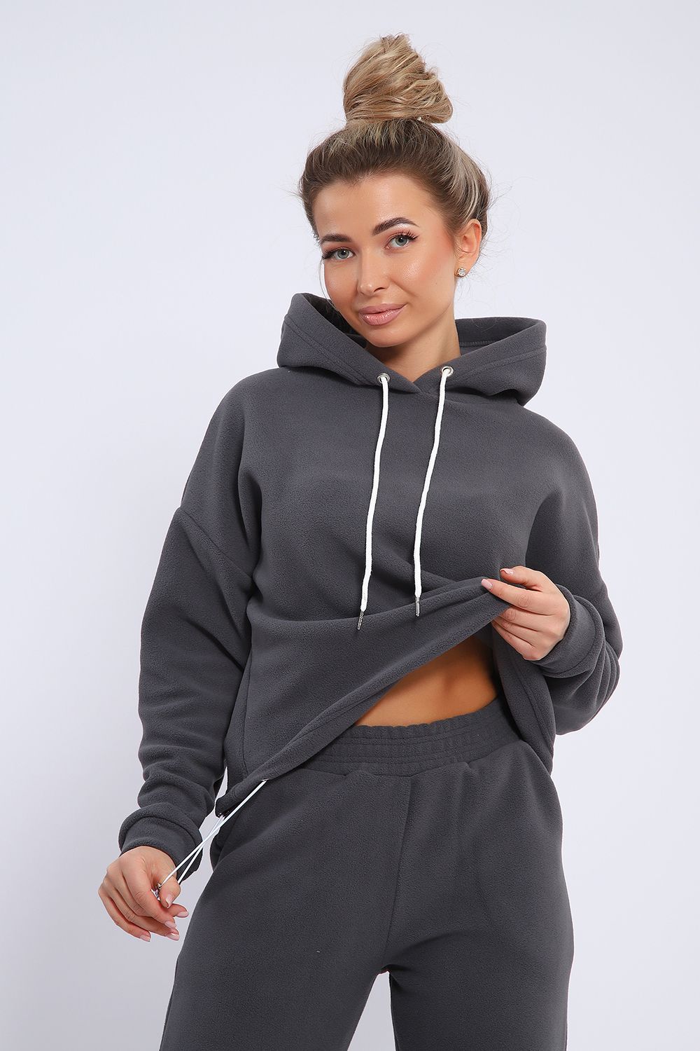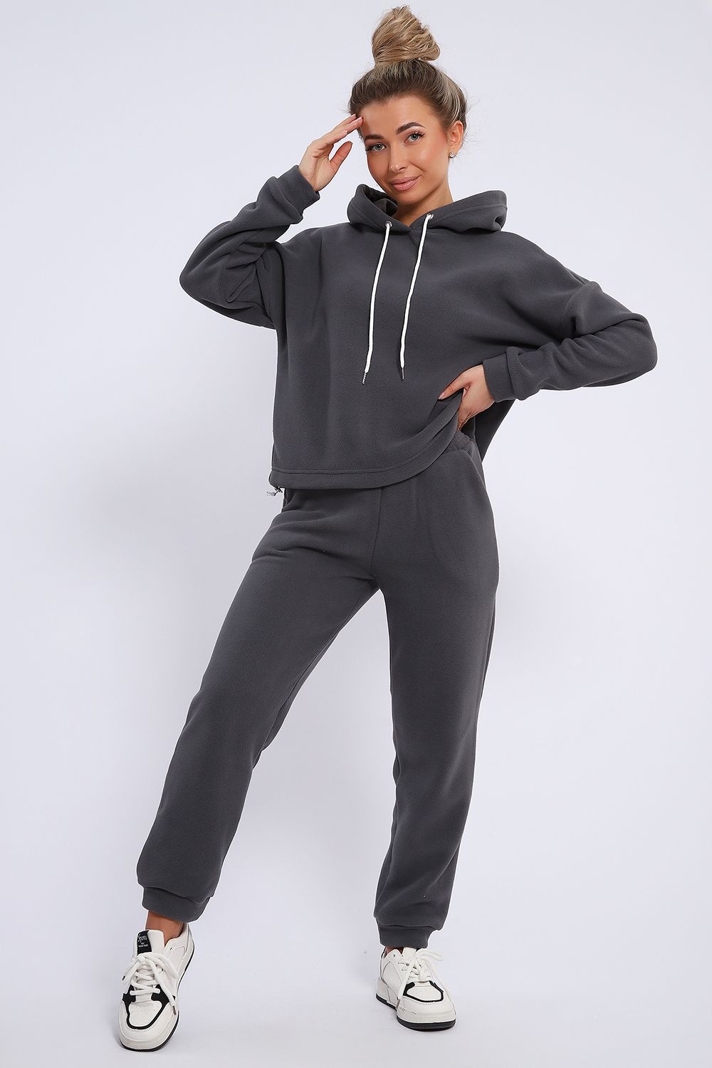 Женский костюм выполнен из флиса высокого качества. Флис - ткань с ворсистой поверхностью, что позволяет эффективно сохранять тепло. Материал прочный, эластичный, влагостойкий. Хорошо пропускает влагу, при этом не впитывает ее. По теплостойкости превосходит шерсть, но намного легче. Воздухопроницаемая гигроскопичная ткань создает для тела комфортный микроклимат. Материал гипоаллергенный, подходит для изготовления одежды детям, в том числе новорожденным. Изделия из флиса легкие, не мнутся, не деформируются, не вытягиваются.В такой одежде удобно и комфортно. Эластичность материала позволяет легко двигаться. Костюм состоит из толстовки и брюк. Толстовка с капюшоном и шнурком. Линия плеча спущена, длинный рукав. По низу толстовки имеется резинка с фиксатором, с помощью которой Вы можете собрать изделие как вам хочется и нравится. Брюки представлены с вместительными боковыми карманами. Манжеты брюк выполнены из основного материала, а пояс на специализированной поясной машине, что делает швы ровными и качественными. Свободный крой прекрасно будет смотреться на дамах с любыми формами. Костюм такого плана представлен в широкой размерной сетке, что позволяет выбрать его как девушке, так и женщине. Однотонный костюм модных расцветок будет удачным выбором для поездок в отпуск, на пикник, для школы, для активного отдыха и прогулок по городу. Будет гармонично сочетаться как с кроссовками, так и с ботинками. Используя эту модель в качестве домашнего костюма, Вы поймёте, что это именно тот самый идеальный вариант, в котором будете себя чувствовать удобно, комфортно и современно. Костюм с брюками - это настоящая находка для тех, кто ценит свою индивидуальность!