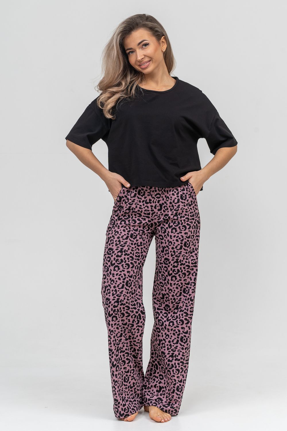 Модный стильный костюм - идеальное решение для тех, кто ищет лёгкую и красивую одежду на каждый день для дома и отдыха. Костюм, футболка и брюки, выполнен из 100% хлопка. Футболка выполнена со спущенным рукавом и окантованной горловиной. На брюках имеется два вместительных боковых кармана и пояс, обработанный на специализированной поясной машине. Данная модель костюма очень удобна в качестве повседневной одежды, а универсальный фасон хорошо скроет недостатки и подчеркнет достоинства фигуры. Свободный крой комплекта "двойки" не сковывает движения, что делает его очень удобным в носке, резинка не перекручивается, а высокая посадка брюк - палаццо даёт ощущение комфорта. Такой костюм можно использовать как вариант домашнего костюма, в нем также можно поехать на дачу или отдых. Свободную футболку и брючки можно носить как вместе, так и отдельно. Футболку с коротким рукавом можно легко сочетать с джинсами, юбками и шортами. Хлопковый материал можно стирать в режиме бережной стирки при 30 градусах. Такой костюм с широкими брюками подойдет для разной возрастной категории. Он идеально подойдет для беременных и мам с детьми. Хорошо сядет на высоких и невысоких представительницах прекрасного пола всех возрастов. Такой универсальный женский костюм станет отличным подарочным вариантом, его можно подарить маме, дочери, жене, бабушке, подруге или порадовать себя любимую даже без повода. Наш костюм благодаря своей практичности и лаконичному дизайну будет служить Вам долгие годы. Можно также приобрести брюки отдельно - модель 36899.