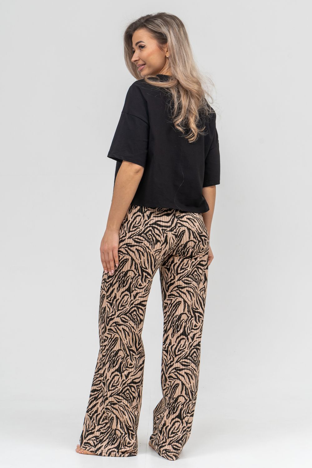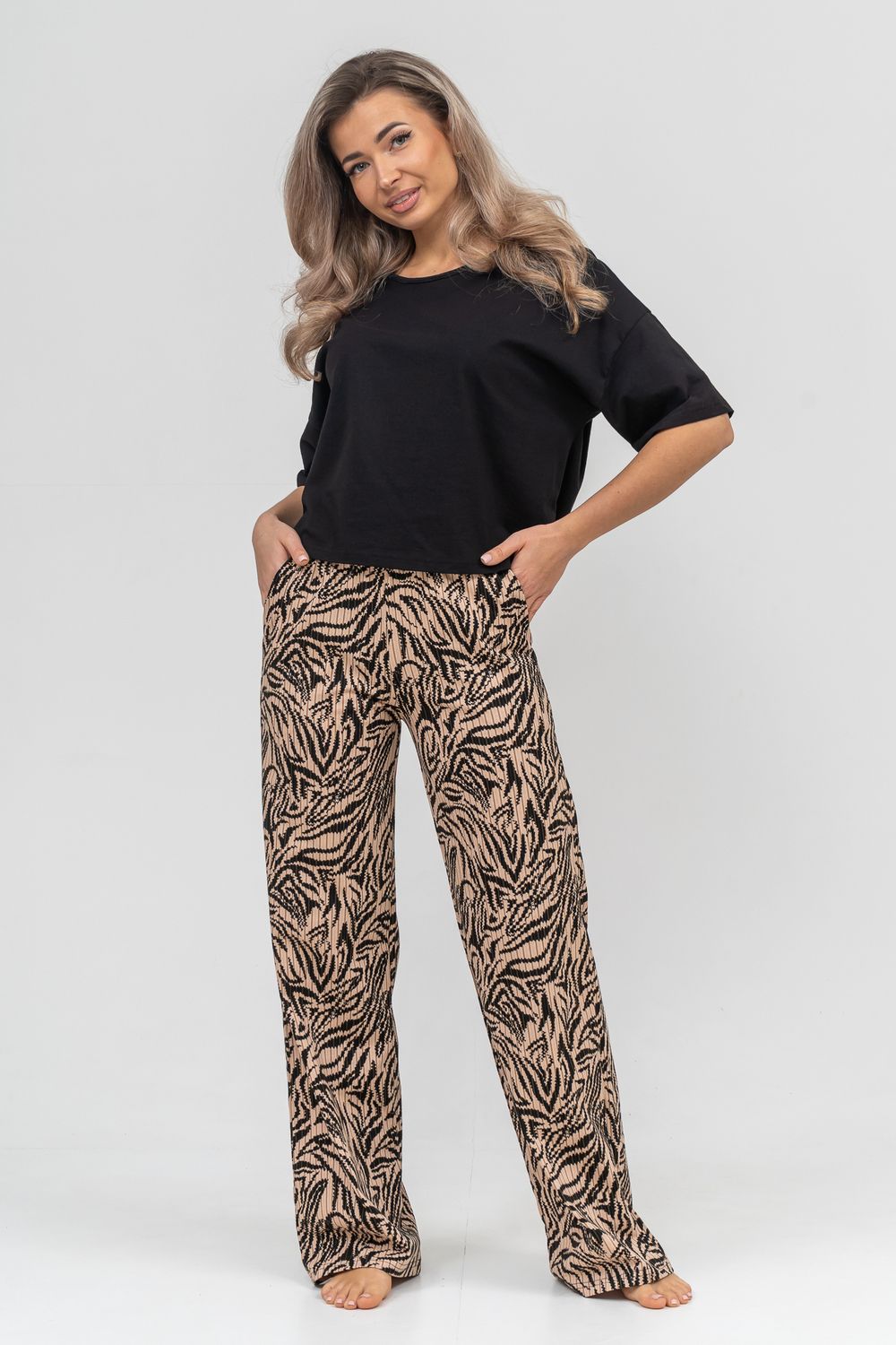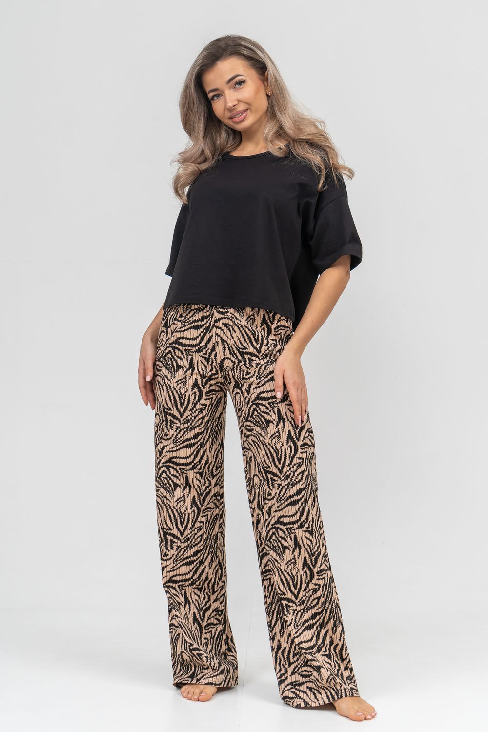 Модный стильный костюм - идеальное решение для тех, кто ищет лёгкую и красивую одежду на каждый день для дома и отдыха. Костюм, футболка и брюки, выполнен из 100% хлопка. Футболка выполнена со спущенным рукавом и окантованной горловиной. На брюках имеется два вместительных боковых кармана и пояс, обработанный на специализированной поясной машине. Данная модель костюма очень удобна в качестве повседневной одежды, а универсальный фасон хорошо скроет недостатки и подчеркнет достоинства фигуры. Свободный крой комплекта "двойки" не сковывает движения, что делает его очень удобным в носке, резинка не перекручивается, а высокая посадка брюк - палаццо даёт ощущение комфорта. Такой костюм можно использовать как вариант домашнего костюма, в нем также можно поехать на дачу или отдых. Свободную футболку и брючки можно носить как вместе, так и отдельно. Футболку с коротким рукавом можно легко сочетать с джинсами, юбками и шортами. Хлопковый материал можно стирать в режиме бережной стирки при 30 градусах. Такой костюм с широкими брюками подойдет для разной возрастной категории. Он идеально подойдет для беременных и мам с детьми. Хорошо сядет на высоких и невысоких представительницах прекрасного пола всех возрастов. Такой универсальный женский костюм станет отличным подарочным вариантом, его можно подарить маме, дочери, жене, бабушке, подруге или порадовать себя любимую даже без повода. Наш костюм благодаря своей практичности и лаконичному дизайну будет служить Вам долгие годы. Можно также приобрести брюки отдельно - модель 36901.