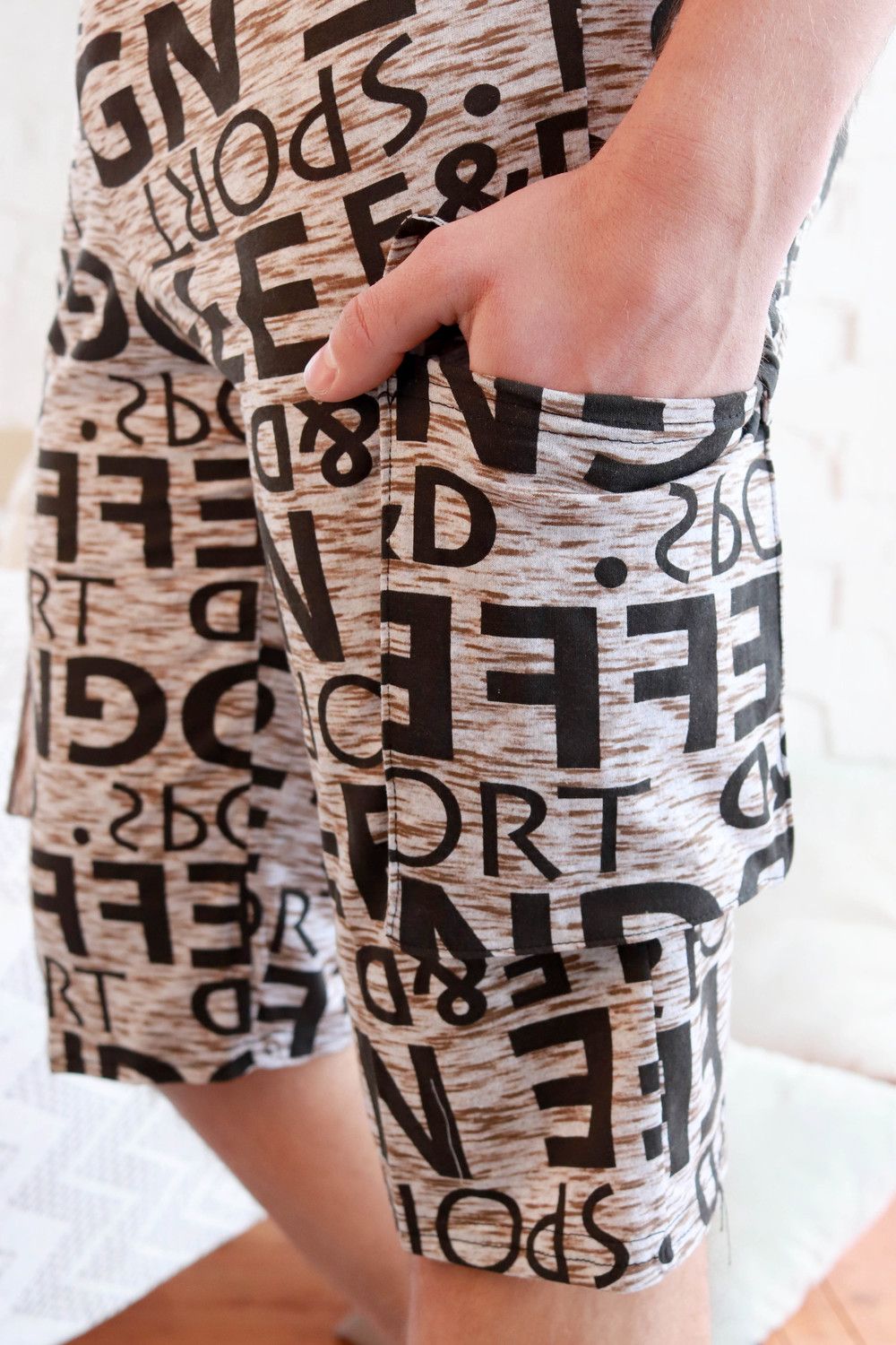 Мужской костюм. В комплекте футболка классического кроя с коротким рукавом. Яркие шорты с карманами, длина чуть ниже колена.