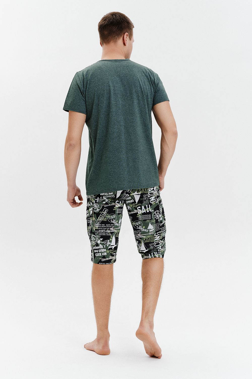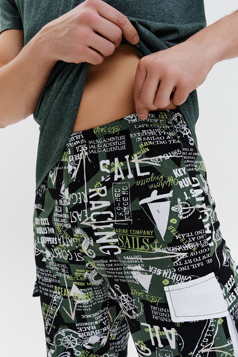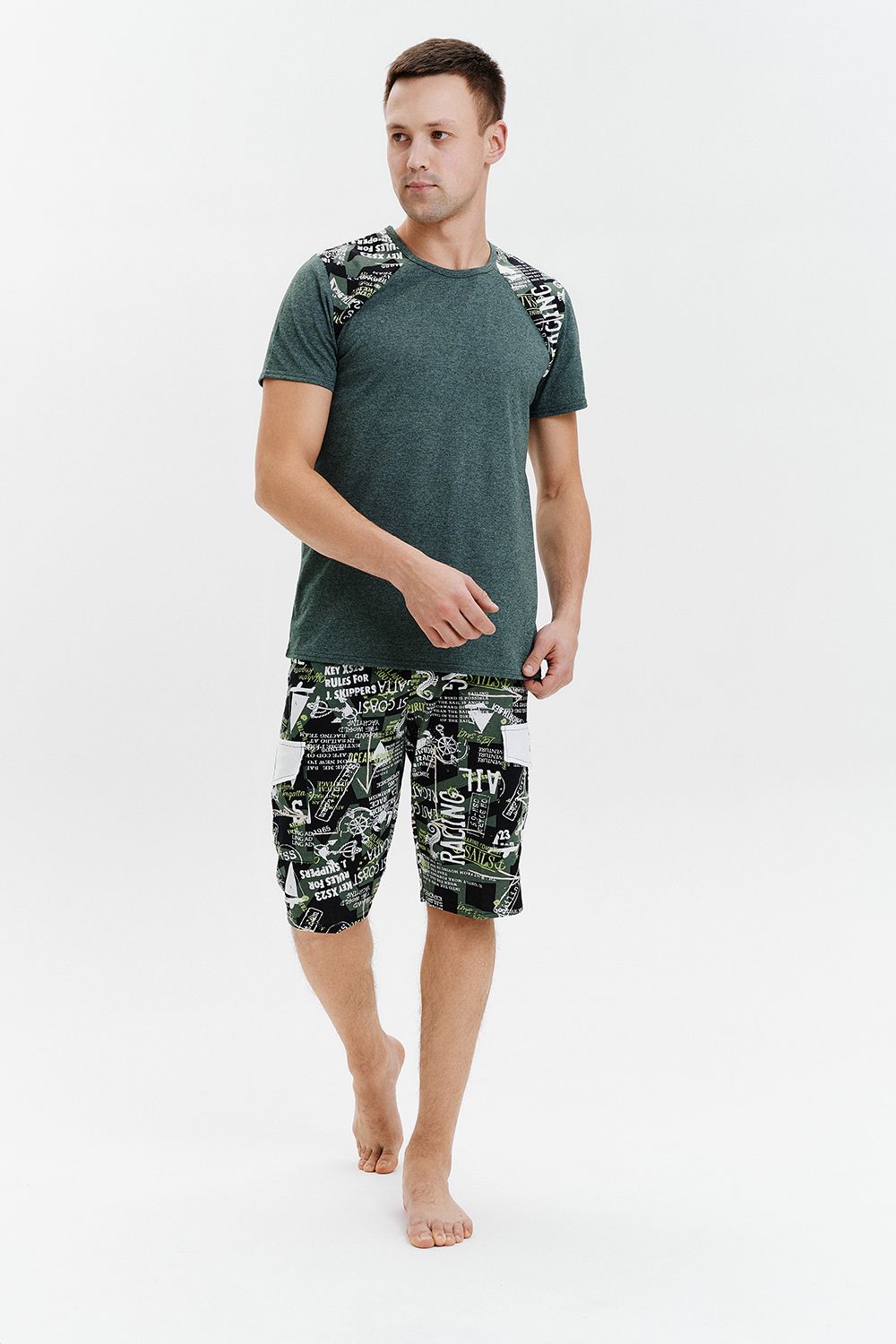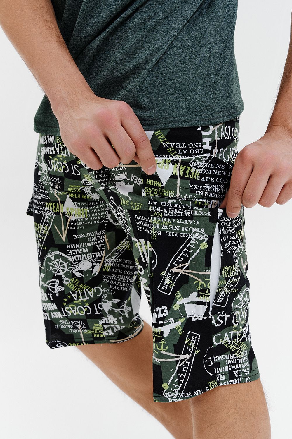 Мужской костюм. В комплекте футболка классического кроя с коротким рукавом. Яркие шорты с карманами, длина чуть ниже колена.