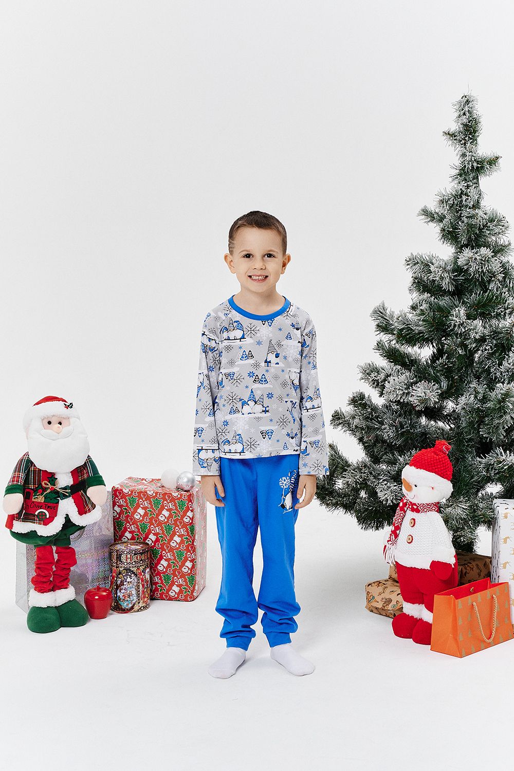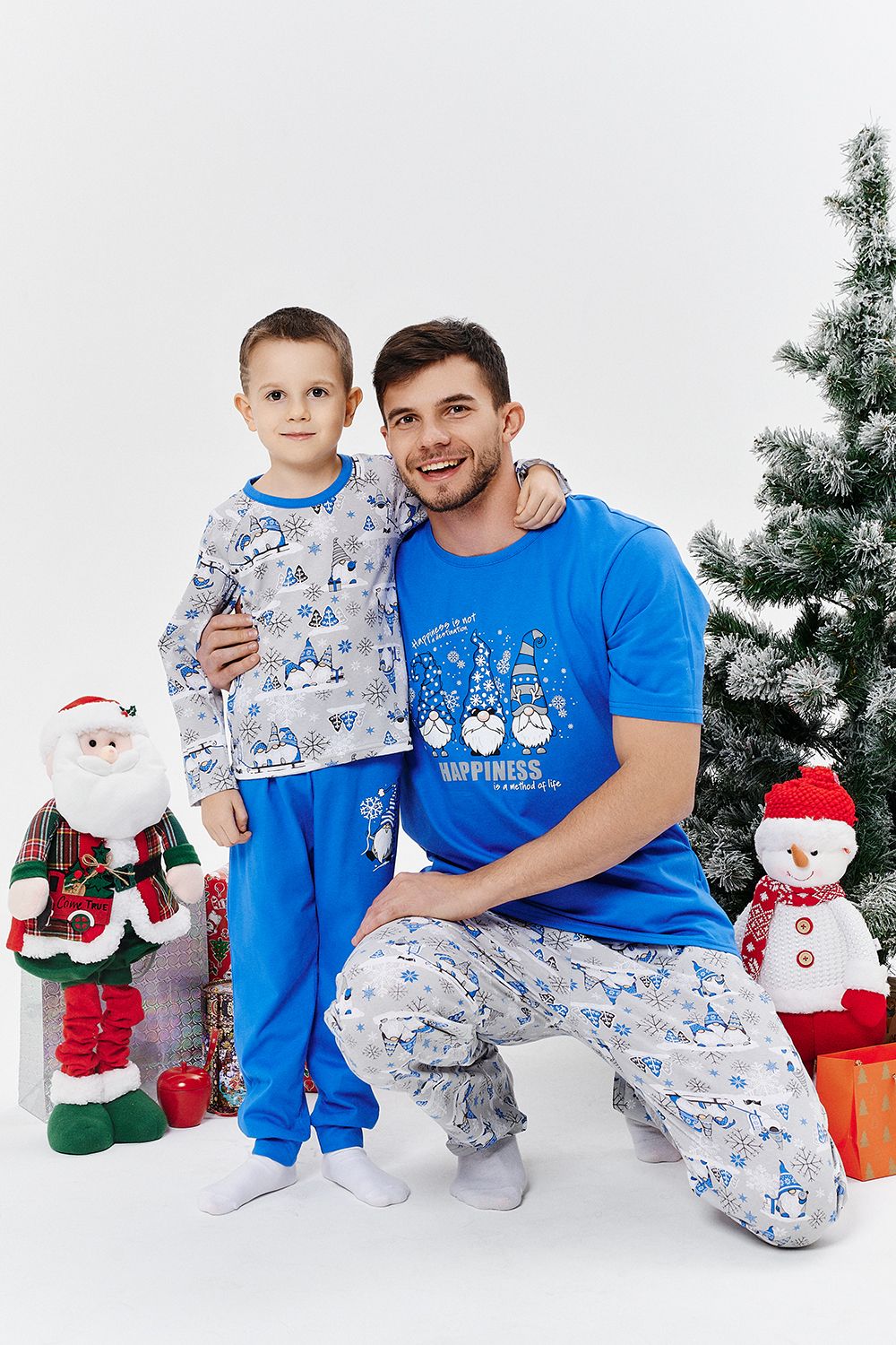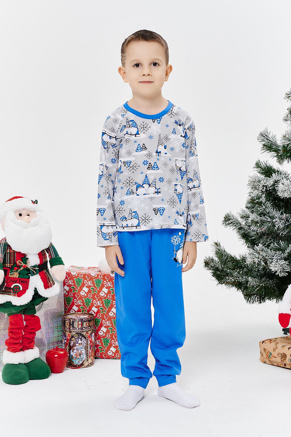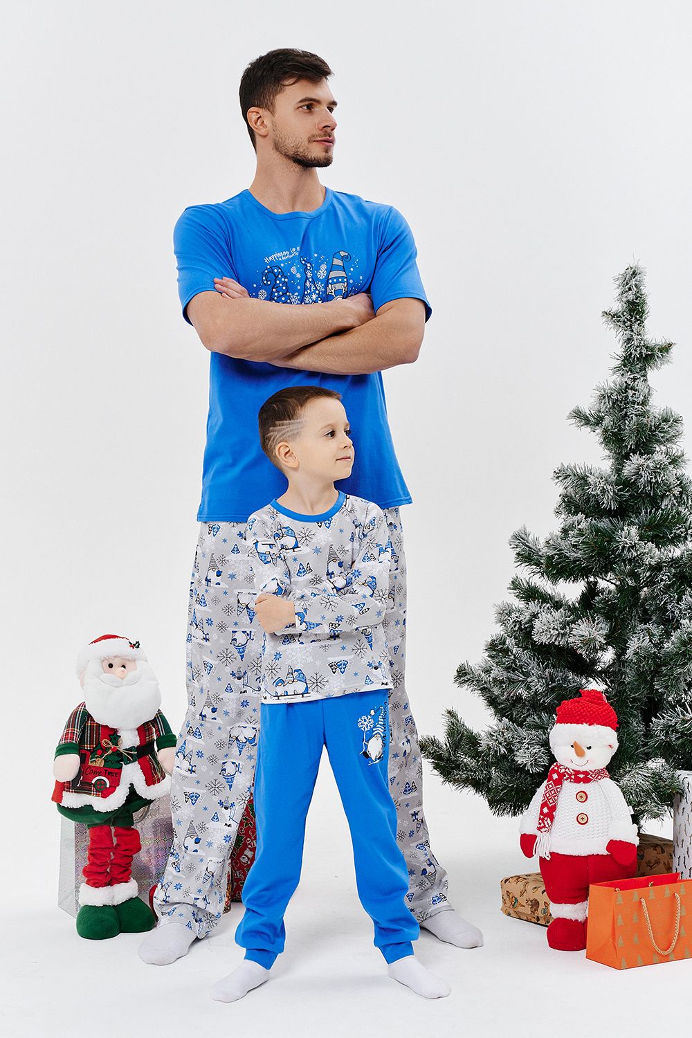 Костюм детский для мальчиков из кулирного полотна состоит из кофты и брюк. Кофта прямая, горловина круглая, обработана окантовкой, рукав длинный, реглан, низ изделия обработан на плоскошовной машине. Брюки прямые, верх на поясе с резинкой, спереди на брюках принт, низ изделия на плоскошовной машине. Данный костюм из серии "Family look", к нему можете приобрести женский костюм: 42275, детский костюм для девочек: 42276, мужской костюм: 42274.