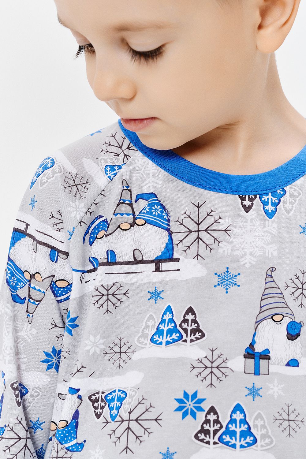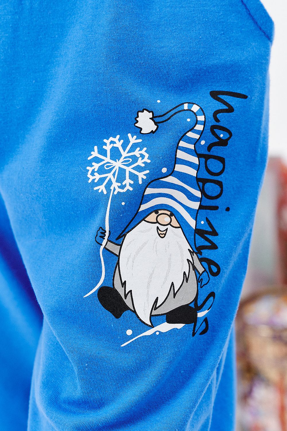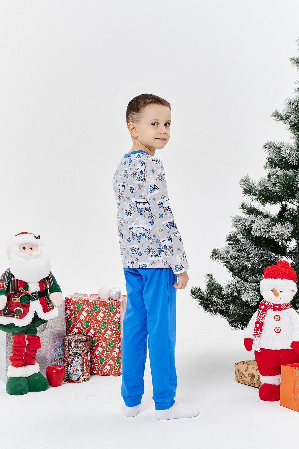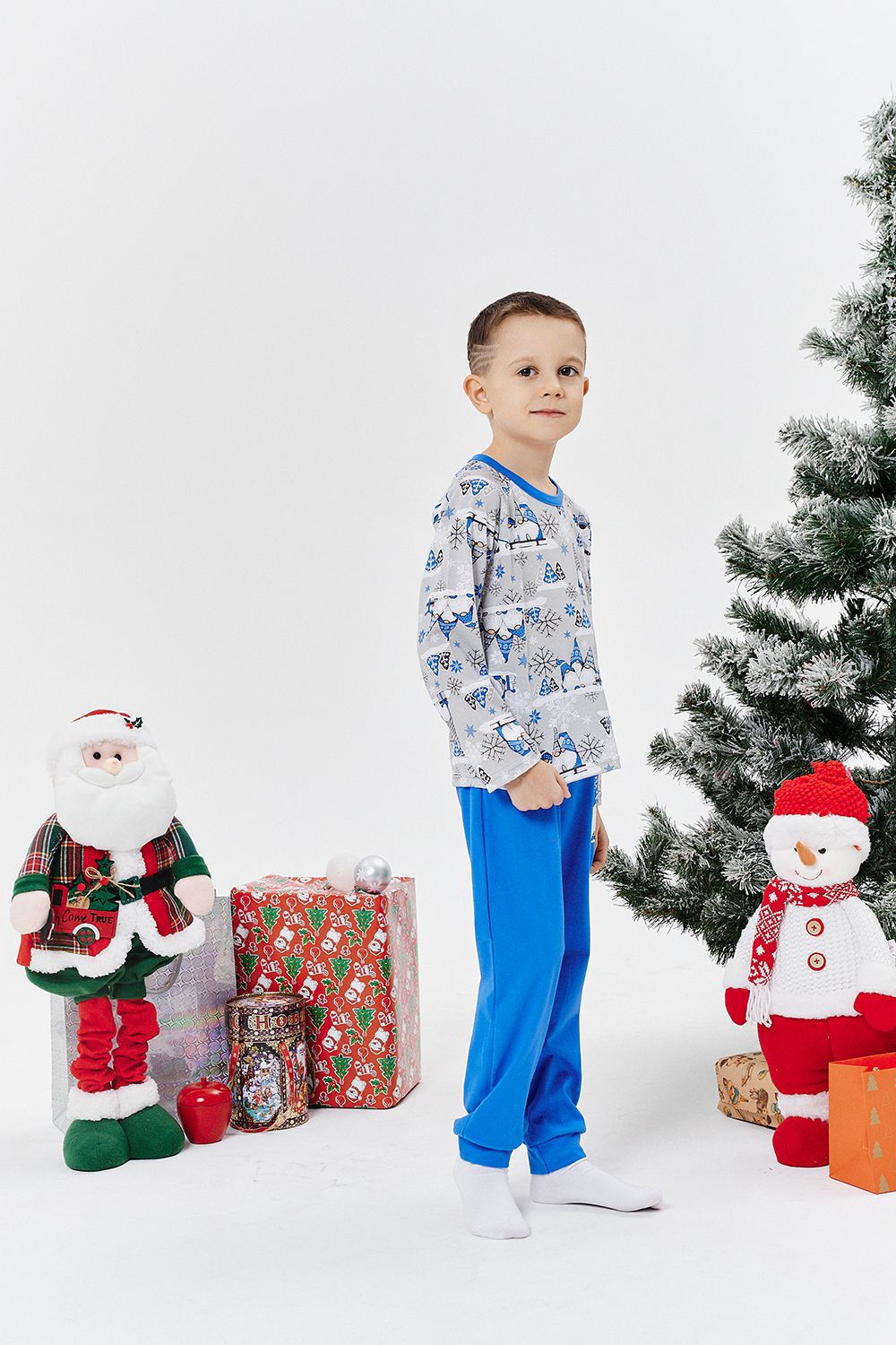Костюм детский для мальчиков из кулирного полотна состоит из кофты и брюк. Кофта прямая, горловина круглая, обработана окантовкой, рукав длинный, реглан, низ изделия обработан на плоскошовной машине. Брюки прямые, верх на поясе с резинкой, спереди на брюках принт, низ изделия на плоскошовной машине. Данный костюм из серии "Family look", к нему можете приобрести женский костюм: 42275, детский костюм для девочек: 42276, мужской костюм: 42274.