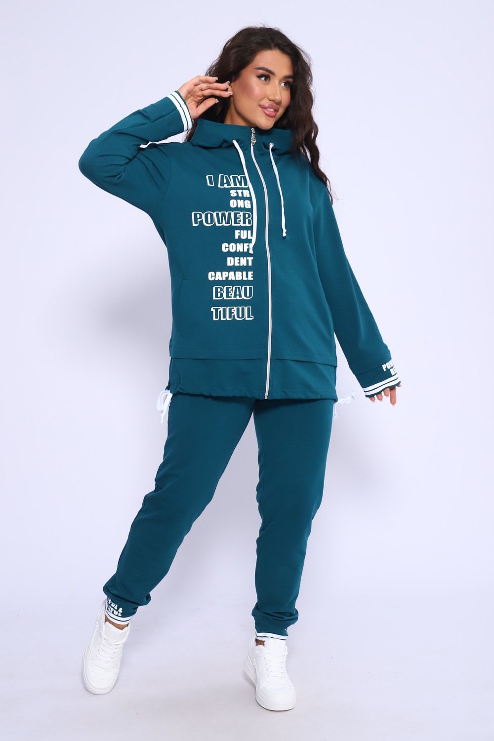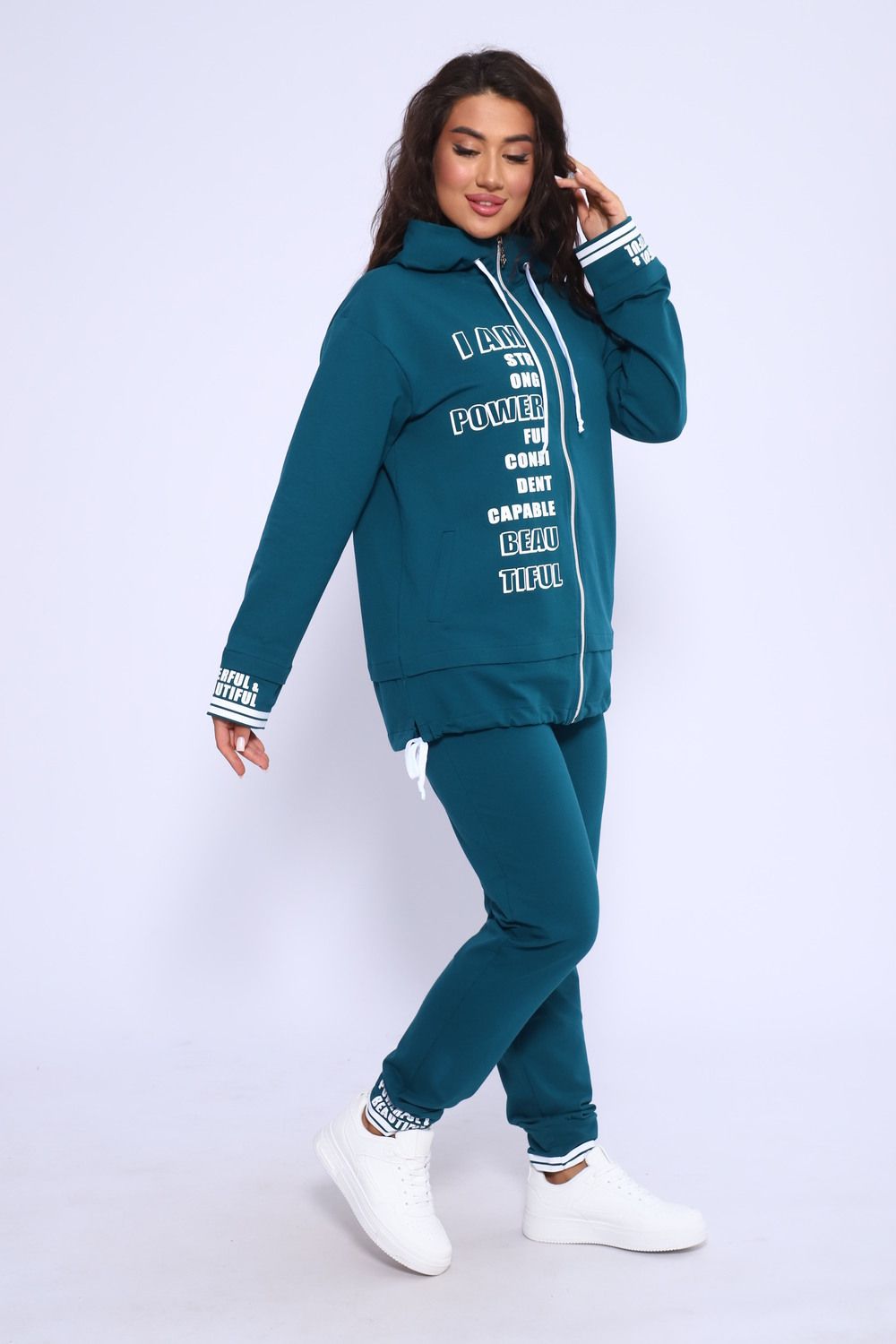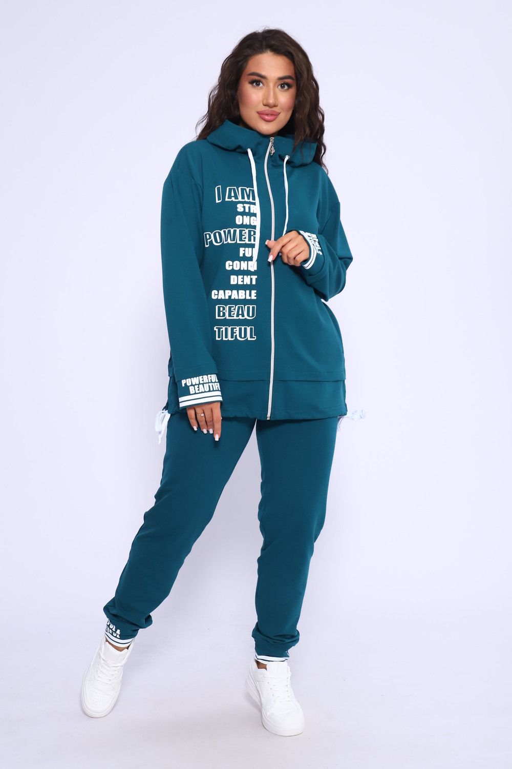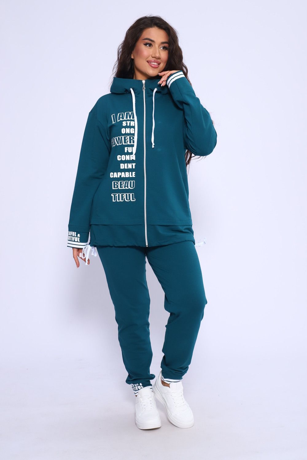 Спортивный костюм выполнен из качественного материала футер 2-х нитка с лайкрой. Спортивный женский костюм больших размеров состоит из спортивных штанов и свитшота свободного кроя на молнии. Идеален для повседневной комфортной жизни, прекрасно подходит для поездок и отдыха за городом, для фотосессии и спорта. Комфортный для домашнего использования.