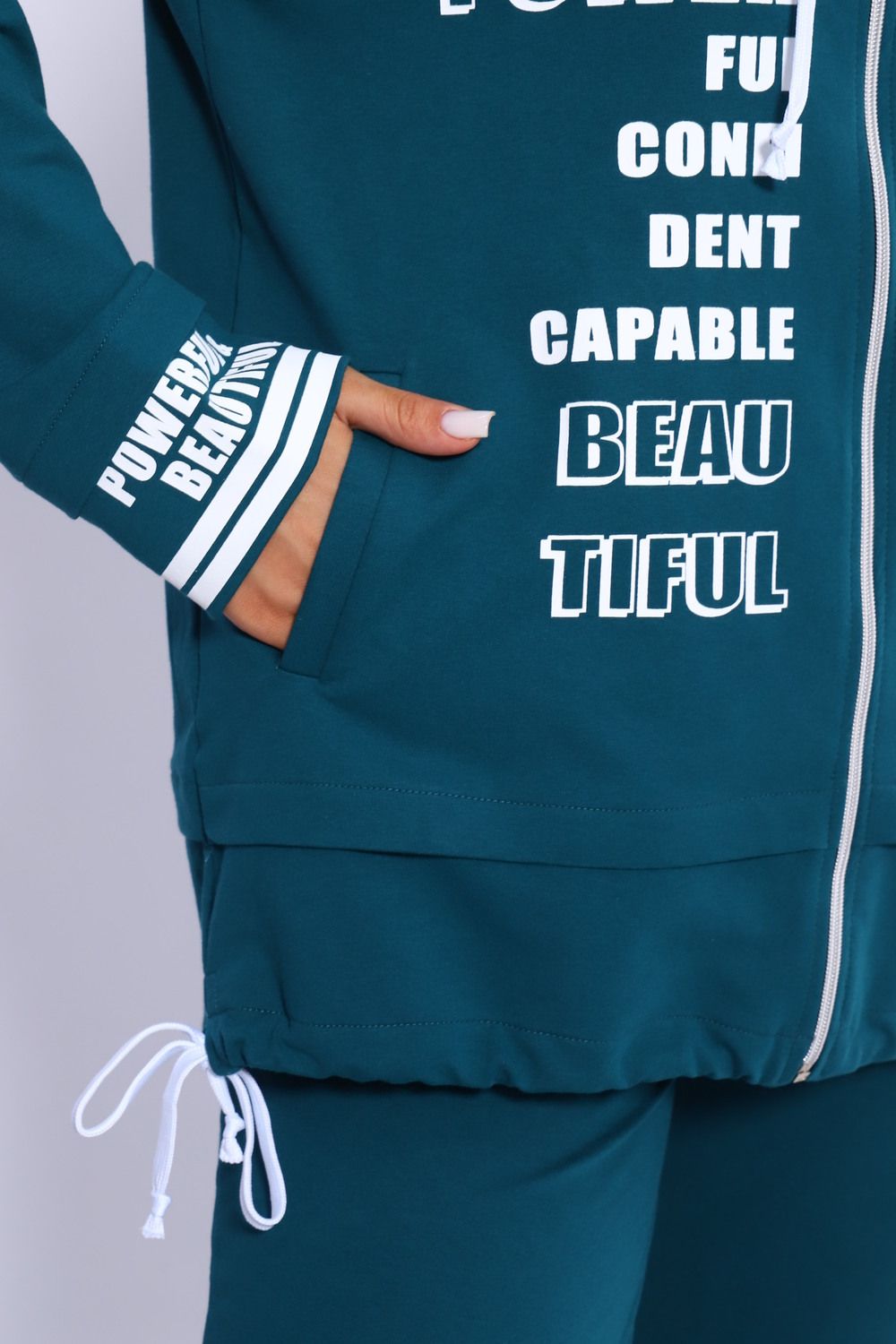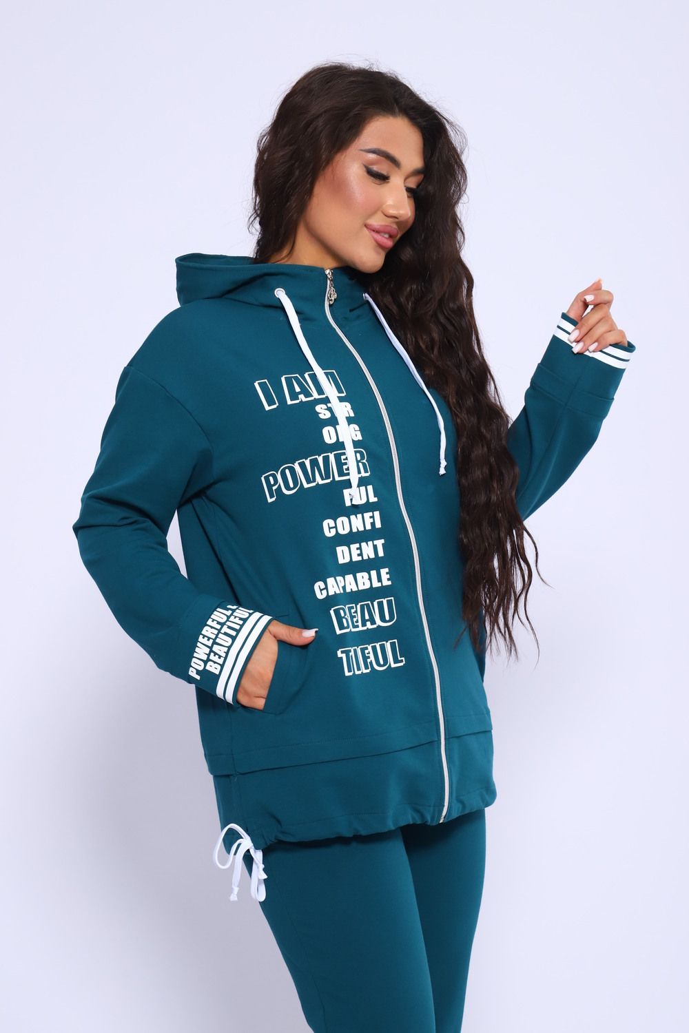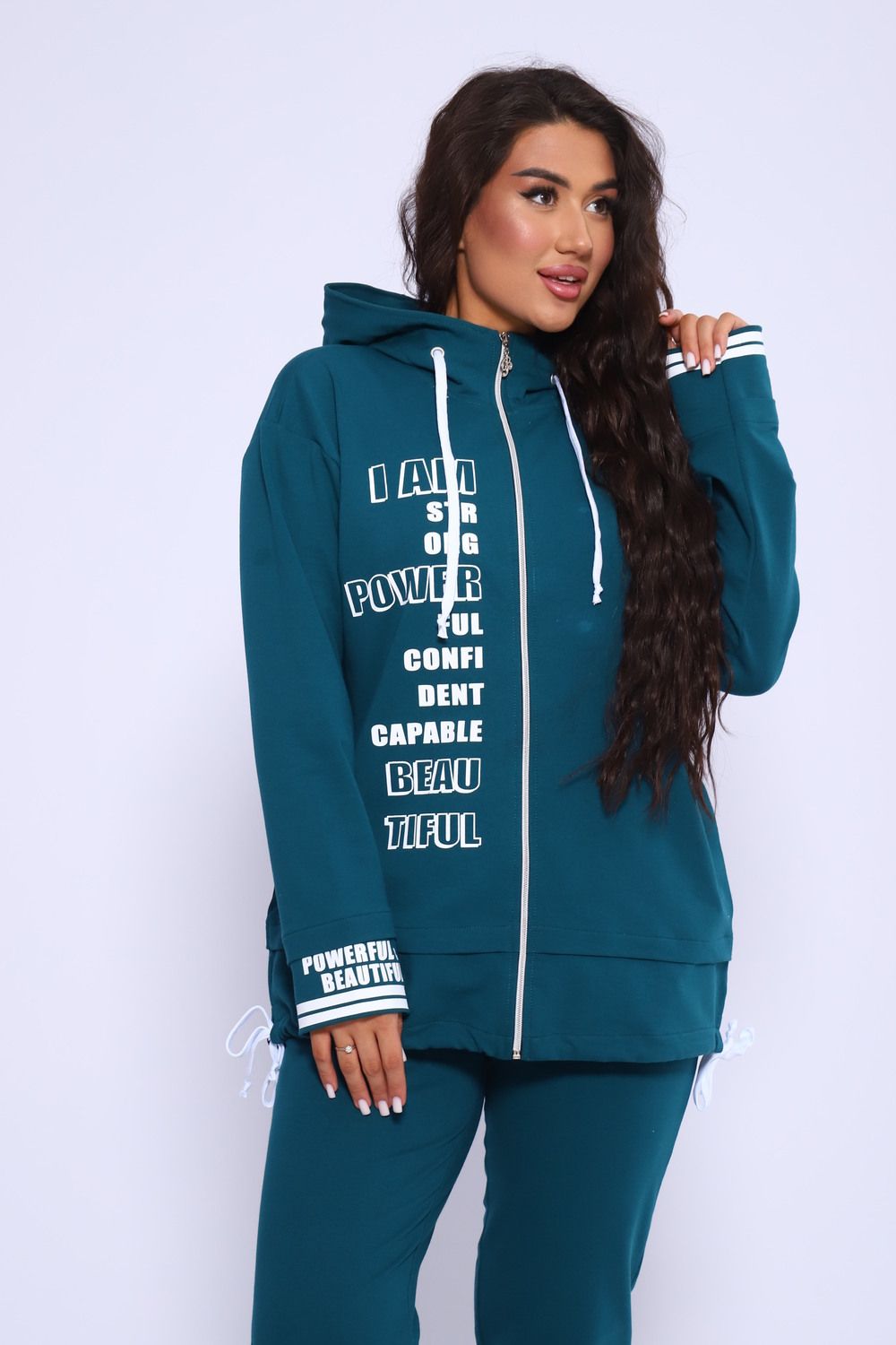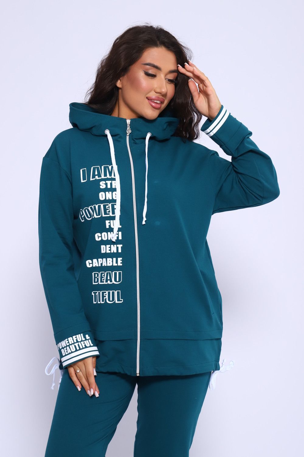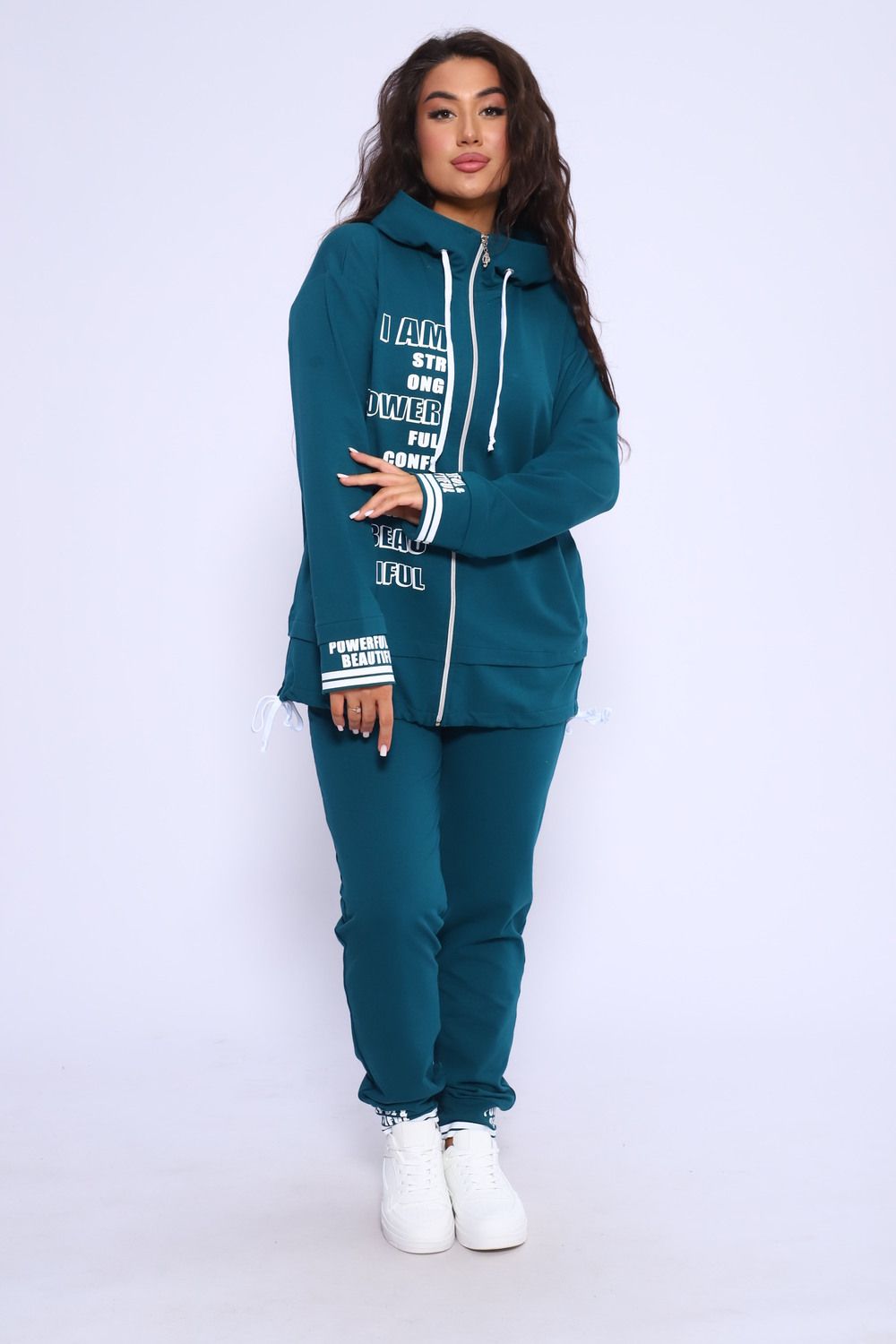 Спортивный костюм выполнен из качественного материала футер 2-х нитка с лайкрой. Спортивный женский костюм больших размеров состоит из спортивных штанов и свитшота свободного кроя на молнии. Идеален для повседневной комфортной жизни, прекрасно подходит для поездок и отдыха за городом, для фотосессии и спорта. Комфортный для домашнего использования.