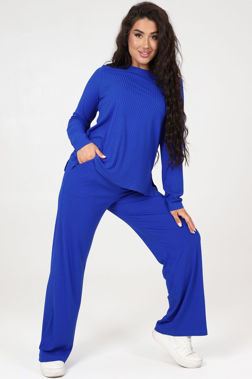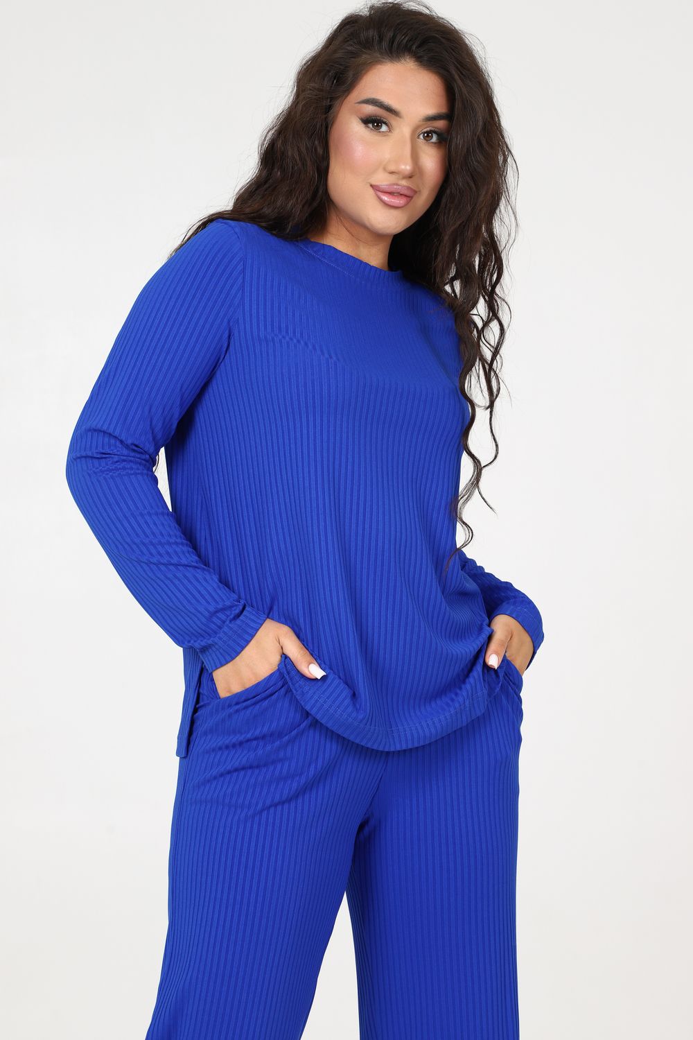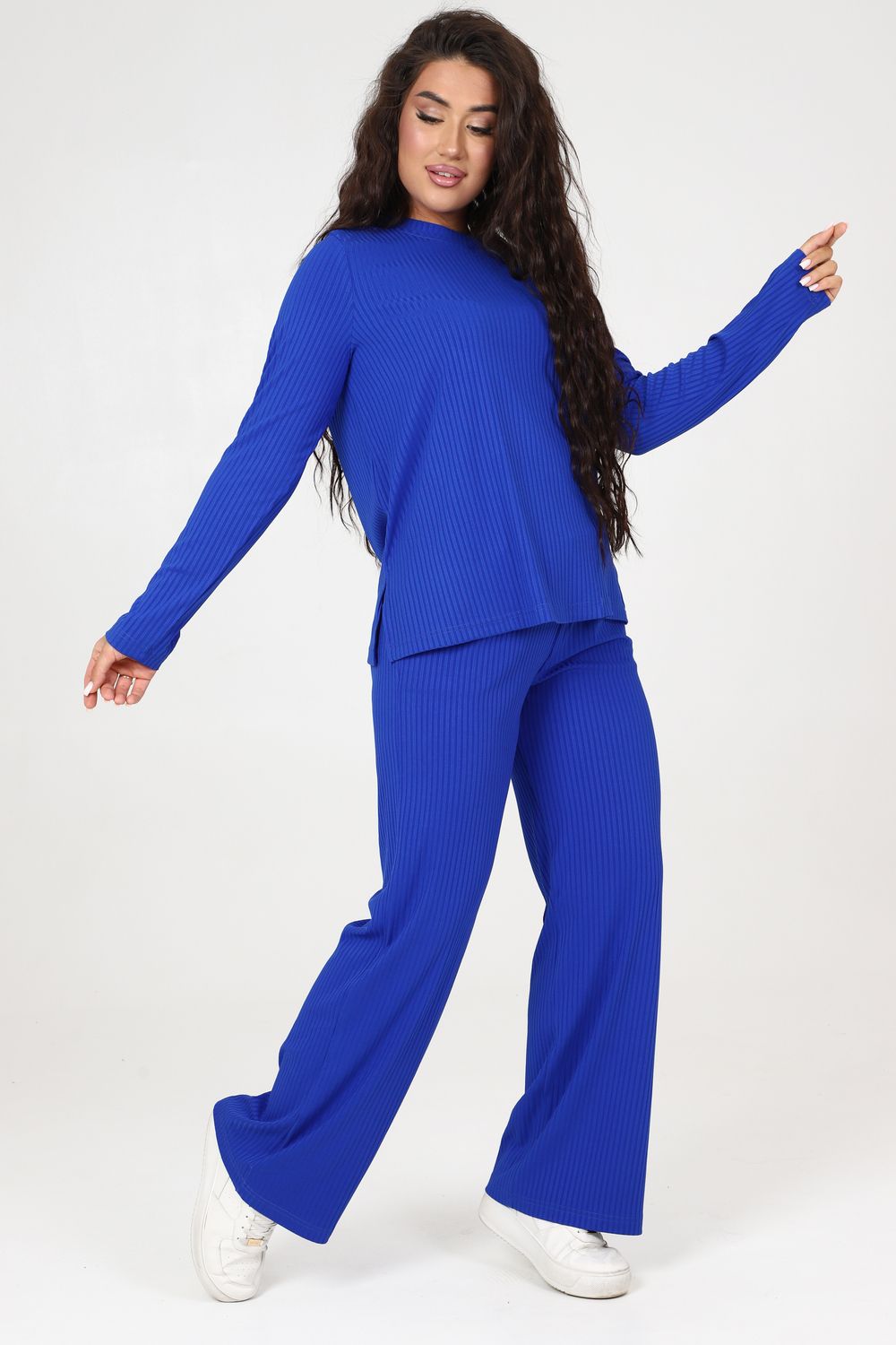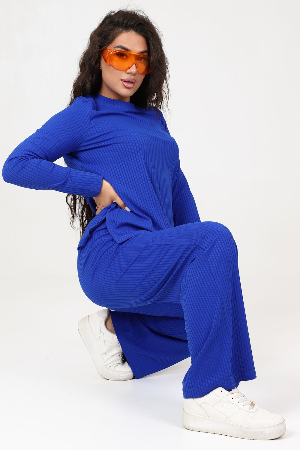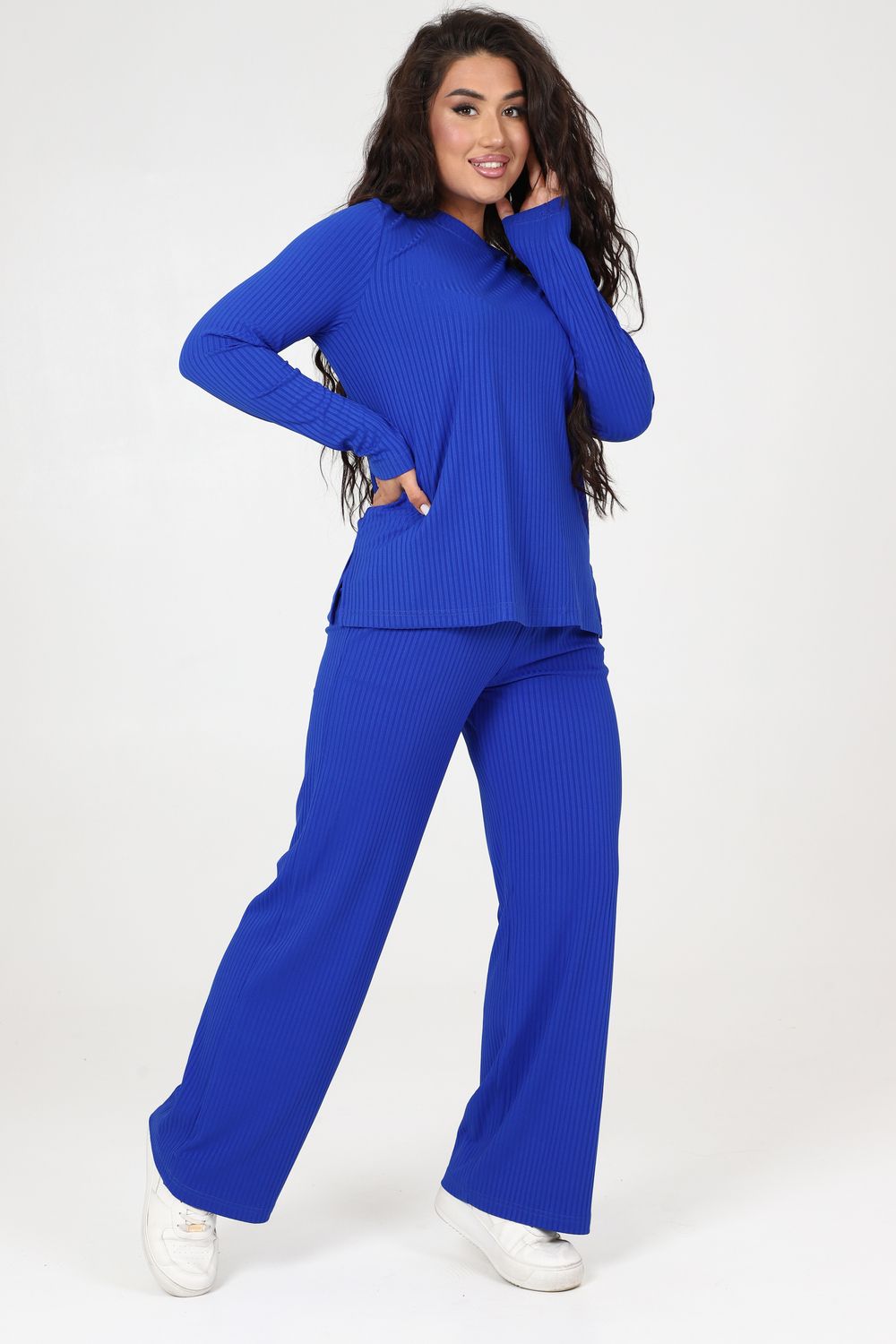 Стильный женский трикотажный костюм из ткани лапши. Комплект состоит из кофты с длинным рукавом и разрезами снизу по бокам и брюк широкого кроя с поясом на резинке и карманами по бокам. Модель подойдет для вечернего и повседневного образа, отлично сочетается как с кроссовками, так и с туфлями. Костюм отлично подходит для прогулки, выезда на природу или похода в ресторан. Удобный свободный вверх отличный вариант на лето, приятные к телу штаты удобны и практичны.