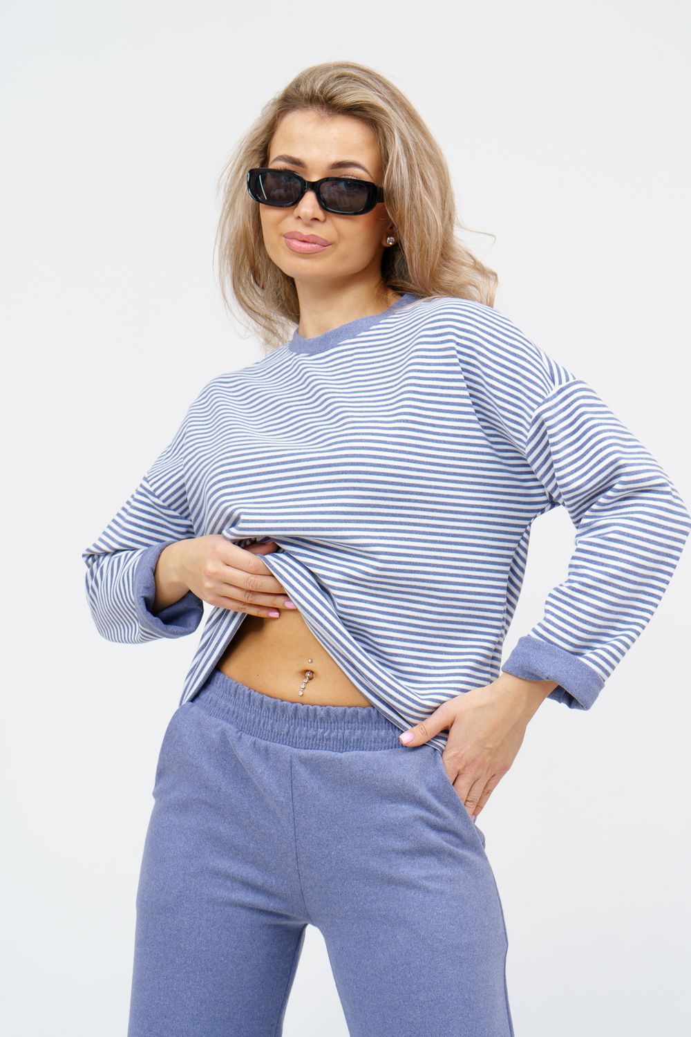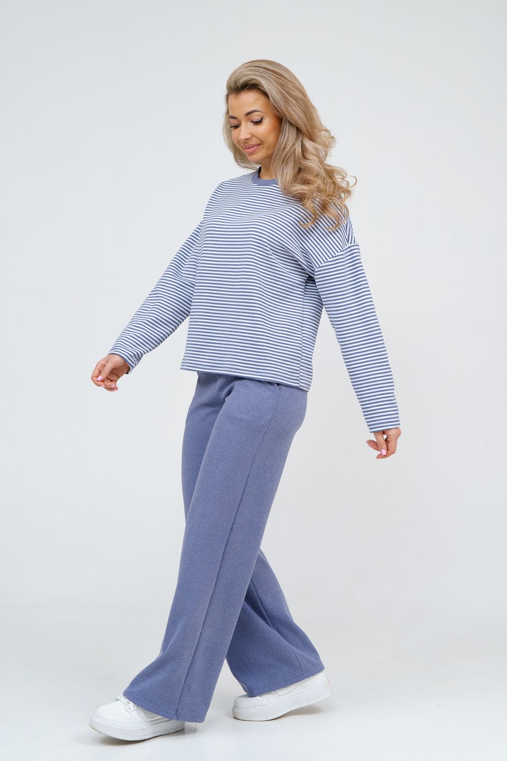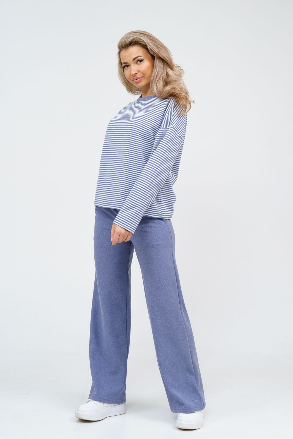 Женский костюм выполнен из двухстороннего флис полара высокого качества. Флис полар - высокотехнологичный материал, прошедшей особую обработку. Ткань отличается высокими теплозащитными свойствами, при этом является дышащей. По своим характеристикам она не уступает шерстяным полотнам. И даже в сыром состоянии удерживает тепло у тела. Материал прочный, эластичный, влагостойкий. Воздухопроницаемая гигроскопичная ткань создает для тела комфортный микроклимат. Материал гипоаллергенный, подходит для изготовления одежды детям, в том числе новорожденным. Изделия из флиса легкие, не мнутся, не деформируются, не вытягиваються.В такой одежде удобно и комфортно. Эластичность материала позволяет легко двигаться. Костюм состоит из лонгслива и брюк. Лонг в стиле OVERSIZE ( одежда свободного кроя ) - это свобода самовыражения, позволяющая чувствовать себя комфортно и стильно одновременно. Горловина футболки выполнена с обтачкой. Линия плеча спущена, длинный рукав. Женские стильные брюки - трубы представлены с вместительными боковыми карманами. Пояс выполнен на специализированной круговой поясной машине, что делает швы ровными и качественными. А профессиональные закрепки на поясе, придают изделию законченный вид и качество. Свободный крой прекрасно будет смотреться на дамах с любыми формами. Костюм такого плана представлен в широкой размерной сетке, что позволяет выбрать его как девушке, так и женщине. Костюм модных расцветок с полосой, будет удачным выбором для поездок в отпуск, на пикник, для школы, для активного отдыха и прогулок по городу. Будет гармонично сочетаться как с кроссовками, так и с ботинками. Используя эту модель в качестве домашнего костюма, Вы поймёте, что это именно тот самый идеальный вариант, в котором будете себя чувствовать удобно, комфортно и современно. Костюм с брюками - это настоящая находка для тех, кто ценит свою индивидуальность!